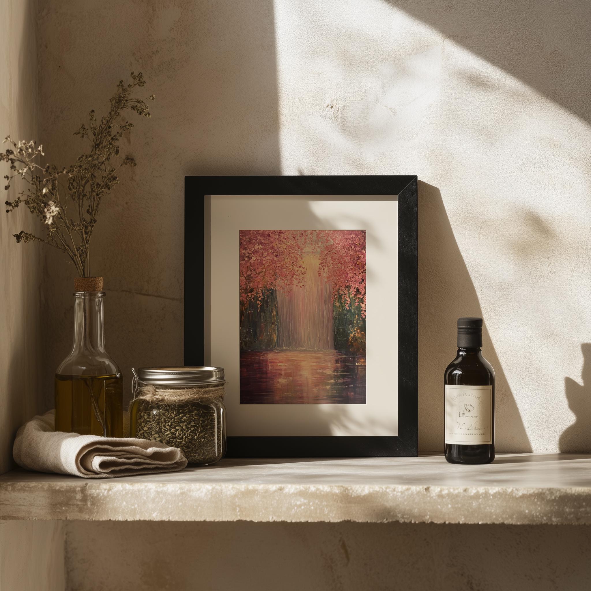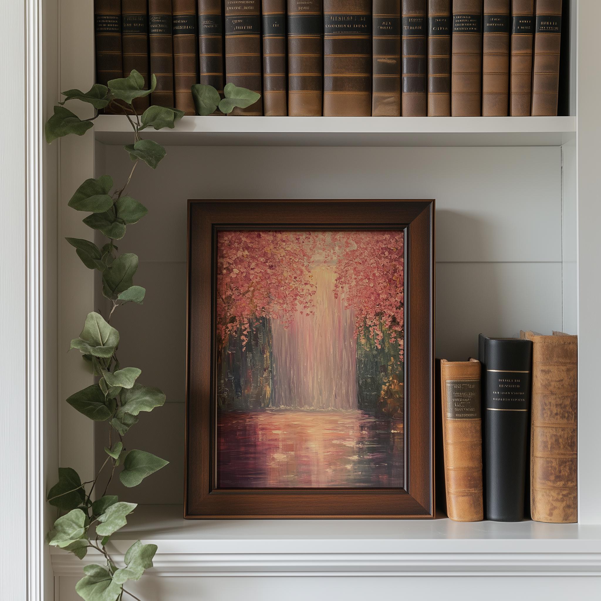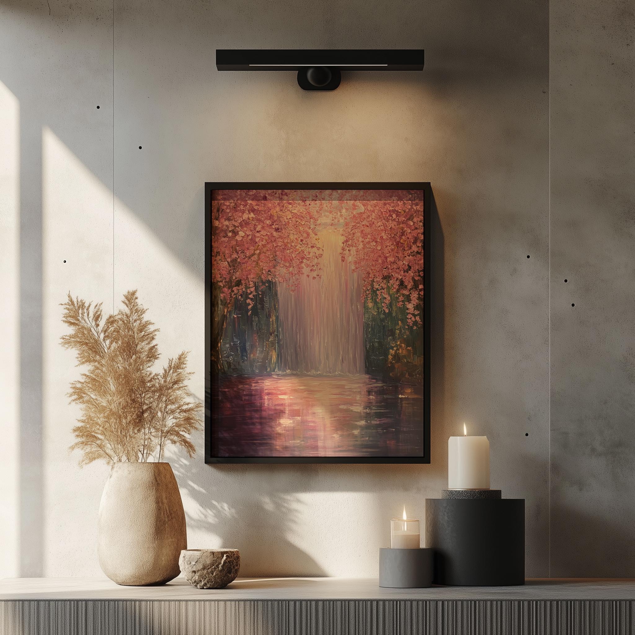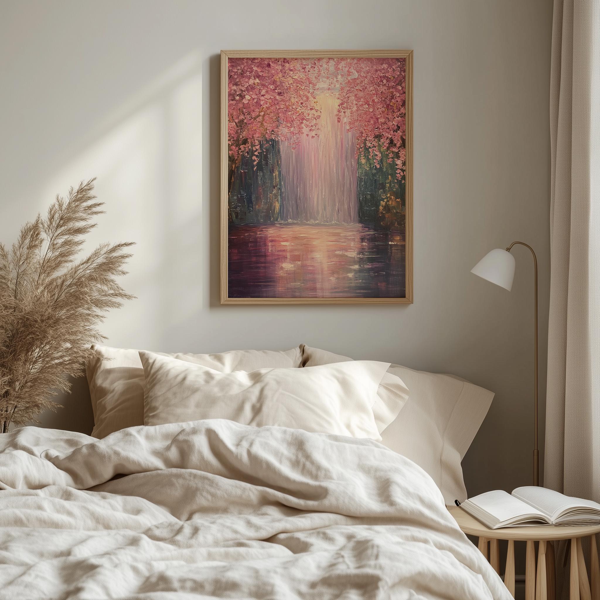 Cherry Blossoms in Soft Glow - Printable Spring Wall Art This exquisite oil painting captures the delicate beauty of cherry blossoms bathed in a soft glow, perfect for adding a touch of romantic cottagecore charm to your home. Ideal for any spring decor, this printable art piece transforms your space into a serene escape with its pastel landscape and glowing scene, making it a must-have for nature lovers. Spring