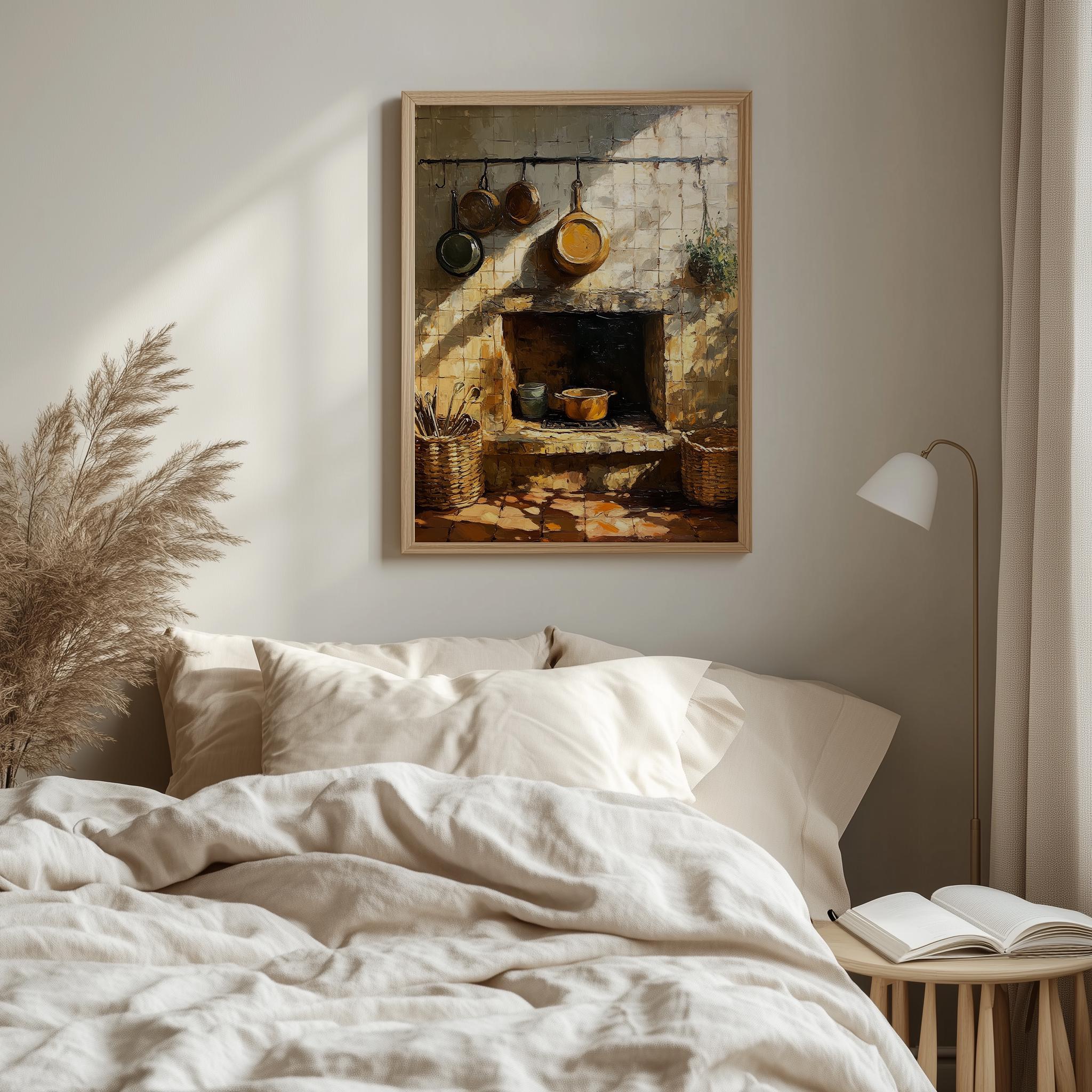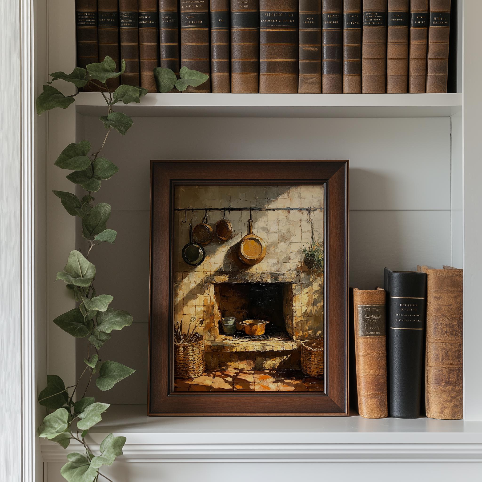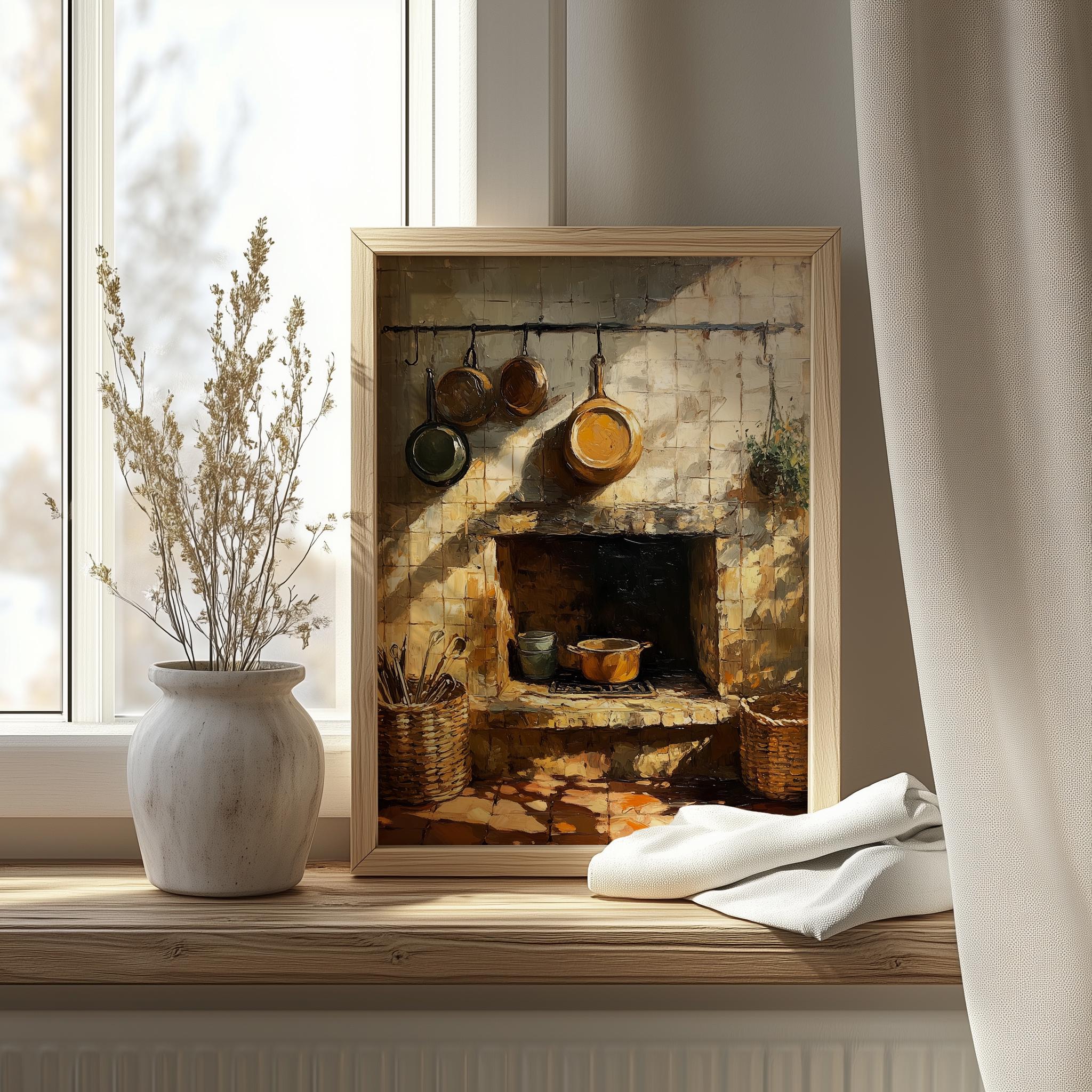 Rustic Kitchen Fireplace Painting - A Cozy Escape into Vintage Charm Transform your space with this stunning Rustic Kitchen Fireplace Painting. This vintage oil art piece captures the essence of cozy cottagecore decor, perfect for adding warmth and character to your home. With its earthy tones and inviting ambiance, it’s the ideal addition to any farmhouse-style setting. Available as a printable wall art, this digital download lets you bring a touch of the countryside into your home effortlessly. Autumn - Embrace the warm hues and comforting vibes of the season.
