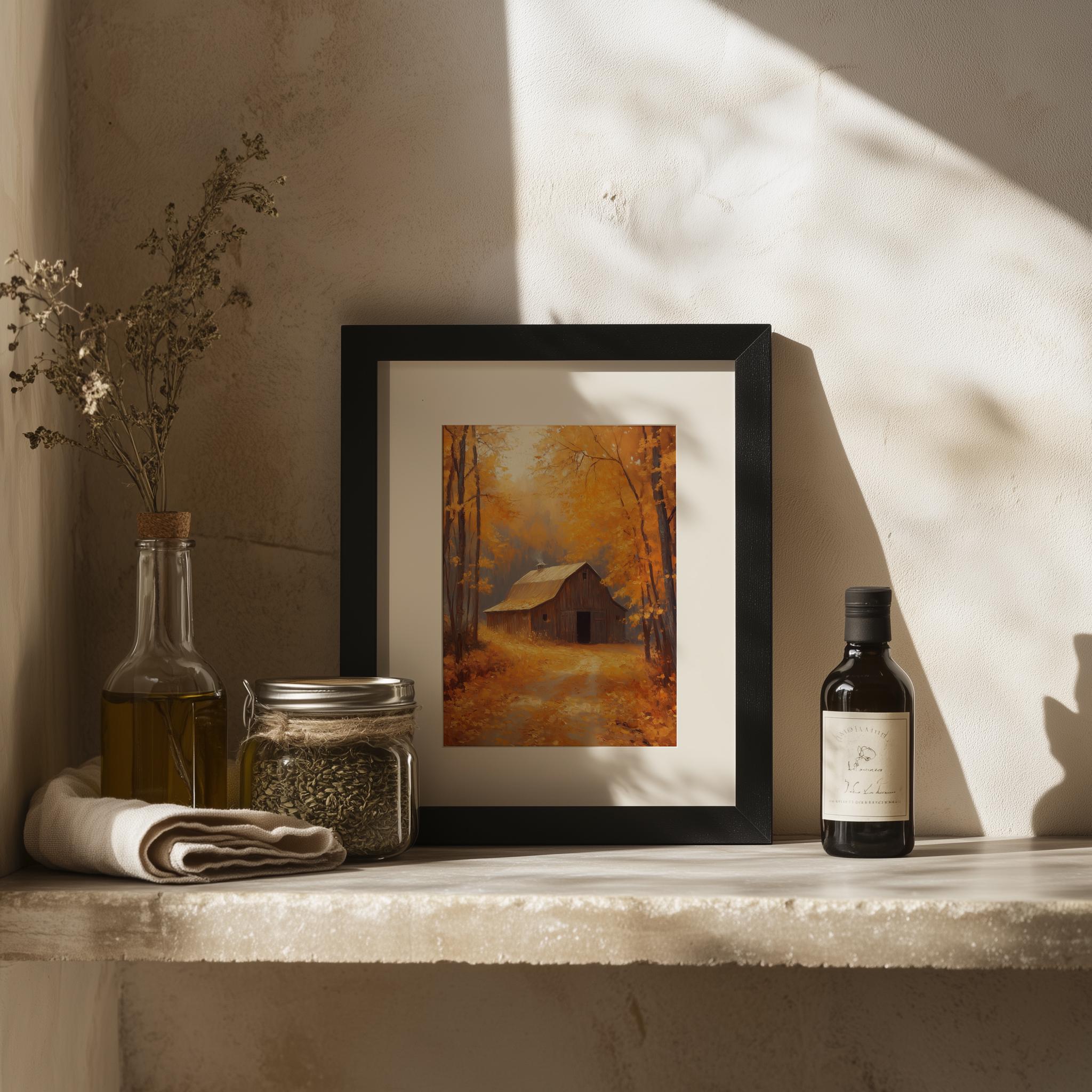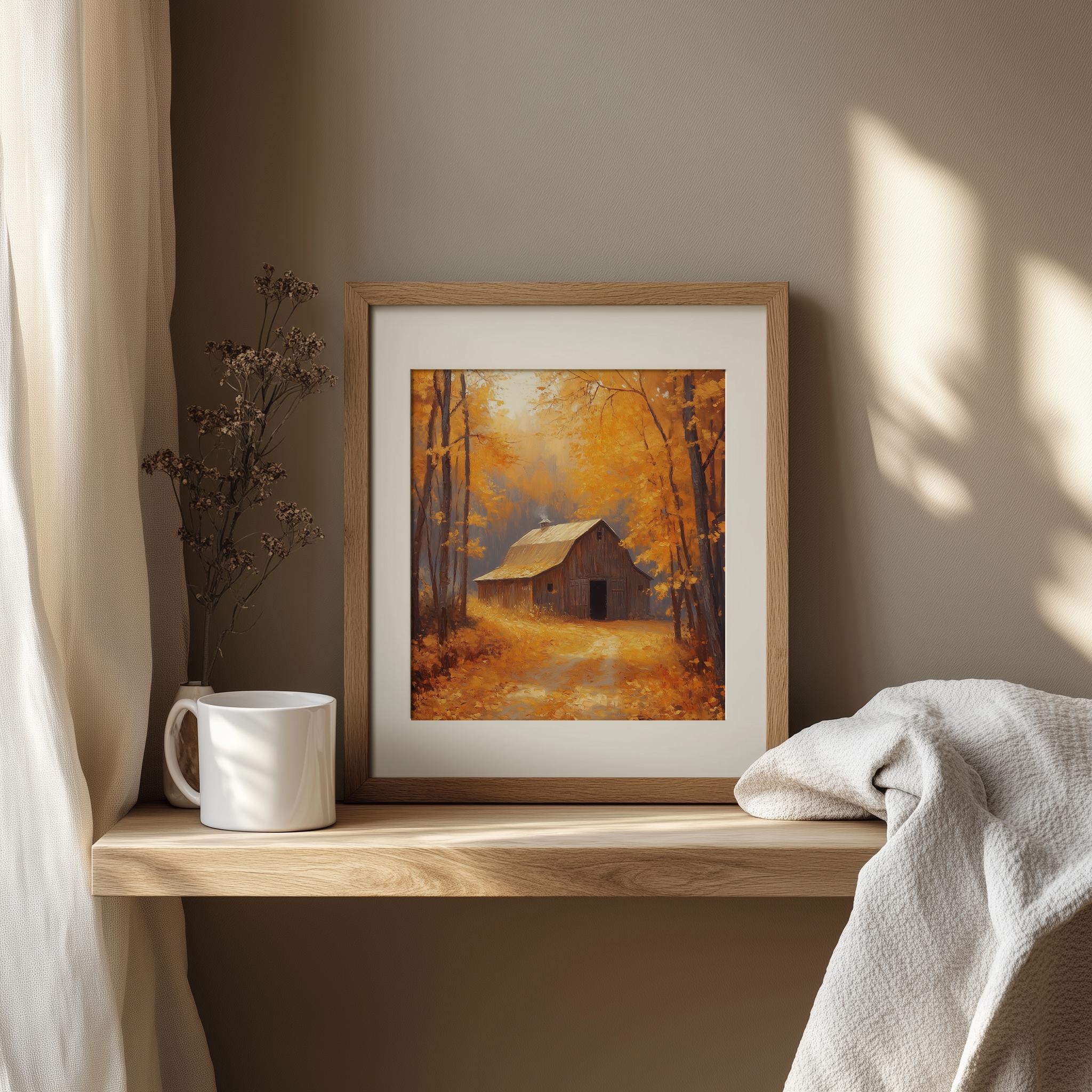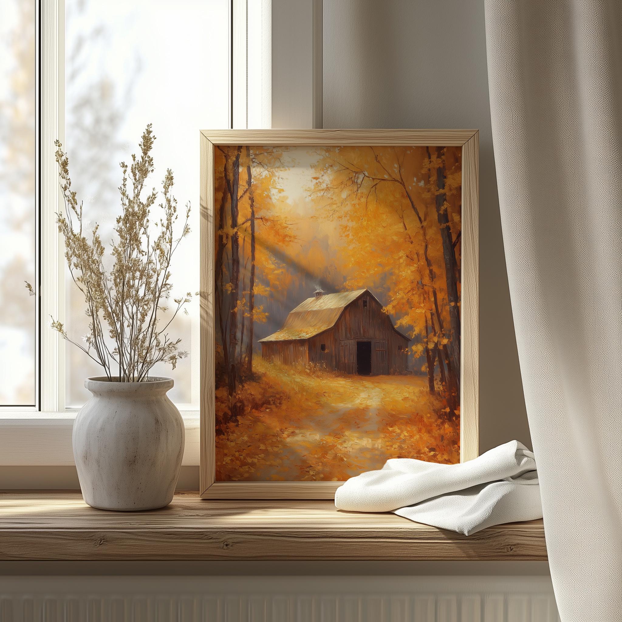 Rustic Barn Autumn Landscape Art Print: Vintage Cottagecore Decor (Digital Download)