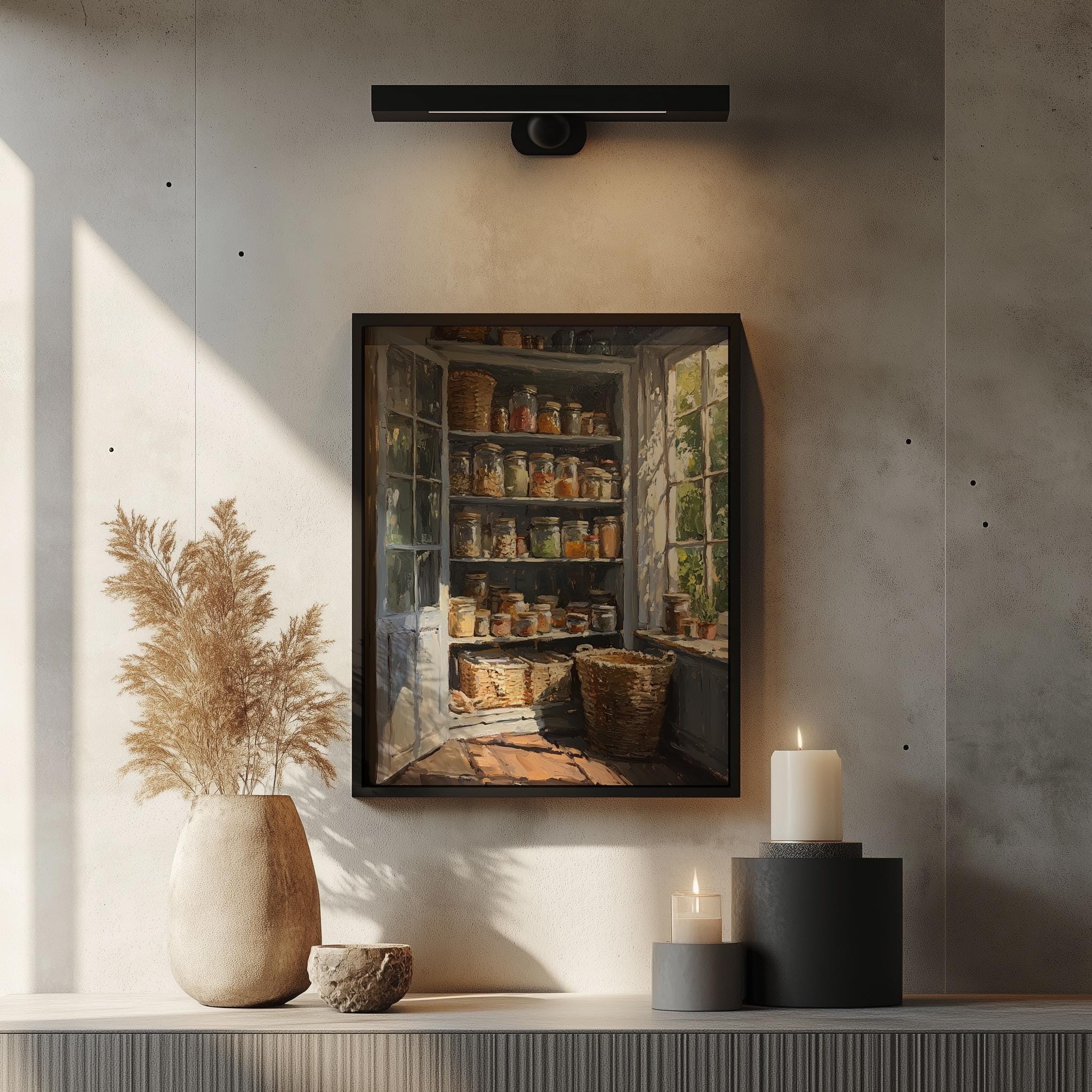Vintage Pantry Oil Painting - Rustic Kitchen Shelf Art This exquisite oil painting captures the essence of a charming pantry, brimming with rustic details and inviting warmth. Perfect for enhancing your kitchen's aesthetic, this artwork reflects the timeless appeal of cottagecore style and farmhouse decor. Whether you're looking to elevate your home design or searching for the ideal printable wall art, this piece is sure to inspire and delight. Perfect for year-round enjoyment