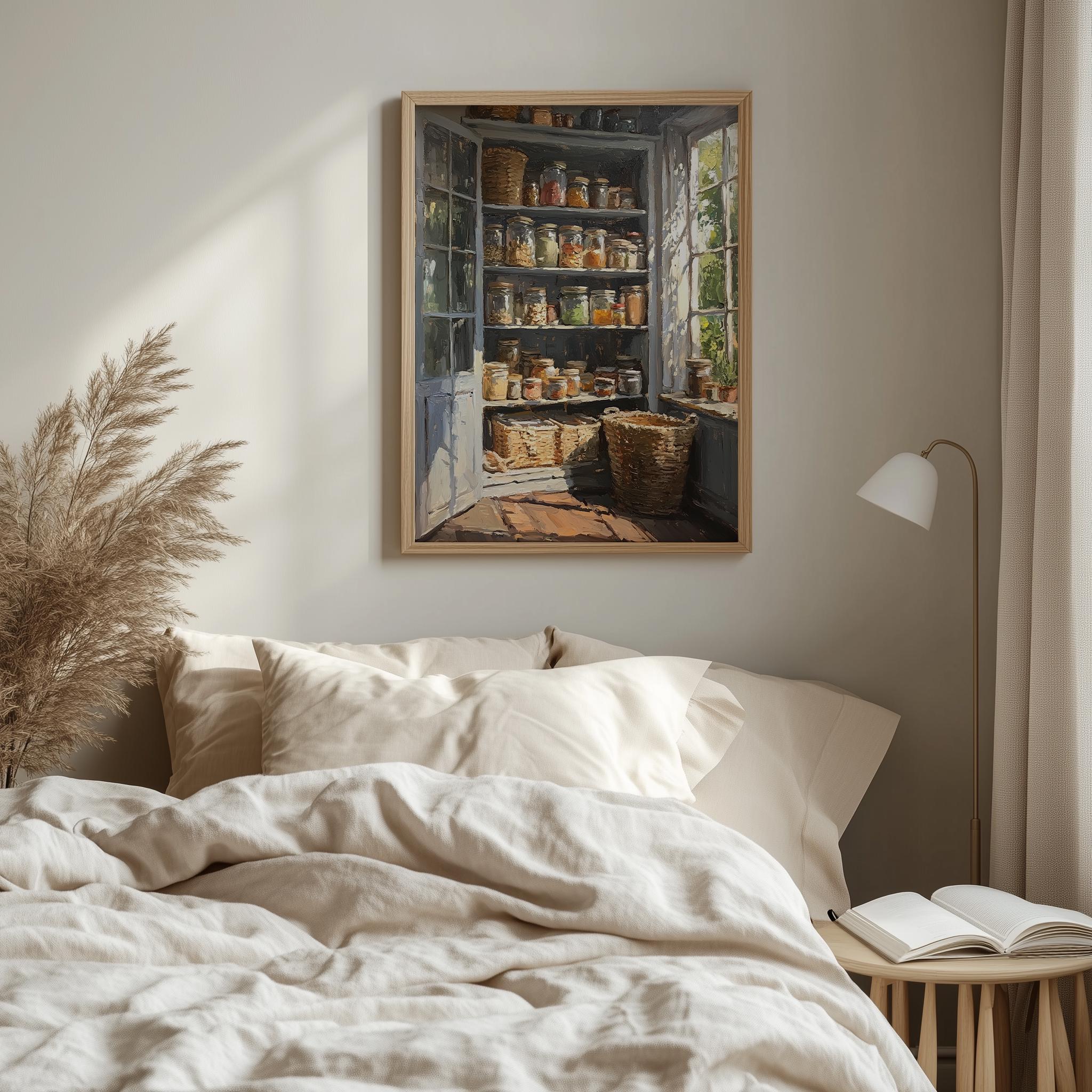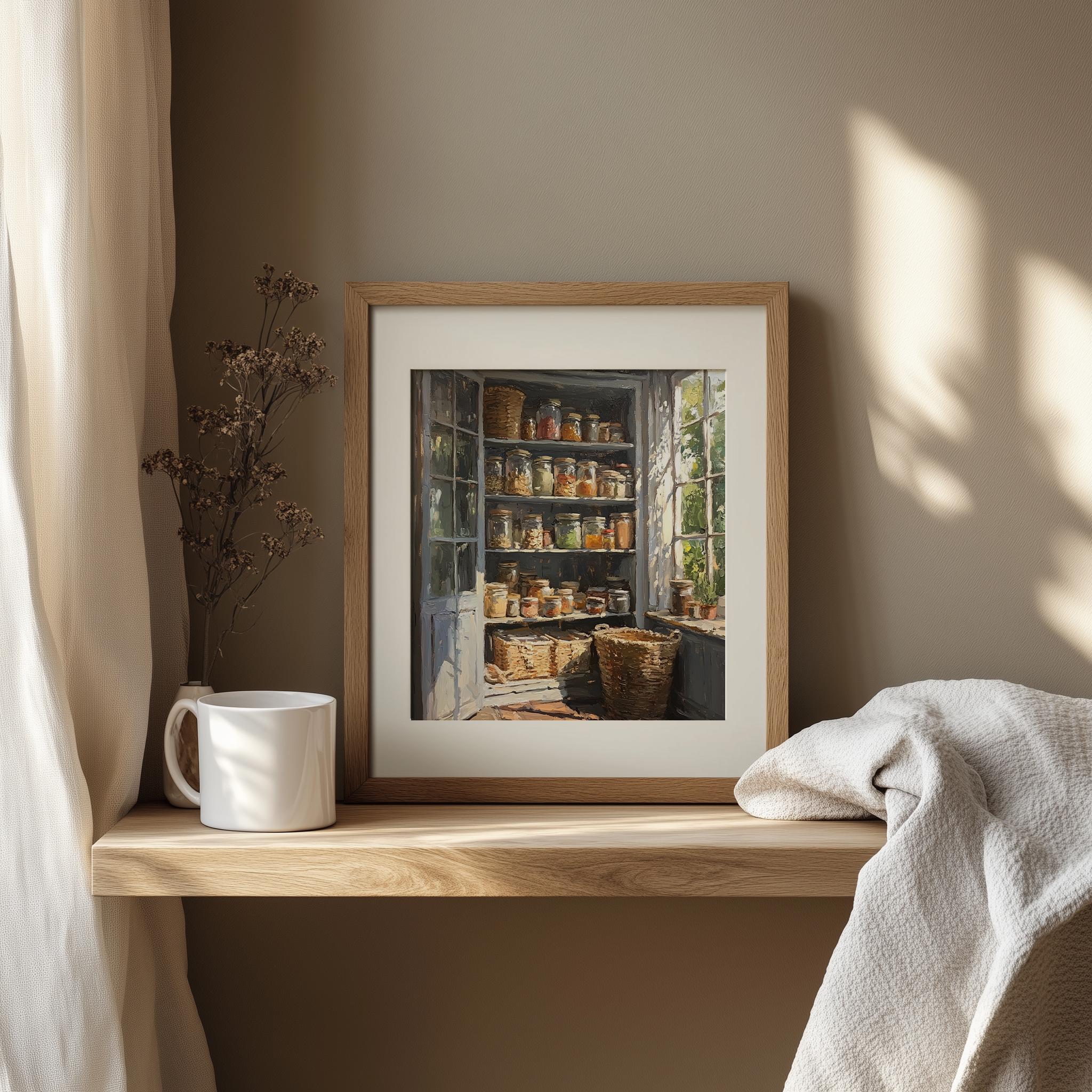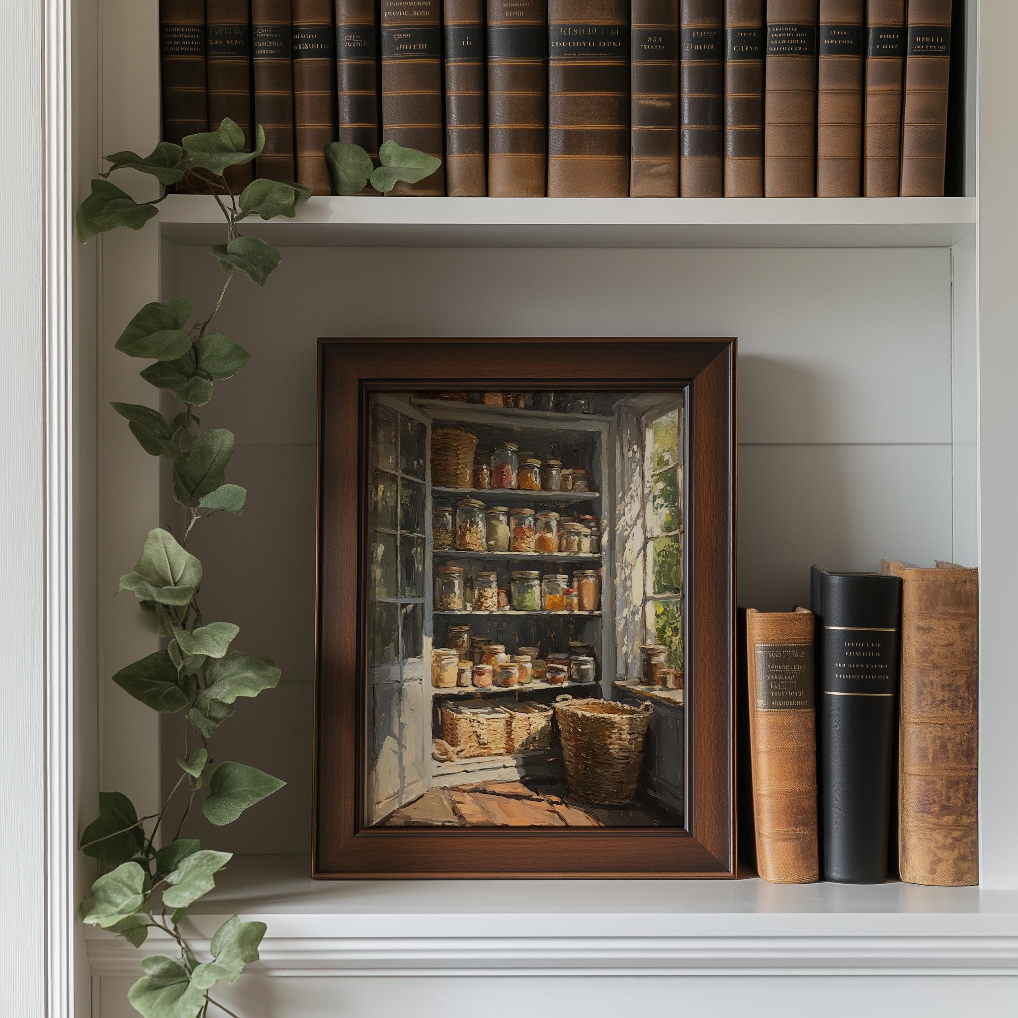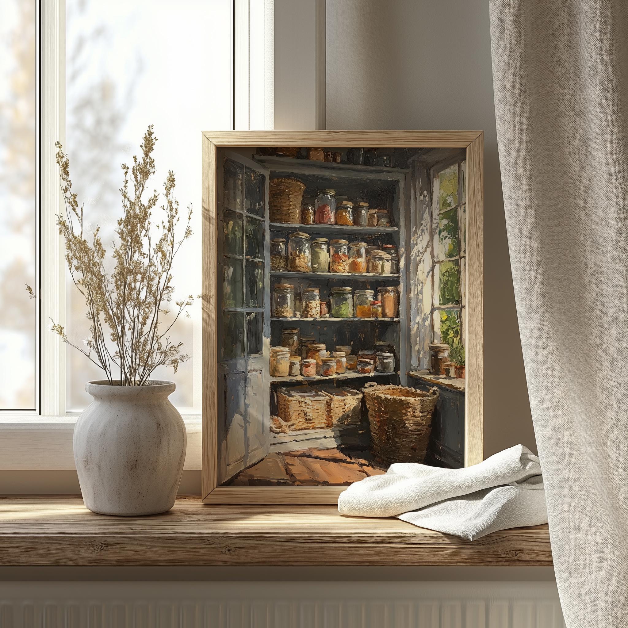 Vintage Pantry Oil Painting: Rustic Cottagecore Kitchen Art (Digital Download)
