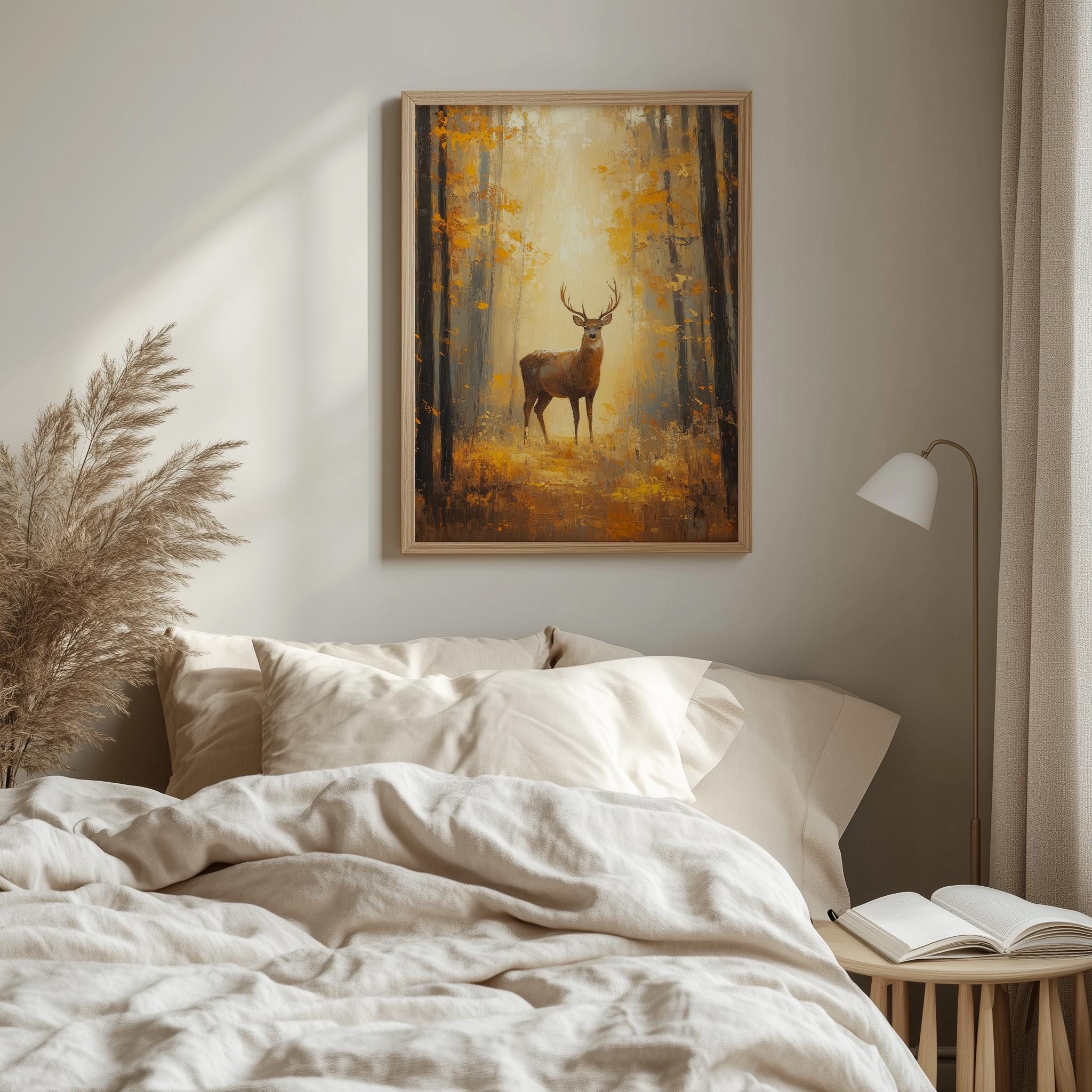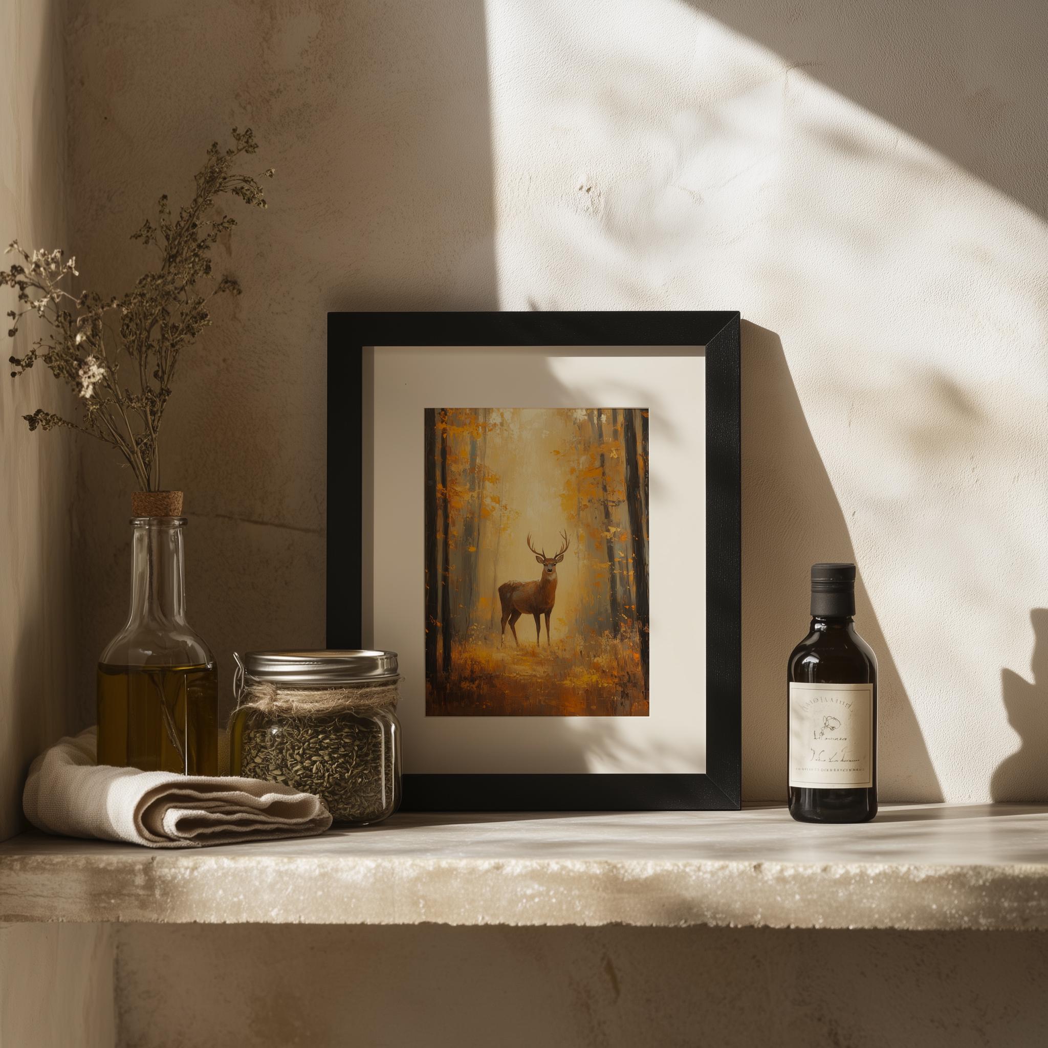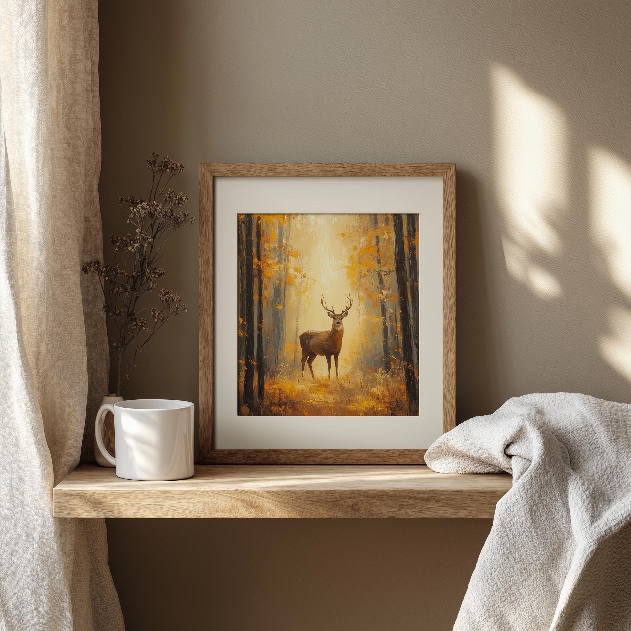 Misty Forest Deer Print: Rustic Autumn Wildlife Art (Digital Download)