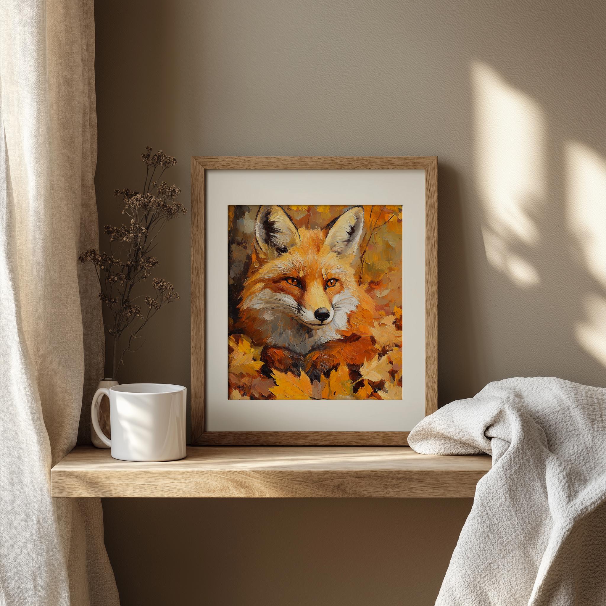 Autumn Fox Portrait Print: Rustic Cottagecore Woodland Art (Digital Download)
