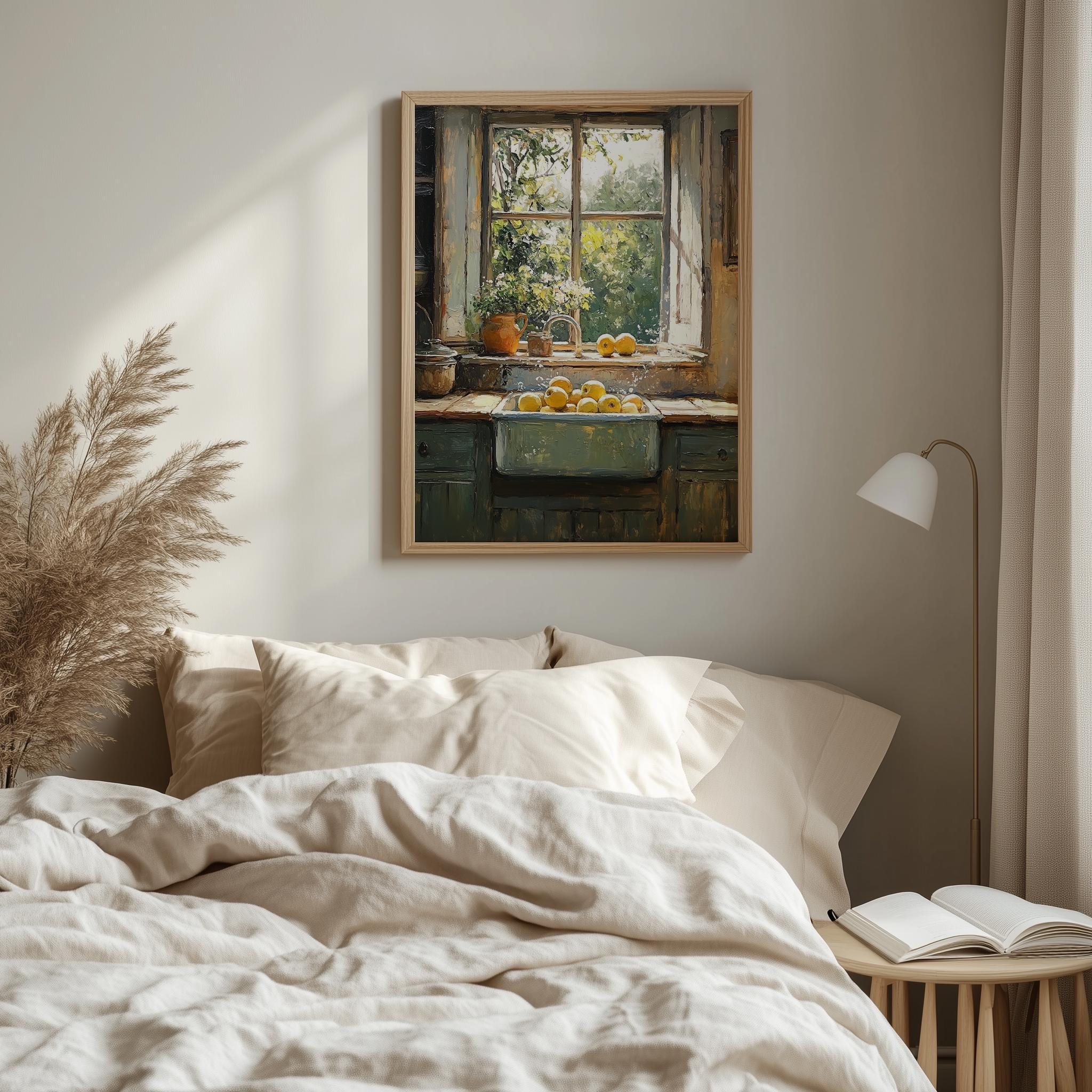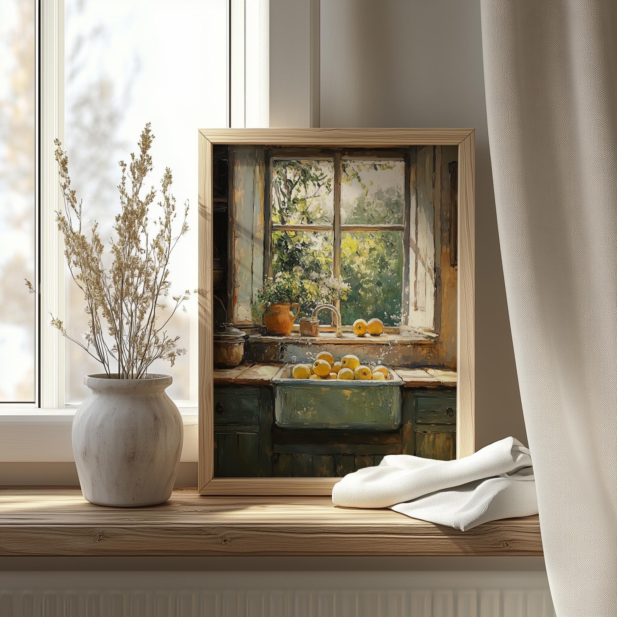 Vintage Farmhouse Kitchen Art - Printable Rustic Sink View Transform your space with this charming digital wall art that captures the essence of cottagecore aesthetics. Featuring a delightful sink view that embodies the warmth of a rustic kitchen, this printable art piece is perfect for adding a touch of country decor to your home. Ideal for kitchen wall art, it brings a sense of nostalgia and comfort to any room. Perfect for cozy autumn gatherings or as a refreshing addition to your spring decor.