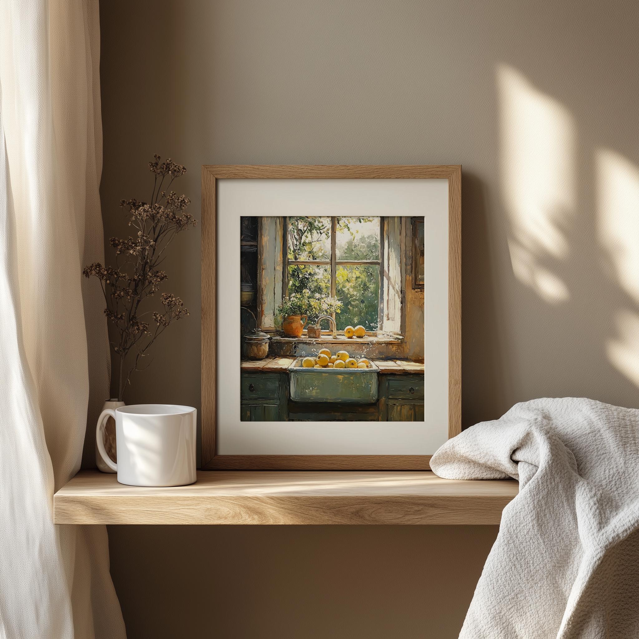 Farmhouse Kitchen Art Print: Rustic Sink View, Cottagecore Decor (Digital Download)