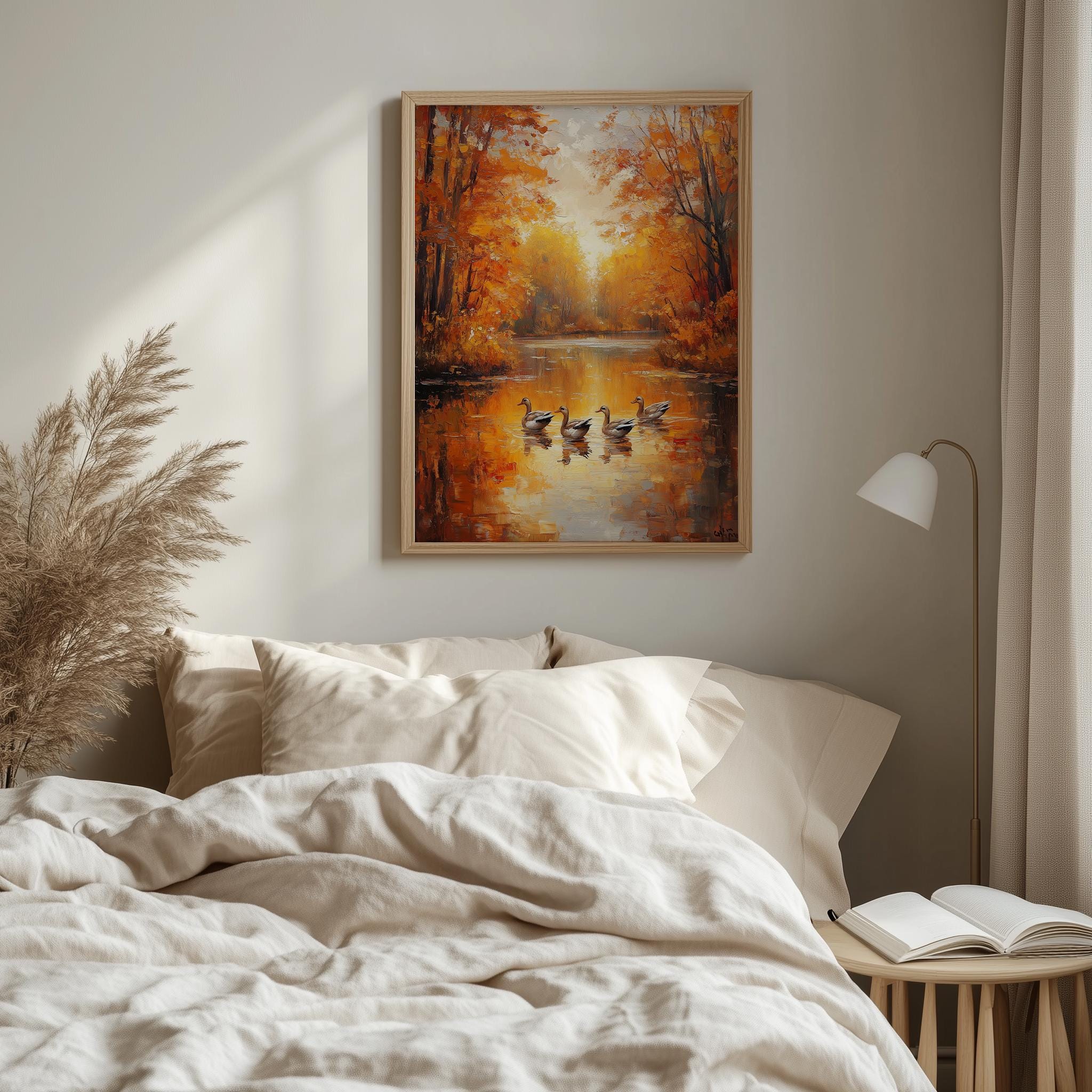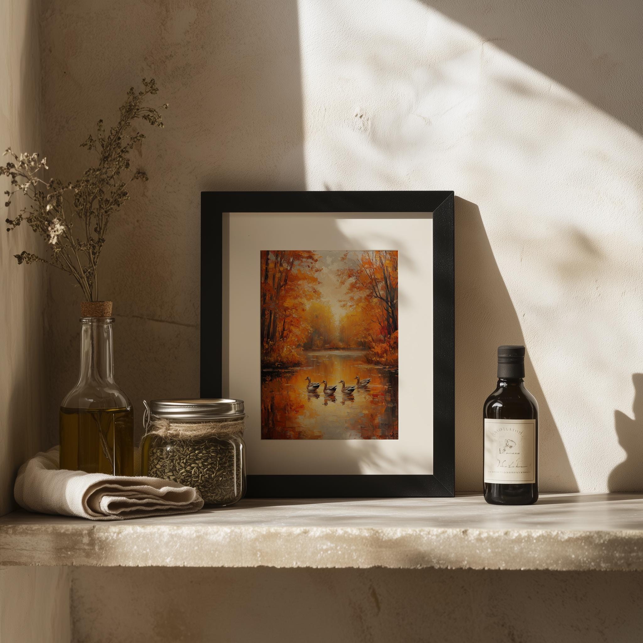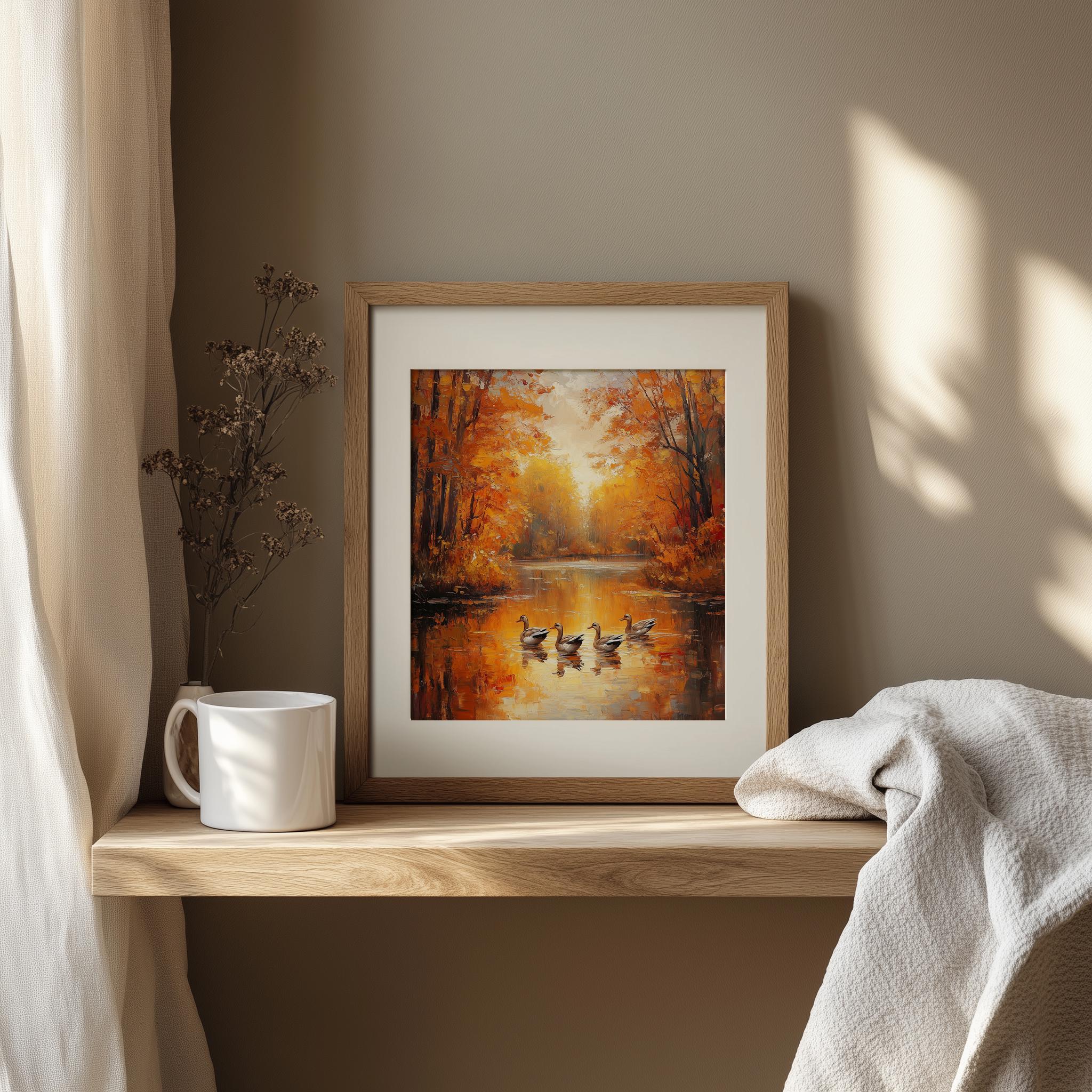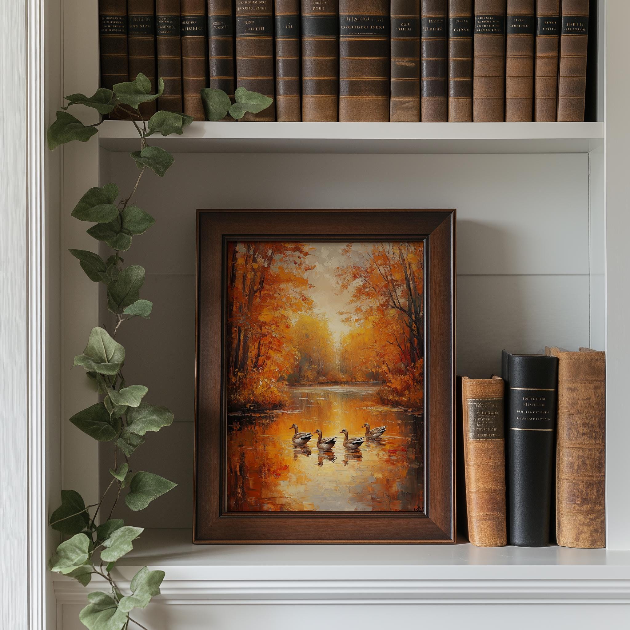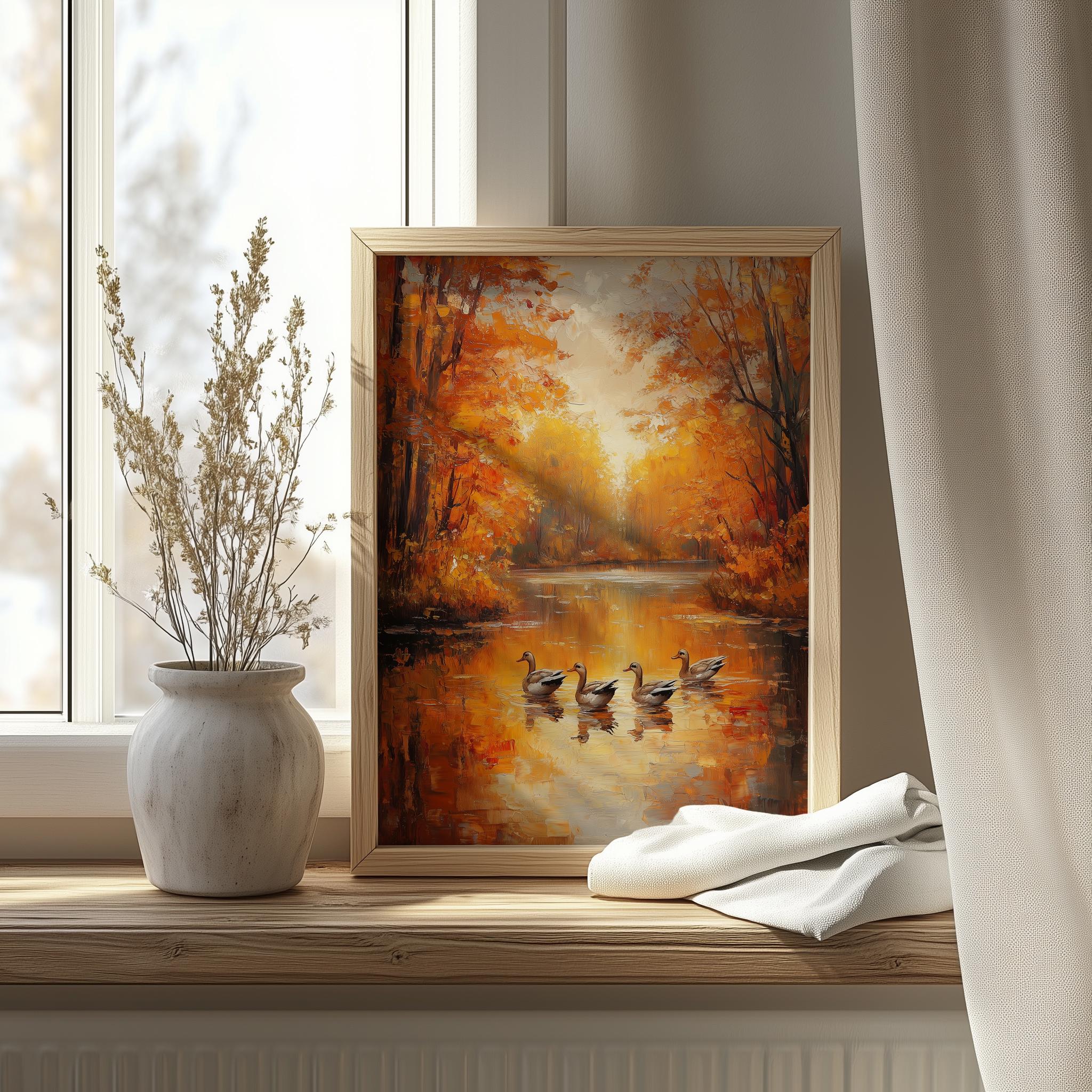 Rustic Autumn Ducks Print: Vintage Landscape Wall Art (Digital Download)