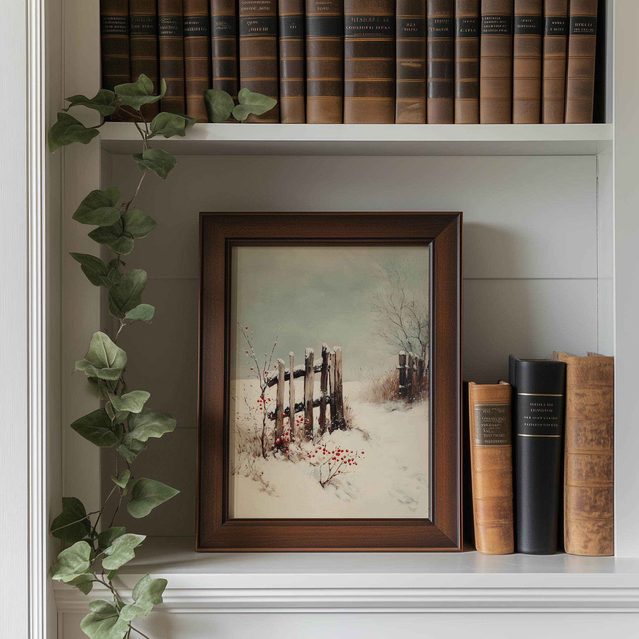 Rustic Winter Fence Painting: Vintage Cottagecore Snowy Landscape (Digital Download)