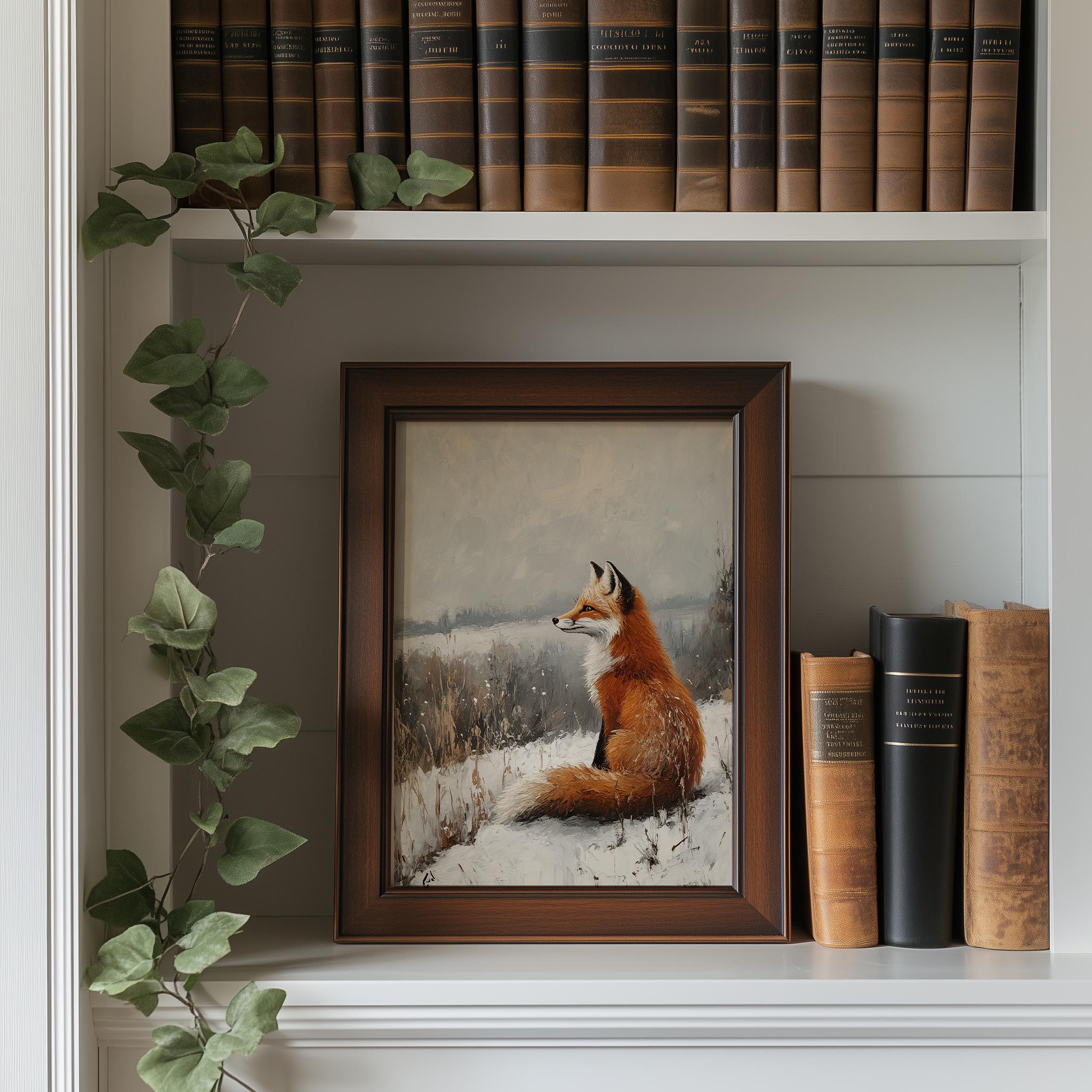 Rustic Fox in Snowy Wilderness Oil Painting - Cottagecore Winter Art Print (Digital Download)
