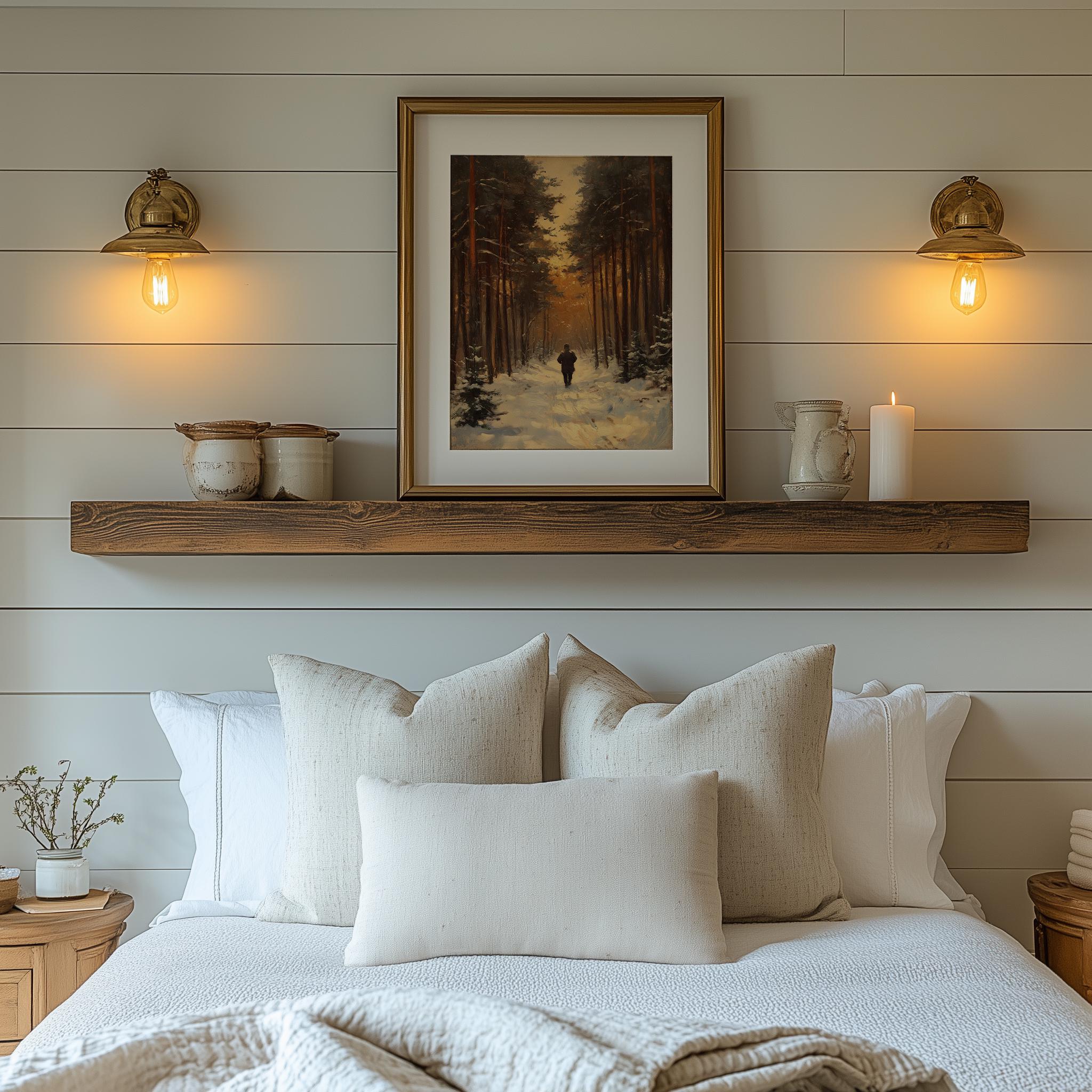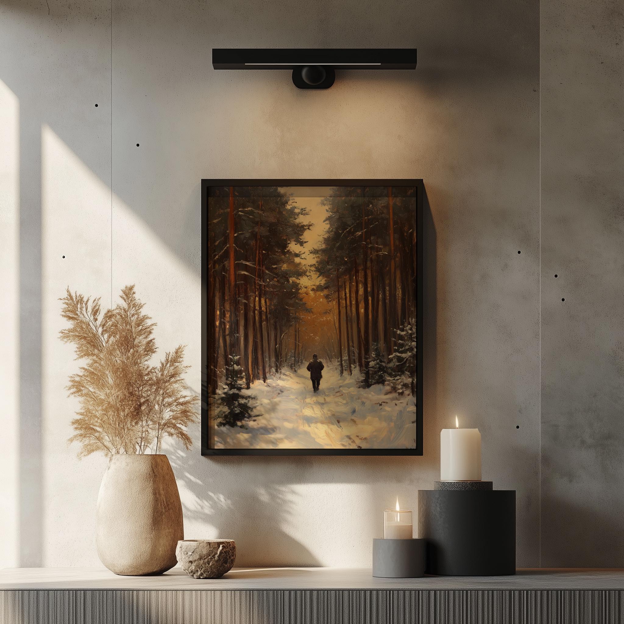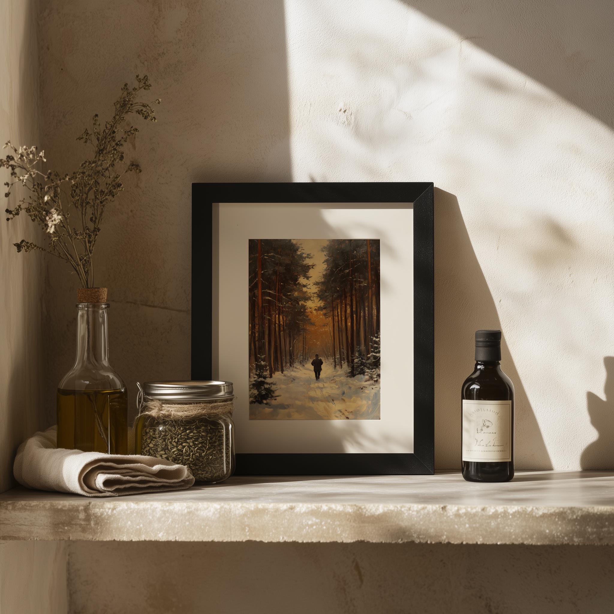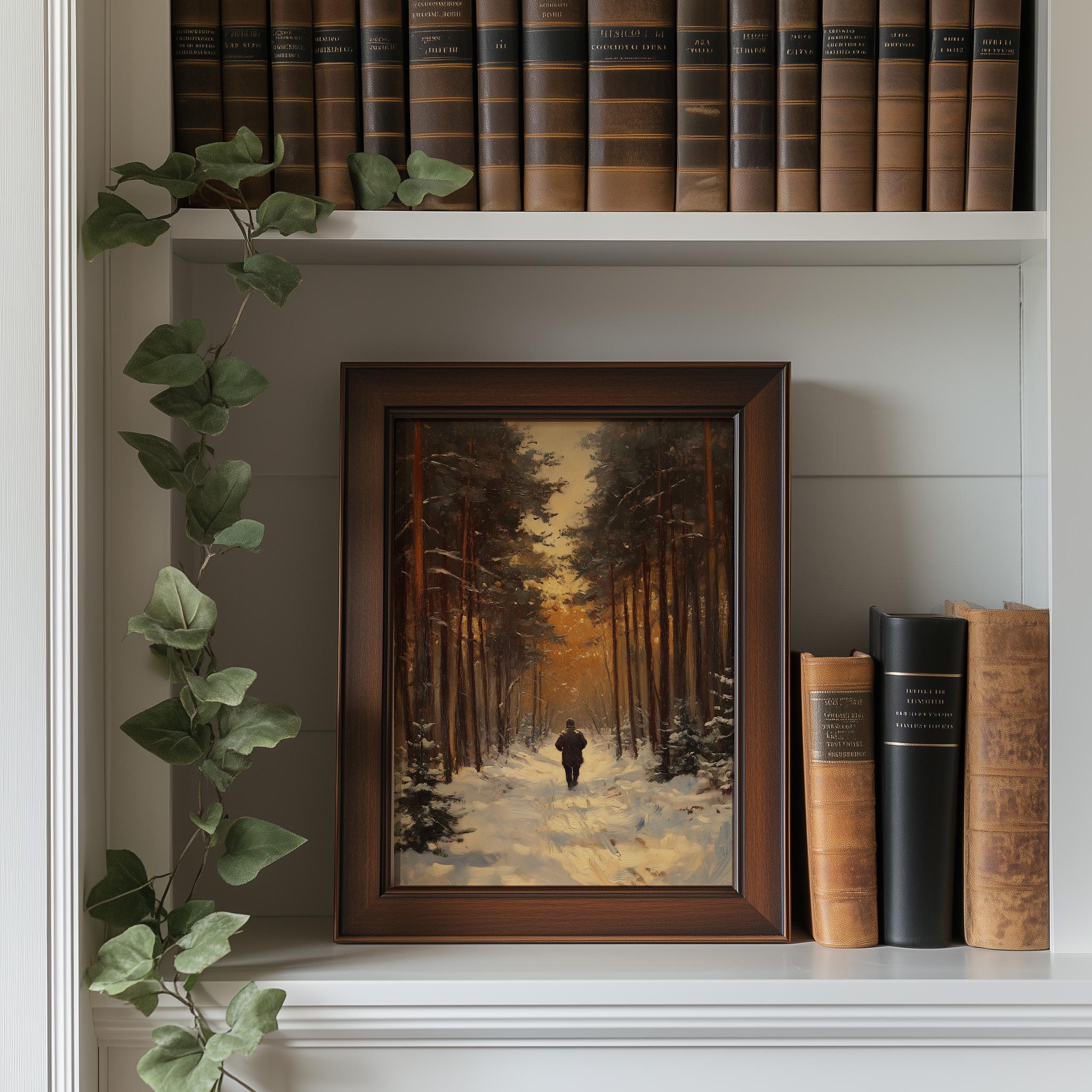 Winter Forest Path Oil Painting: Rustic Cottagecore Decor (Digital Art)