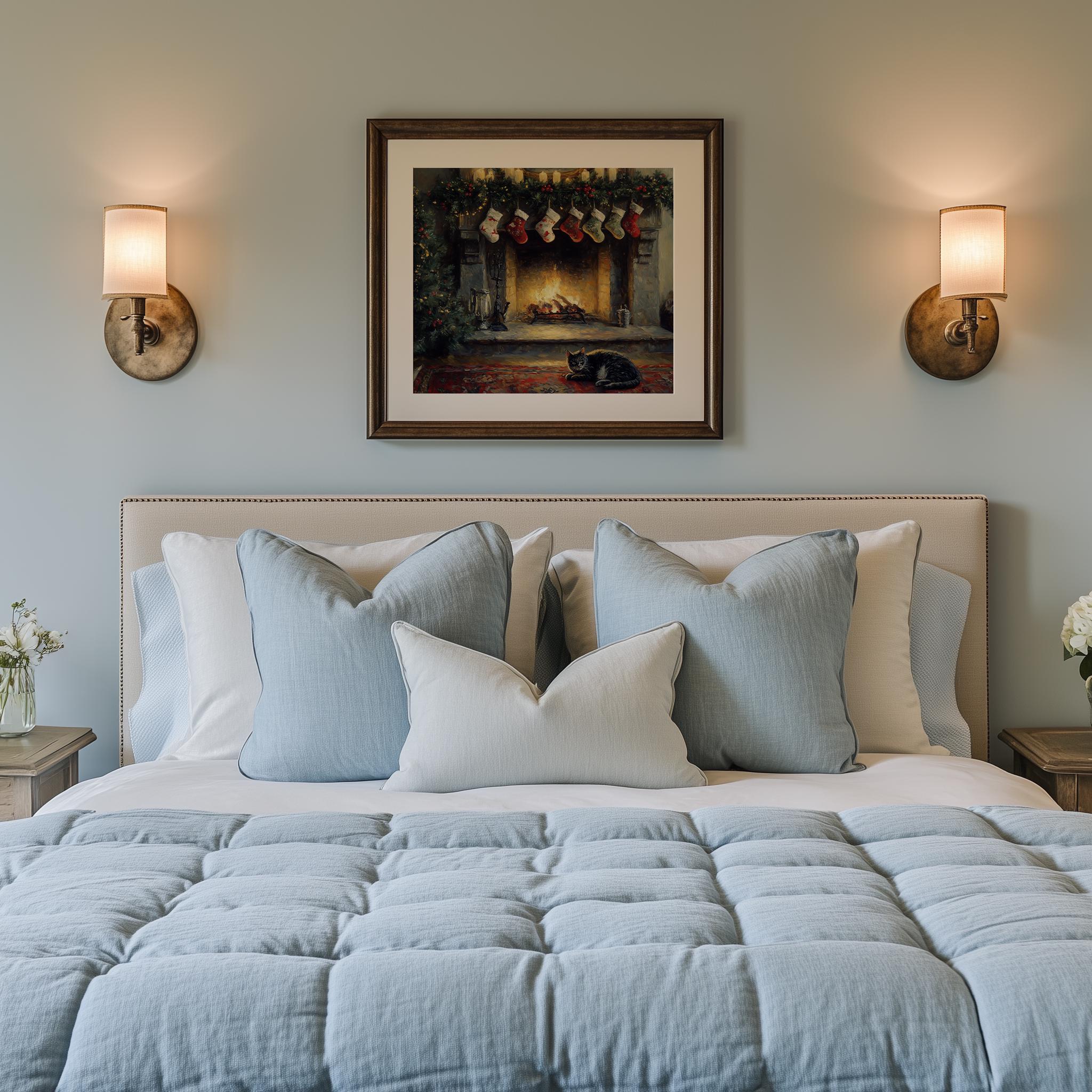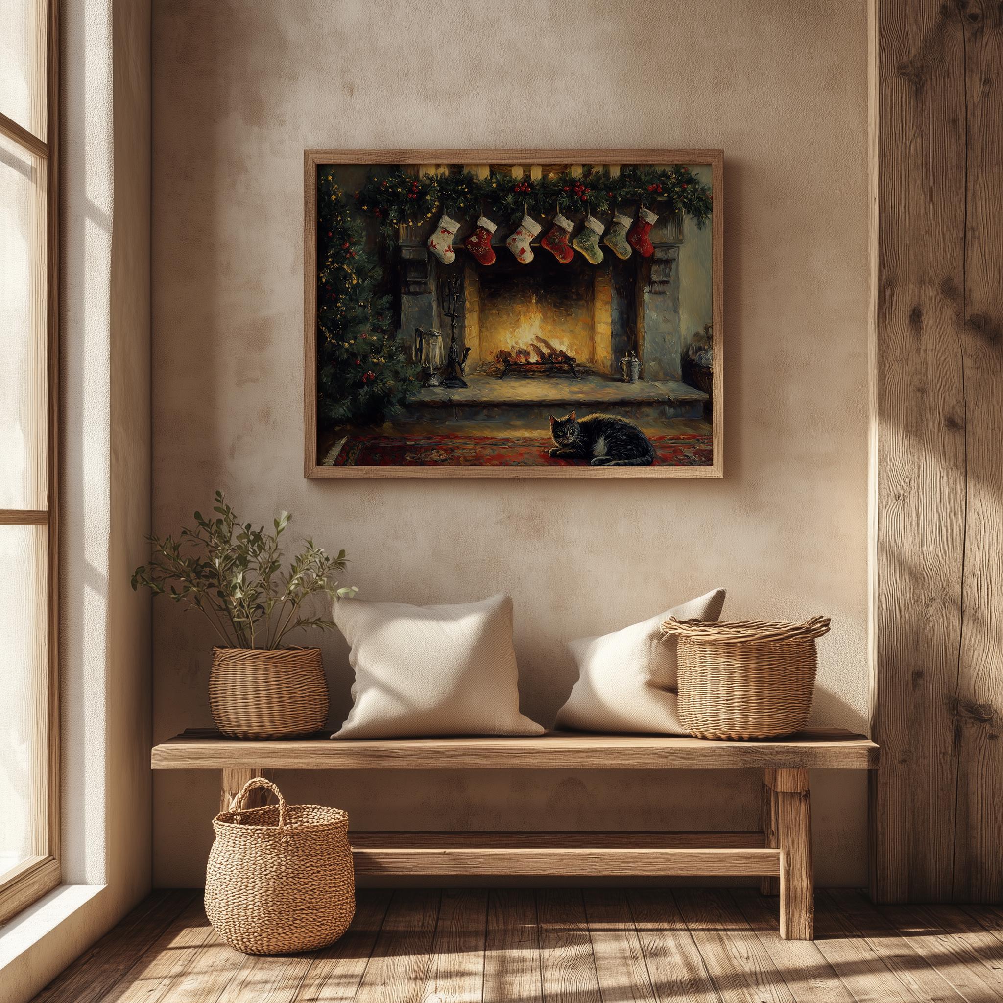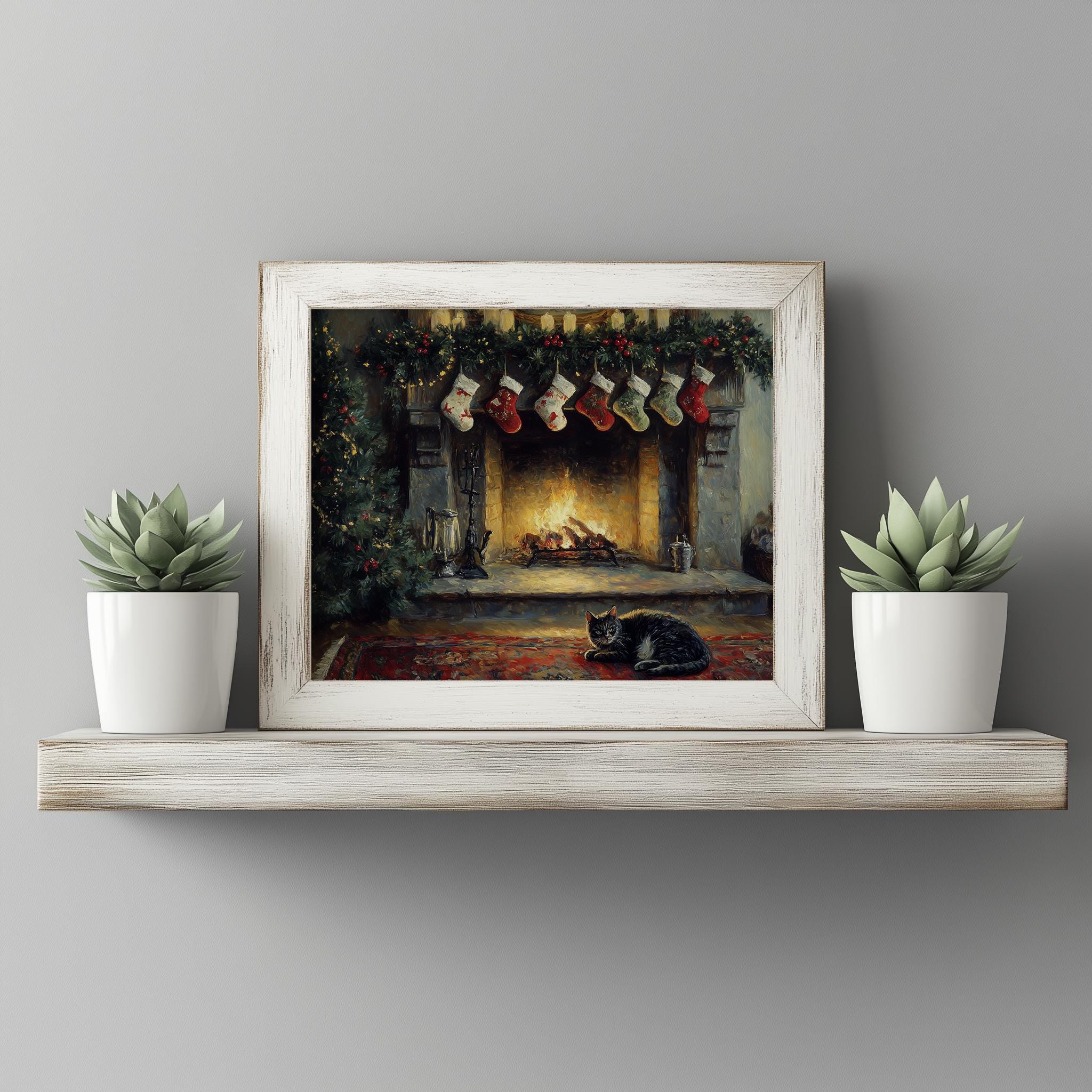 Cozy Fireplace Christmas Art: Rustic Mantel Scene (Printable Art)