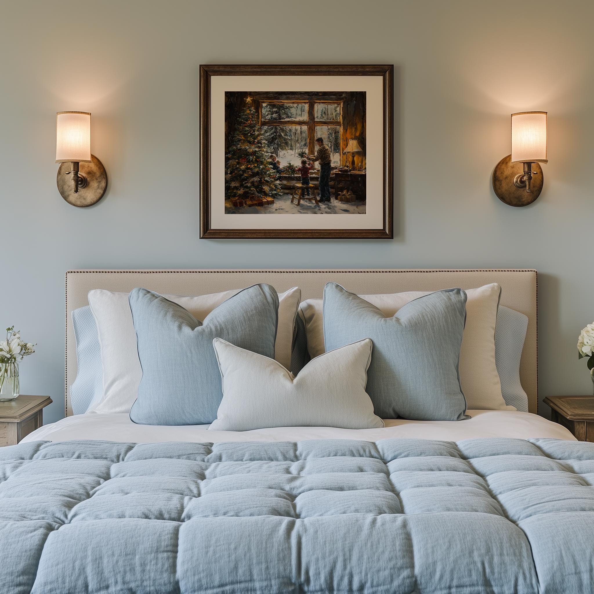 Vintage Christmas Family Tree Oil Painting: Cozy Cottagecore Holiday Decor (Digital Download)