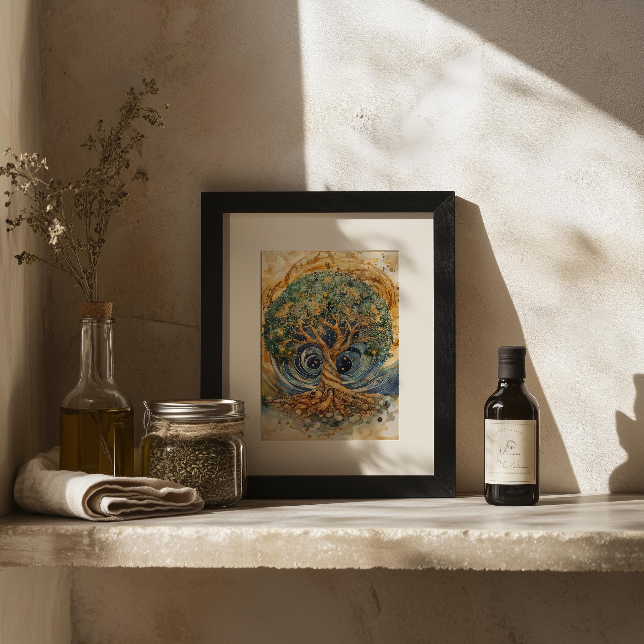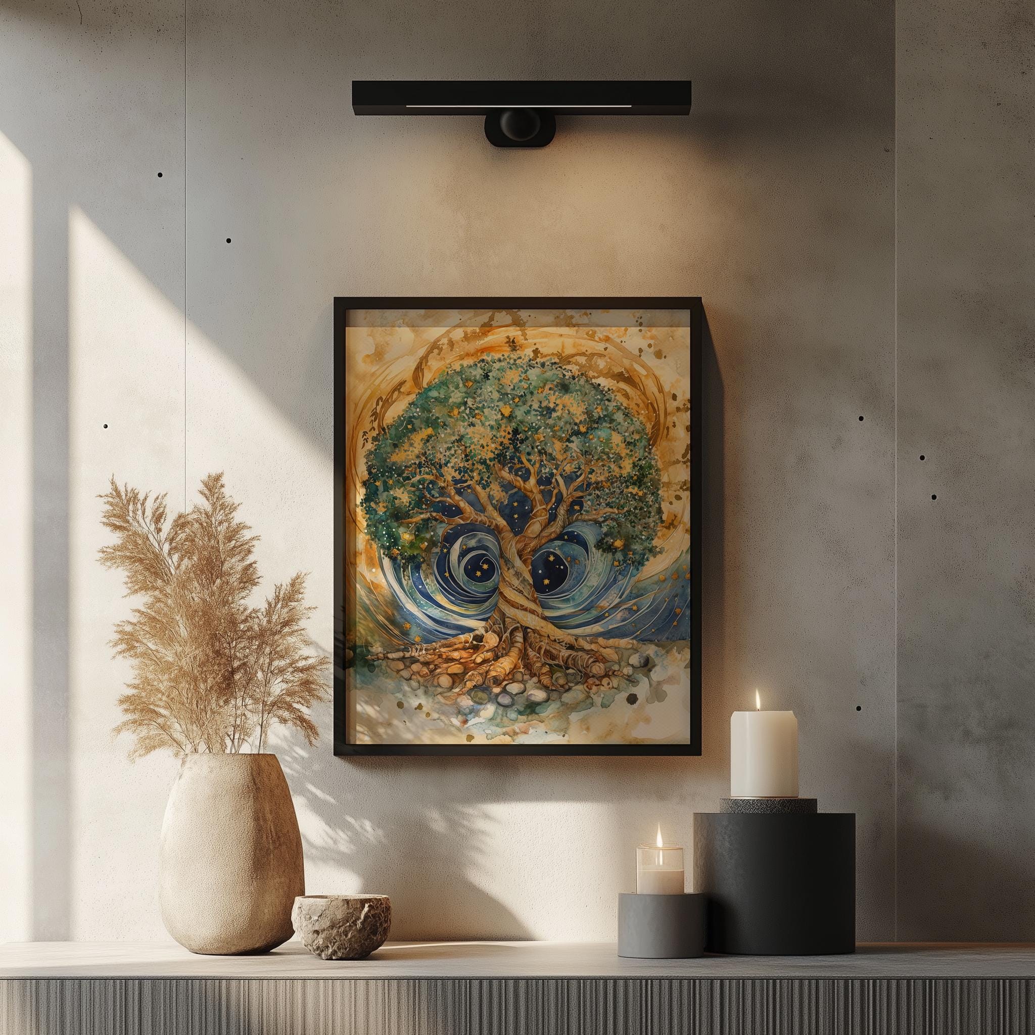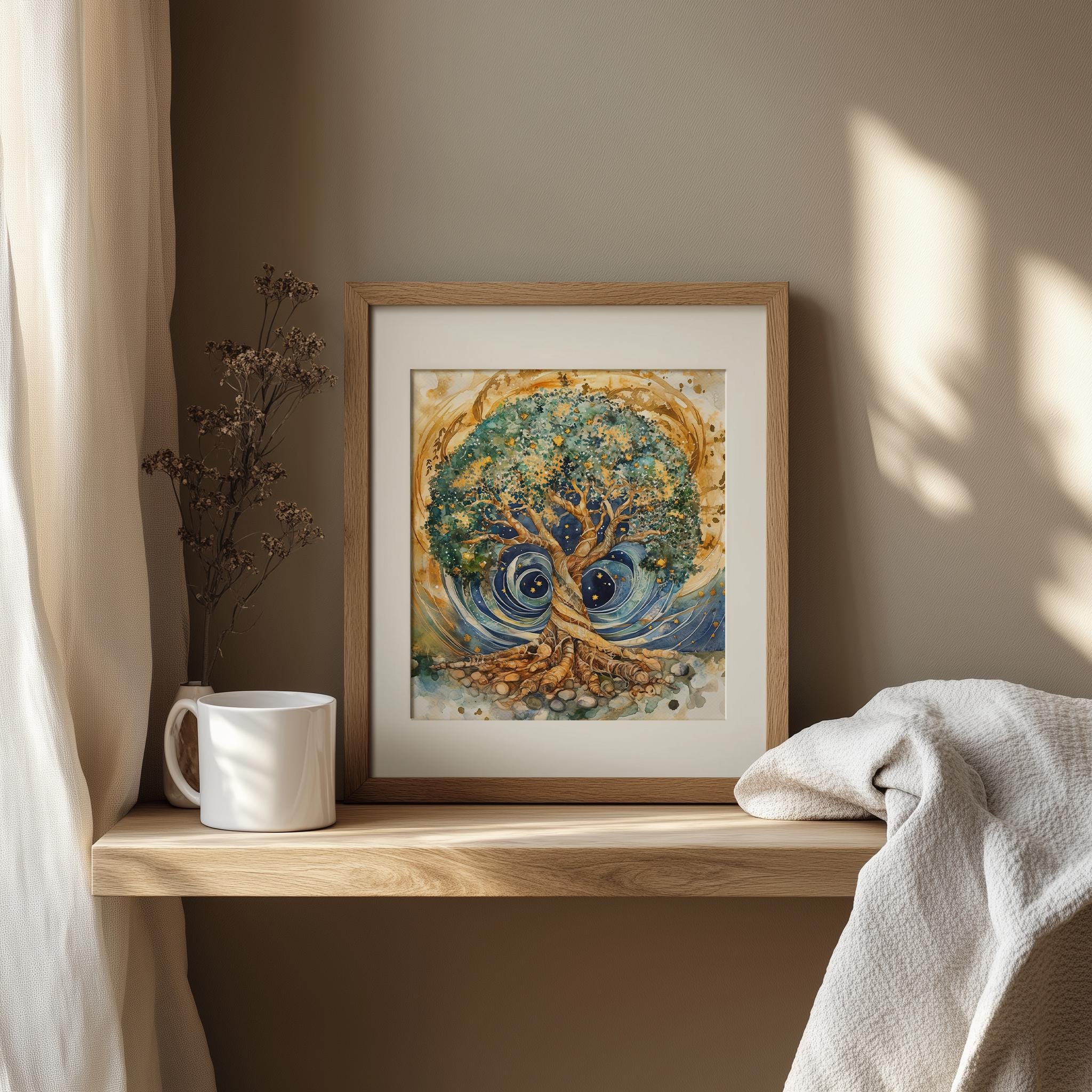 Mystical Yggdrasil Watercolor Painting - Rustic Tree of Life Art, Earthy Nordic Landscape, Boho Wall Decor, Printable Art Print 324 This enchanting watercolor painting captures the essence of Yggdrasil, the legendary tree of life, depicted in rich earthy tones and intricate details. Perfect for adding a touch of mystical charm to your home or office, this artwork blends seamlessly with boho and rustic decor styles. Ideal for nature lovers and those seeking a unique piece to inspire their surroundings, this printable art is both versatile and captivating. Embrace the tranquility of nature in every season with this timeless piece, perfect for spring refreshes or cozy autumn vibes.