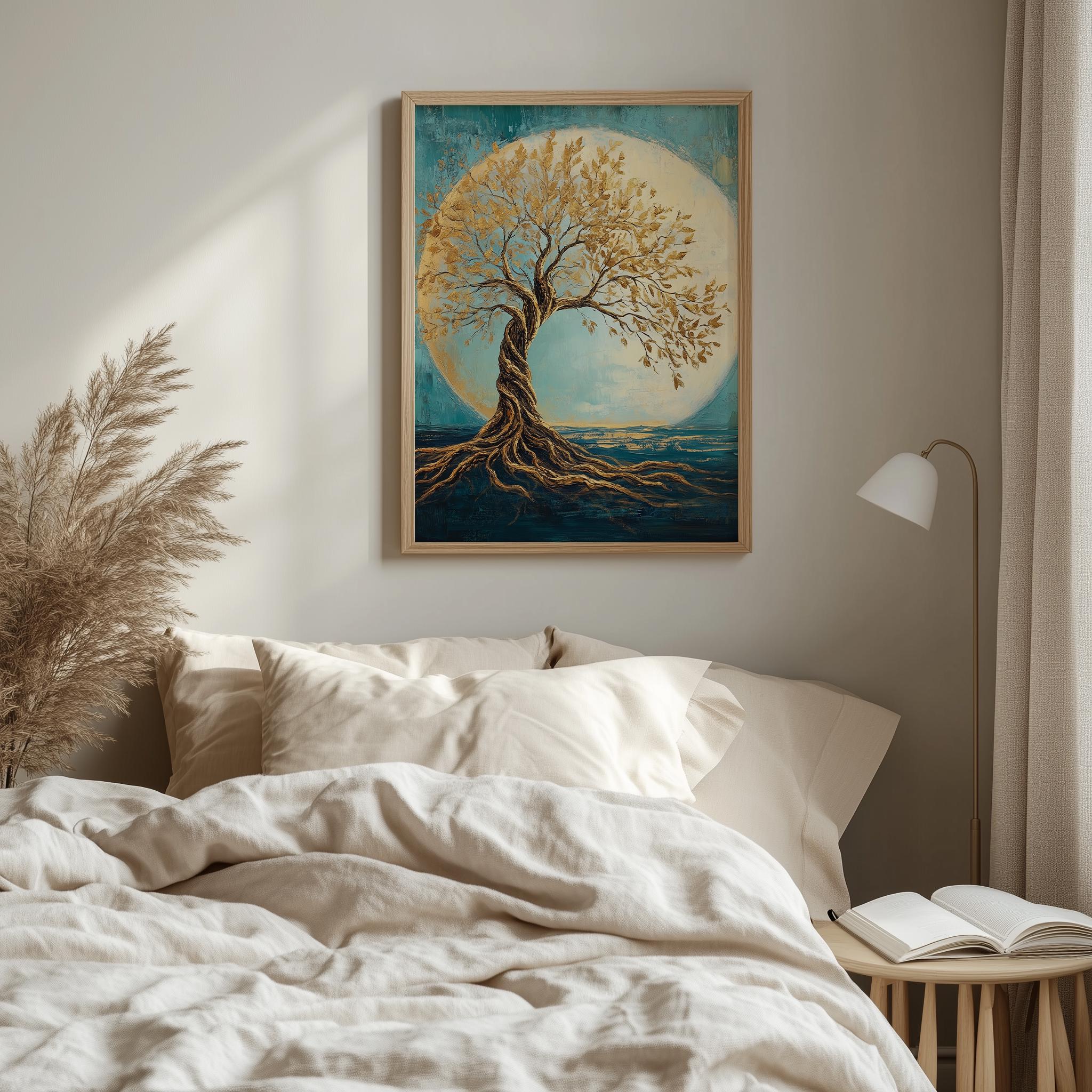 Elegant Printable Tree of Life Wall Art - A Stunning Addition to Your Home This exquisite digital print features a beautifully designed Tree of Life with spiraling roots, capturing the essence of nature in a moody and earthy palette. Perfect for adding a touch of rustic charm to any space, this artwork embodies the cottagecore aesthetic, making it a unique focal point for your living room, bedroom, or office. Print it at home for instant decor that inspires and uplifts. Perfect for all seasons, this art piece brings warmth and connection to nature year-round.