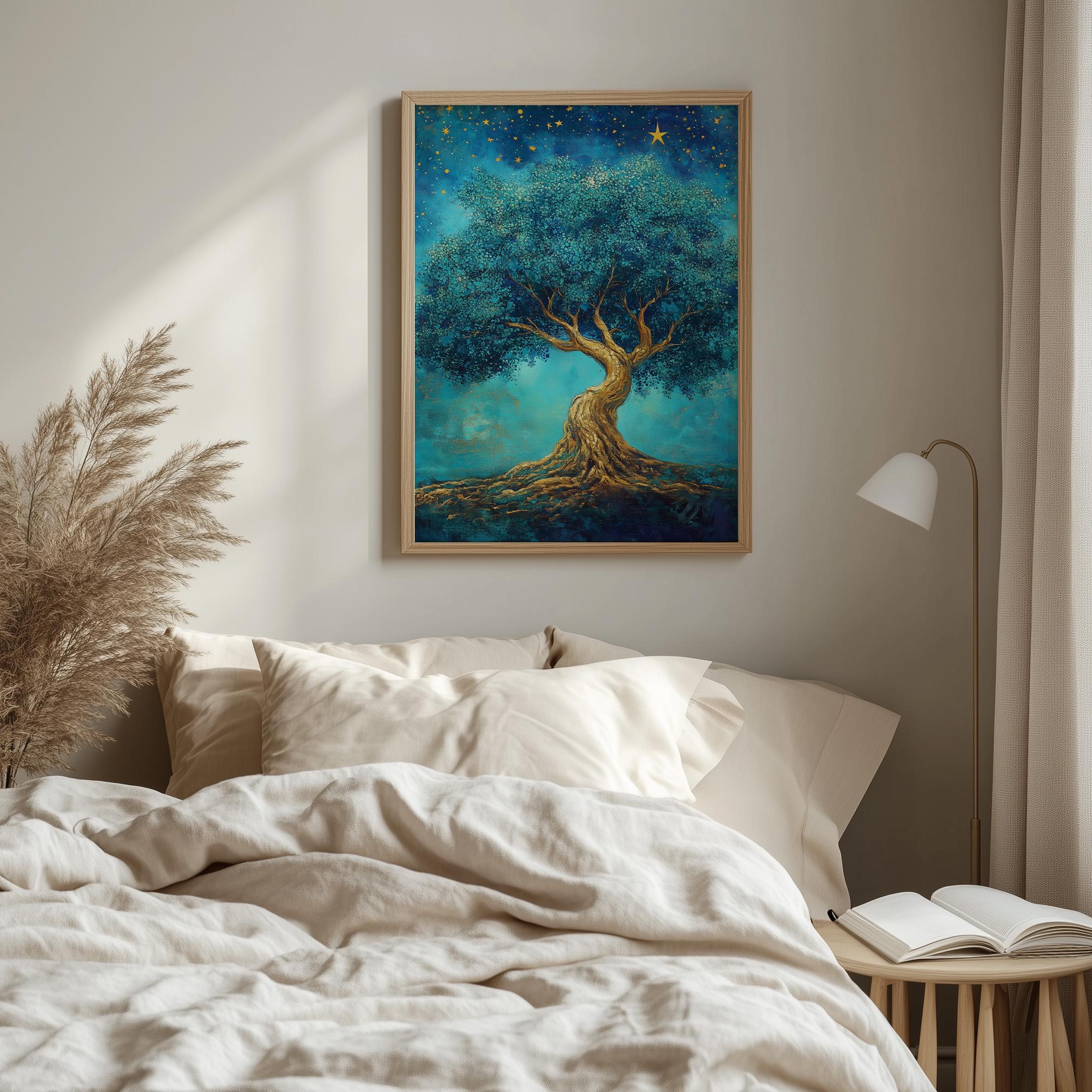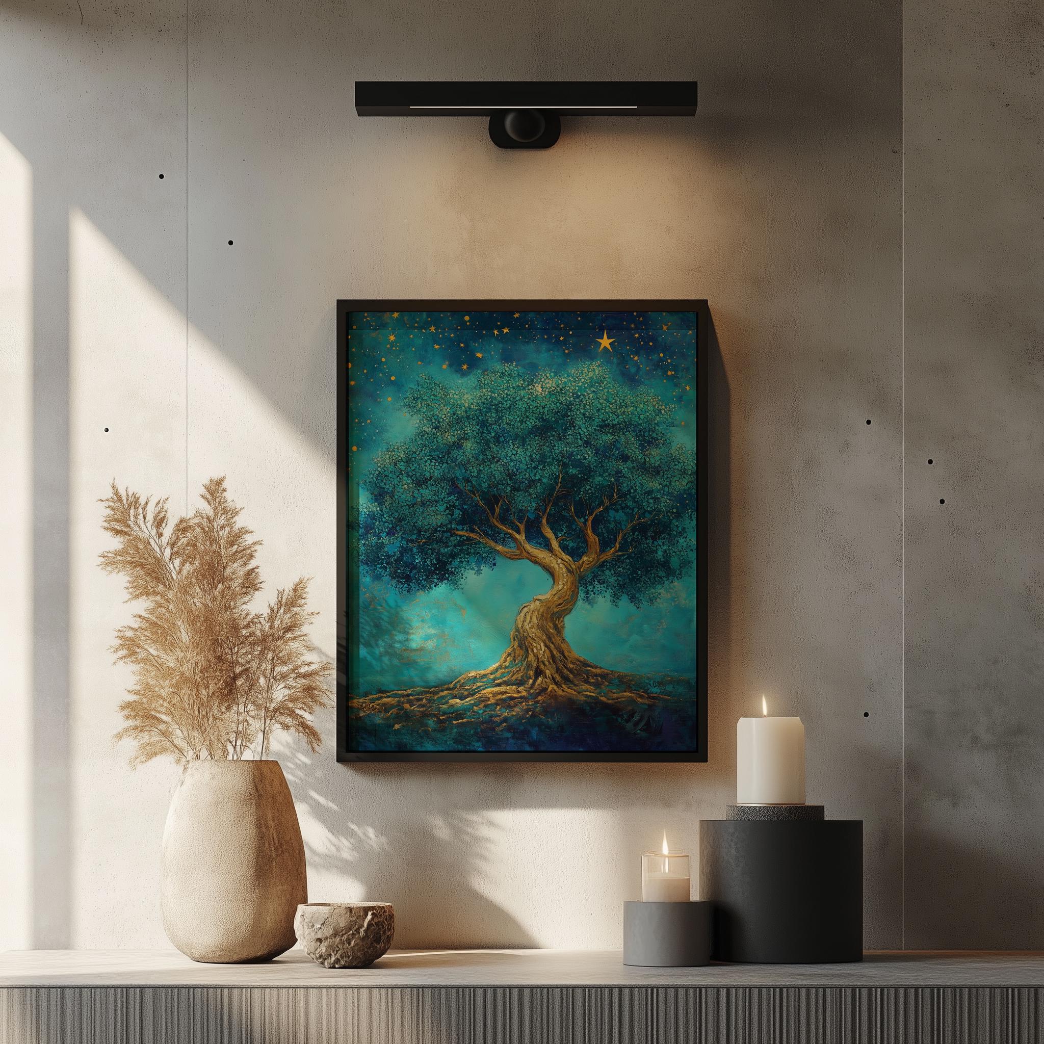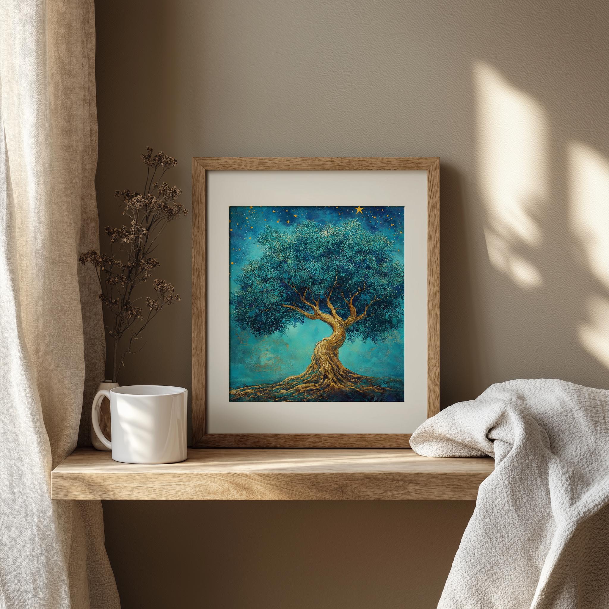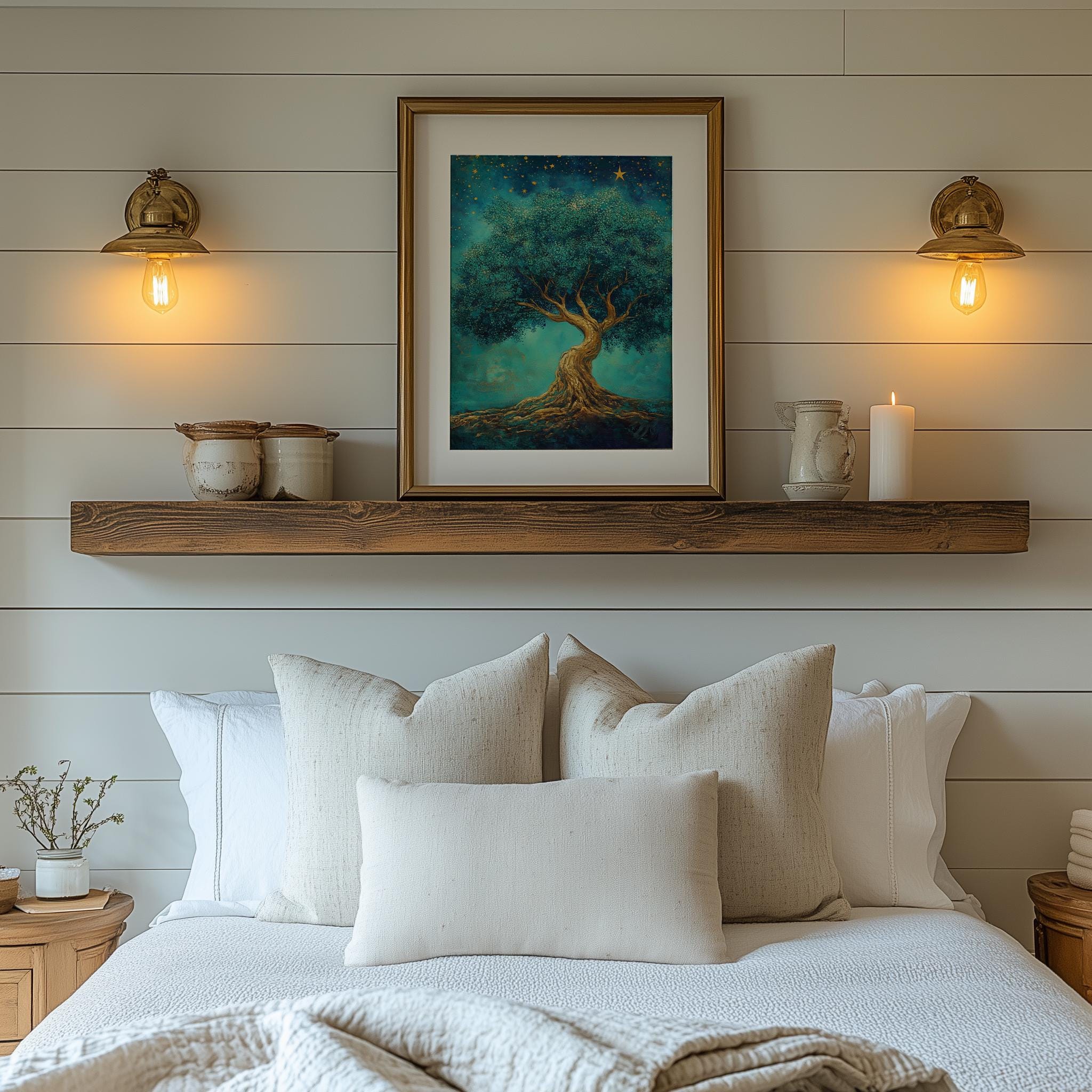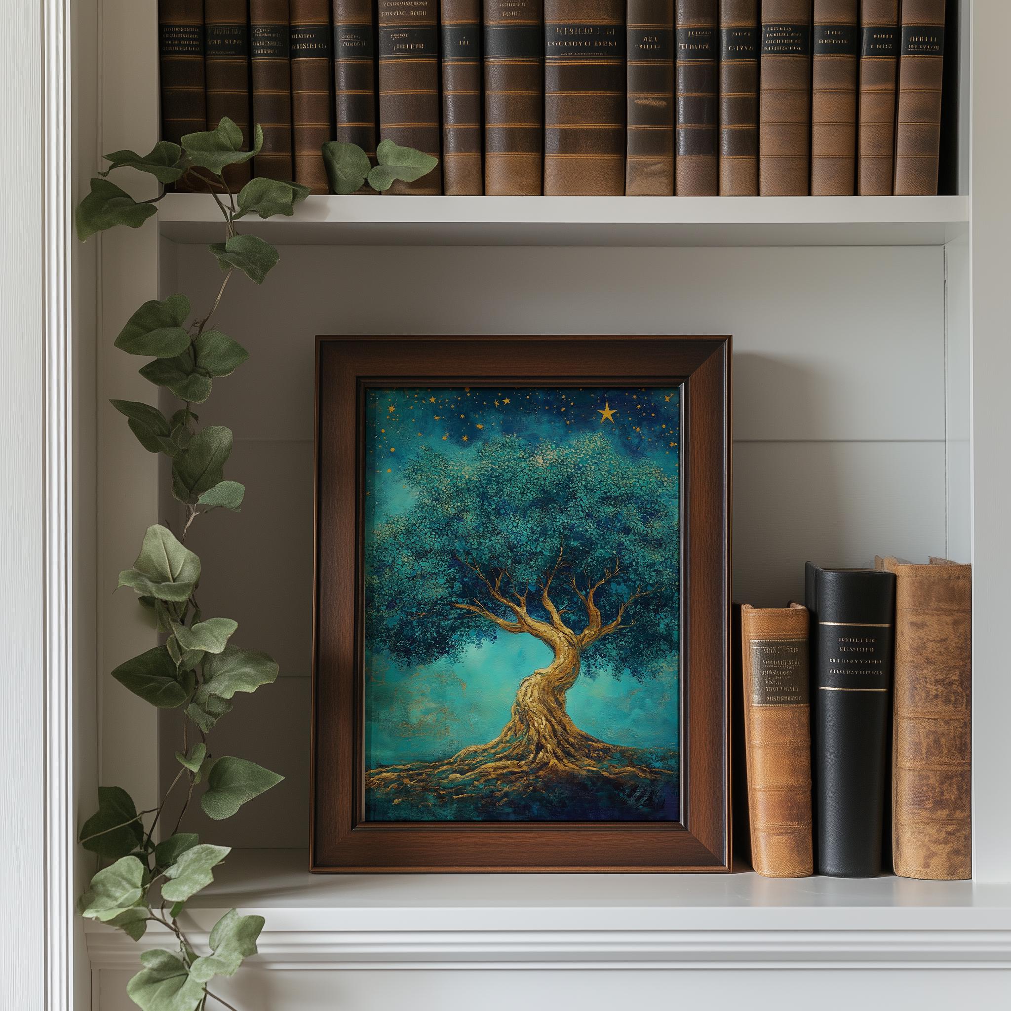 Majestic Ancient Tree of Life - Printable Wall Art This stunning digital landscape painting captures the essence of a wide canopy tree, intricately designed to bring a touch of earthy elegance into your space. Perfect for nature lovers, this wall art serves as a serene reminder of the beauty found in the natural world. Ideal for enhancing your cottagecore decor, it invites tranquility and warmth into any room. Perfect for all seasons, bringing a sense of calm and connection to nature year-round.