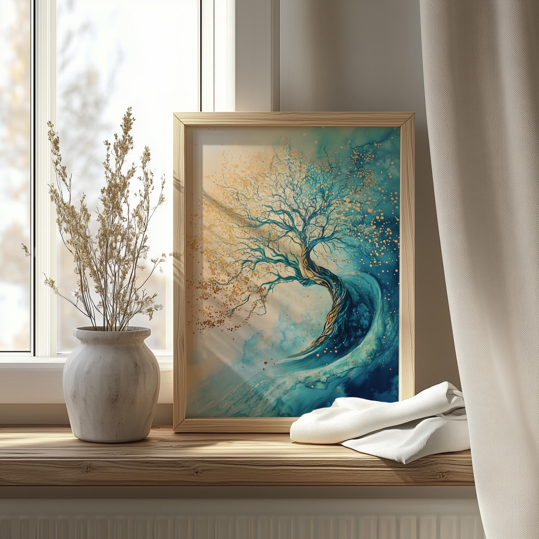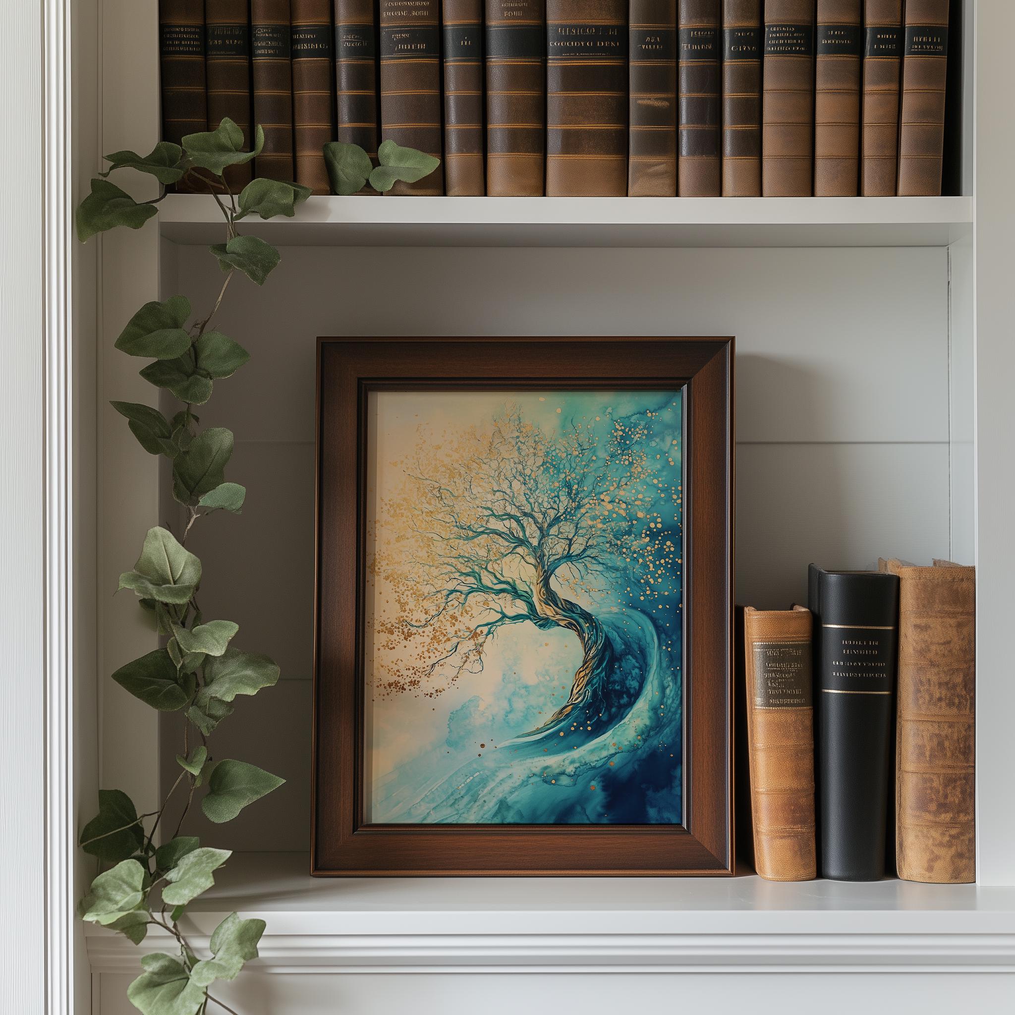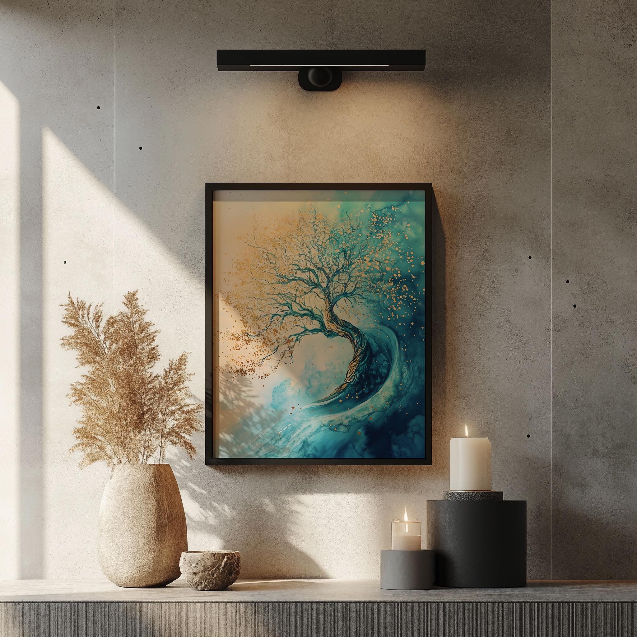 Wind-swept Tree of Life Printable - Flowing Branches Arc Wall Art This stunning digital download features a captivating portrayal of the Tree of Life, with its flowing branches elegantly arcing across the canvas. The earthy tones and moody atmosphere create a serene landscape decor that brings a touch of nature into your home. Perfect for those who appreciate the beauty of organic art, this piece will elevate your wall decor and inspire tranquility in any space. Perfect for all seasons, this artwork seamlessly complements your home throughout the year.