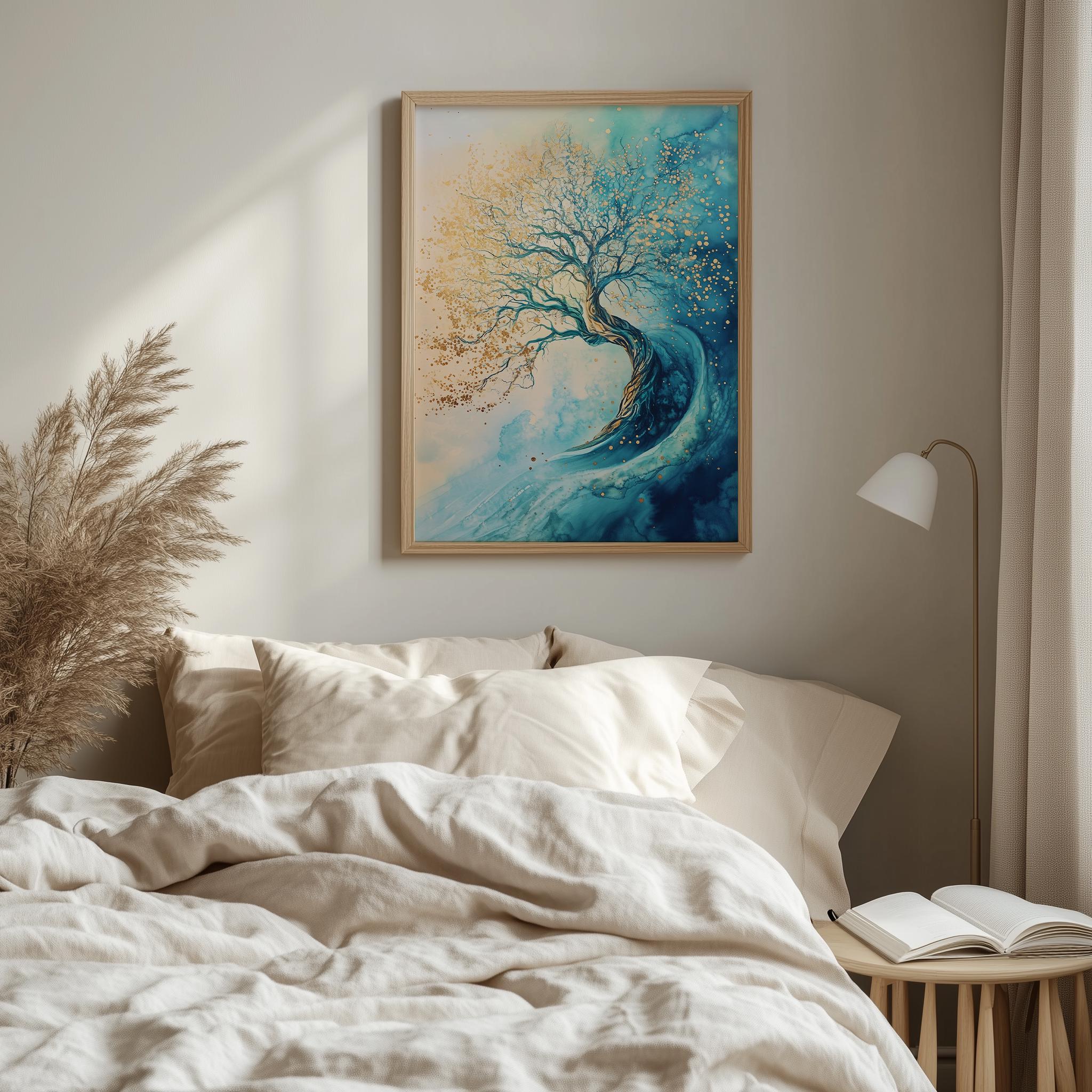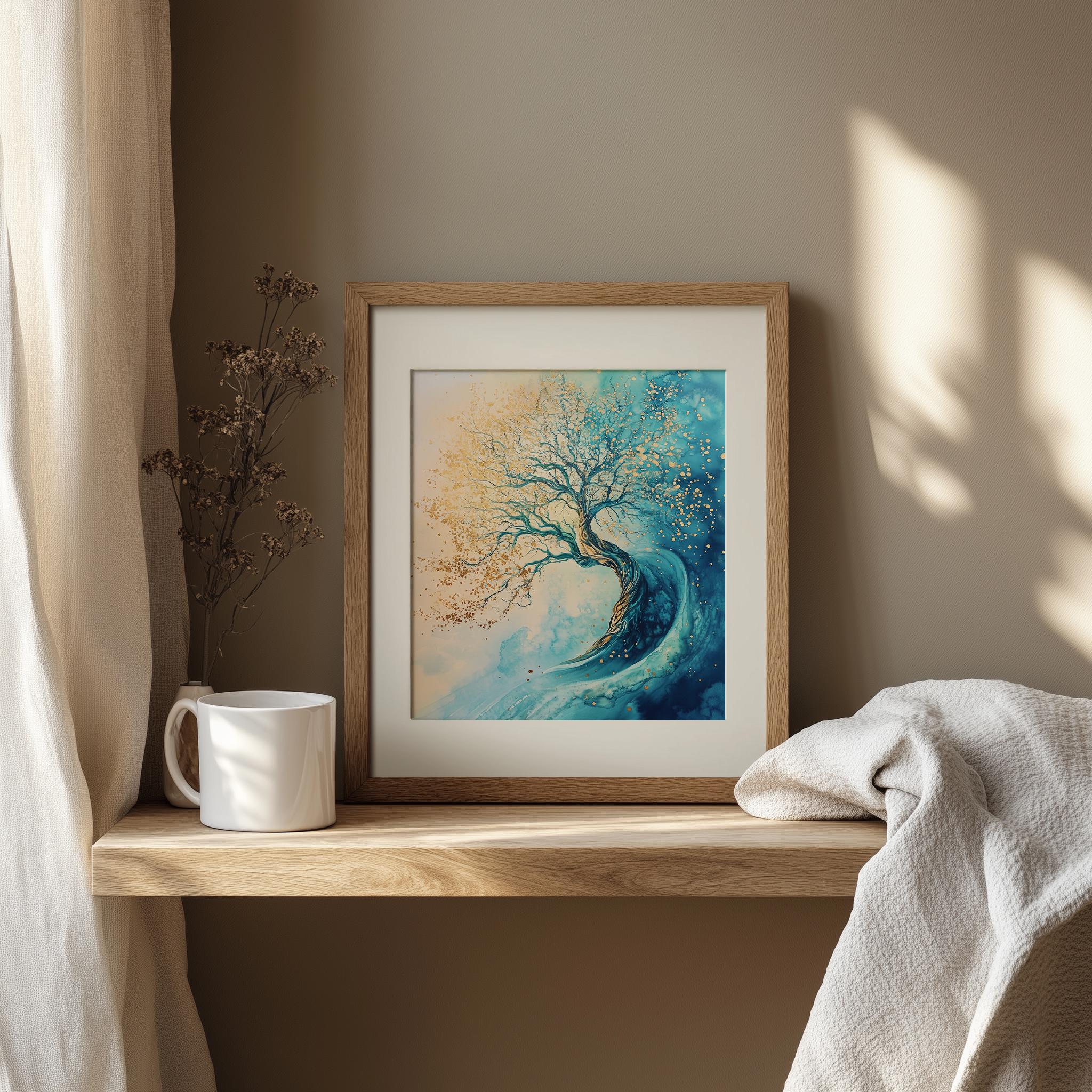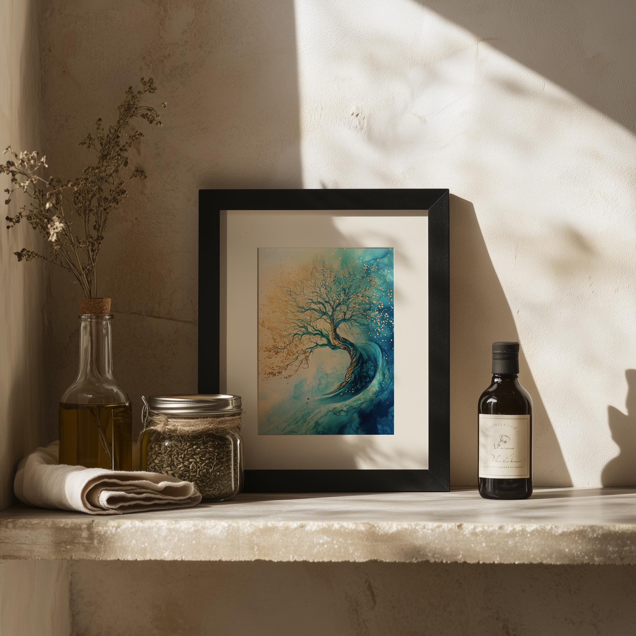 Wind-swept Tree of Life Printable - Flowing Branches Arc Wall Art This stunning digital download features a captivating portrayal of the Tree of Life, with its flowing branches elegantly arcing across the canvas. The earthy tones and moody atmosphere create a serene landscape decor that brings a touch of nature into your home. Perfect for those who appreciate the beauty of organic art, this piece will elevate your wall decor and inspire tranquility in any space. Perfect for all seasons, this artwork seamlessly complements your home throughout the year.