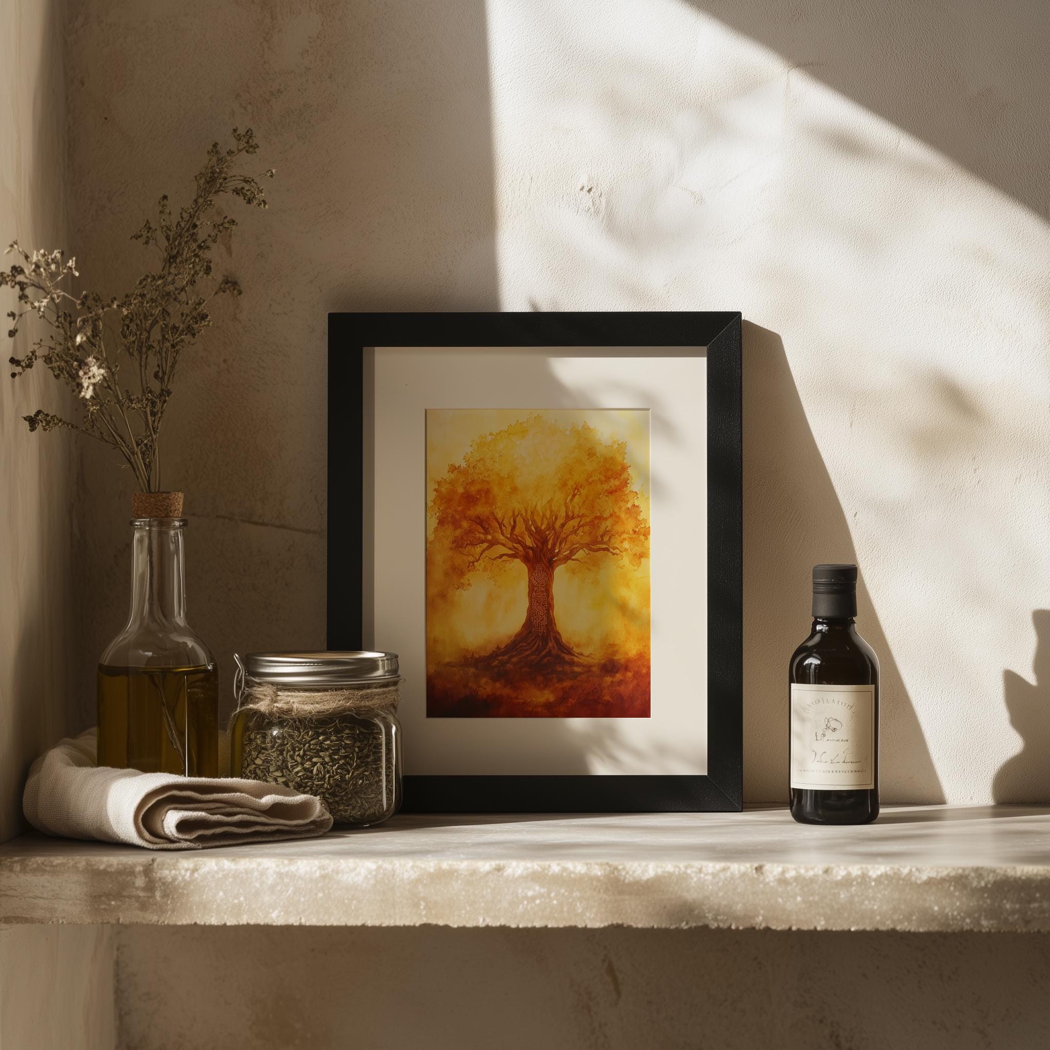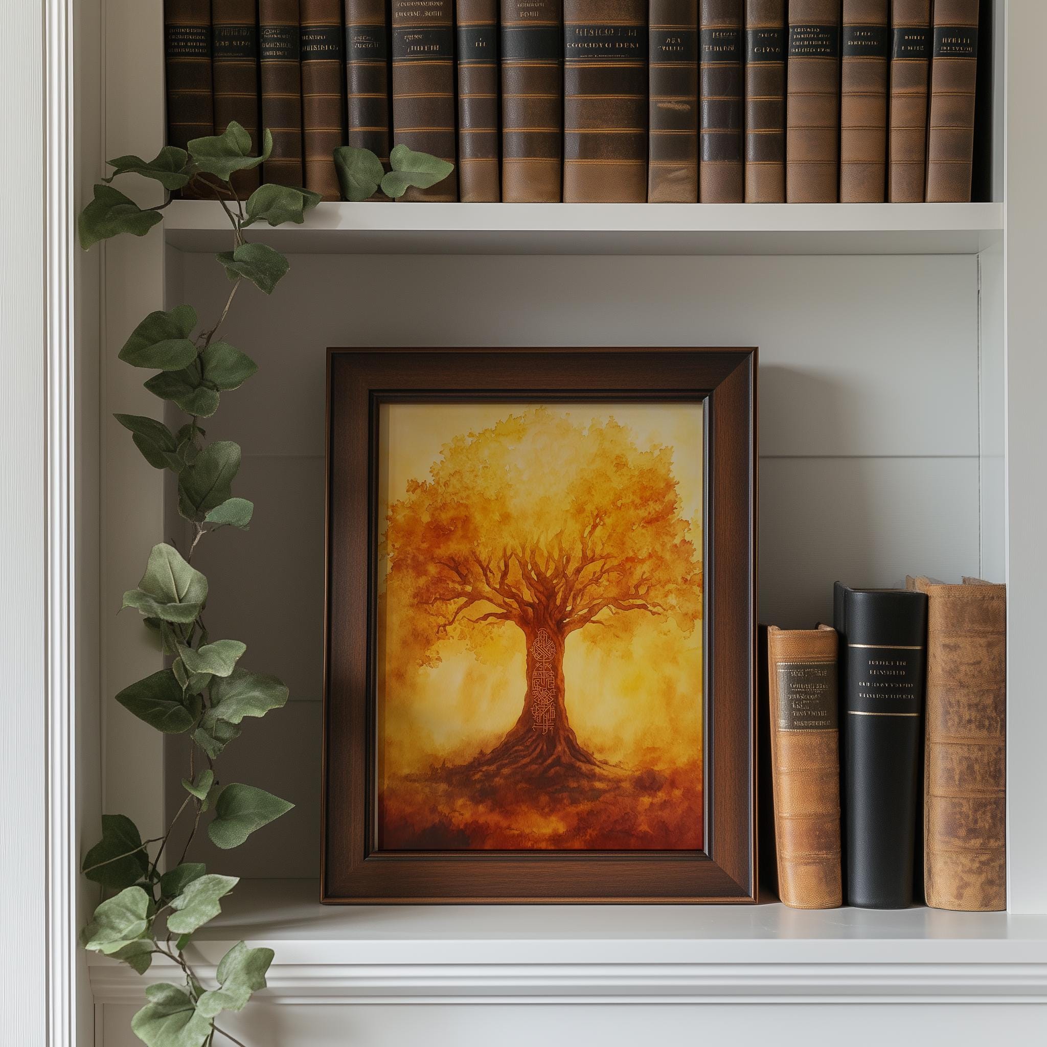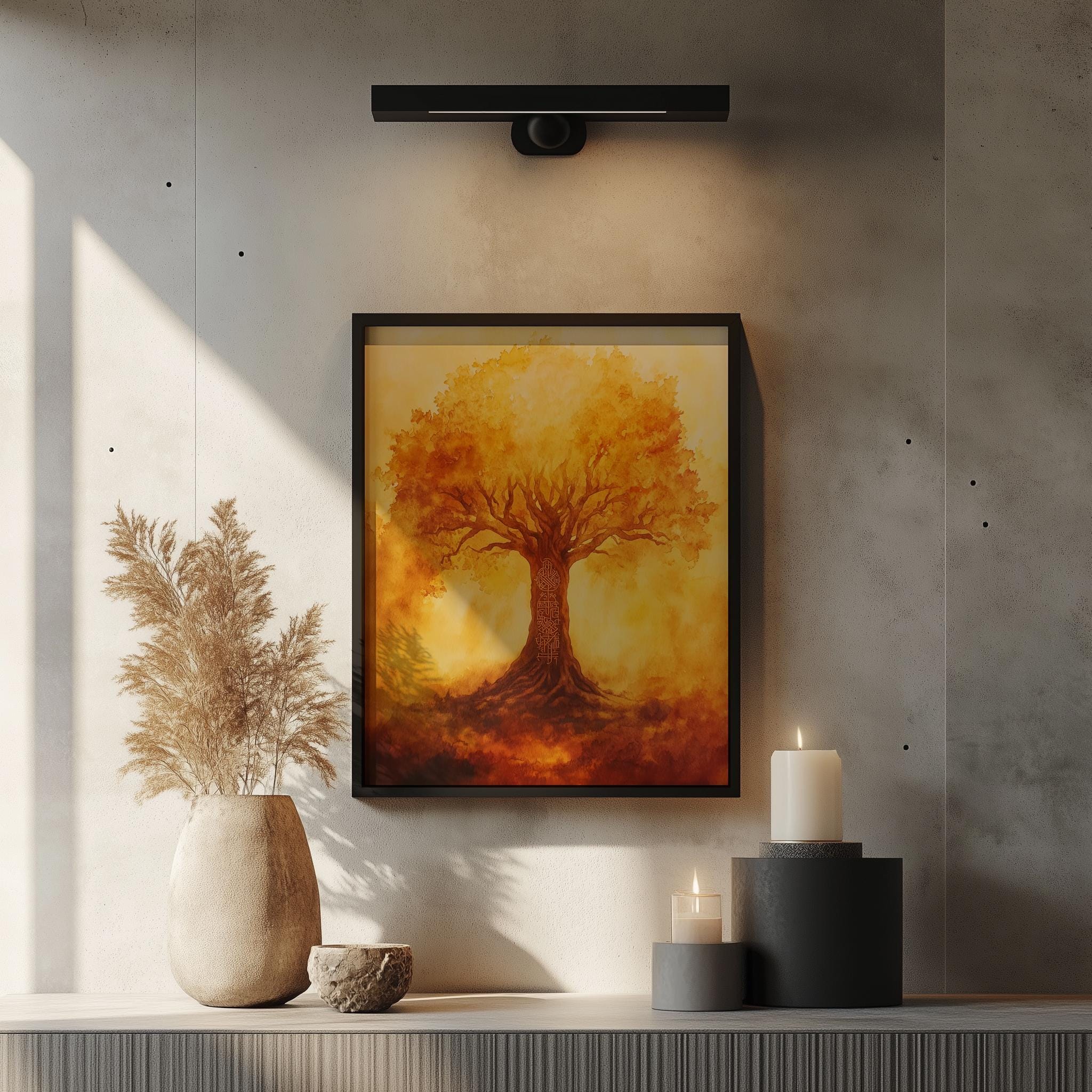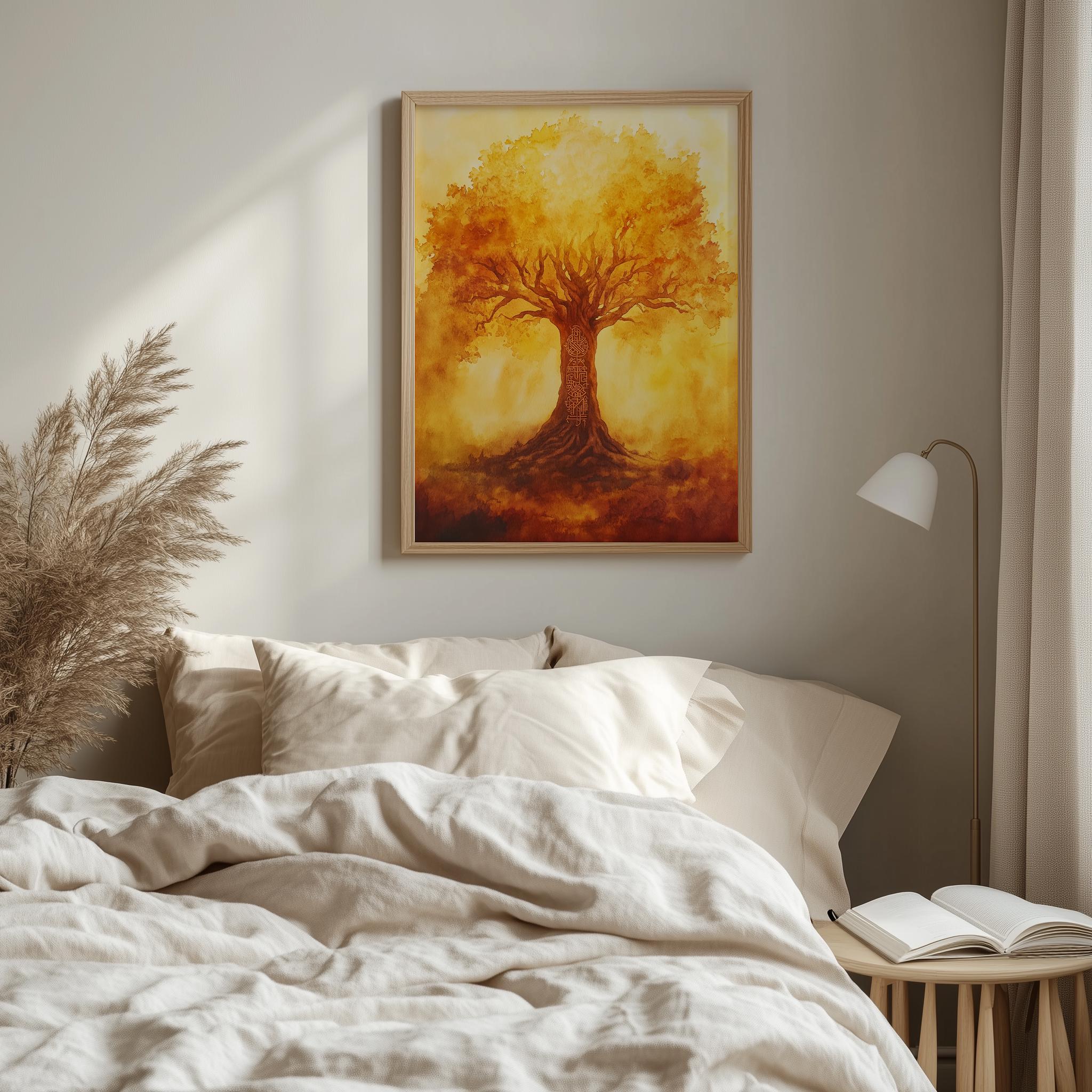 Autumn Tree of Life Printable Wall Art - Yggdrasil Watercolor Painting, Rustic Earthy Decor This stunning piece showcases the enchanting Yggdrasil, the Tree of Life, rendered in beautiful watercolor hues that evoke the warmth and richness of autumn. Perfect for adding a touch of rustic charm to your home, this art print captures the essence of Norse mythology and the serene beauty of nature. Ideal for any space in need of a cozy, earthy vibe, it's a versatile piece that can complement both modern and cottagecore aesthetics. Fall
