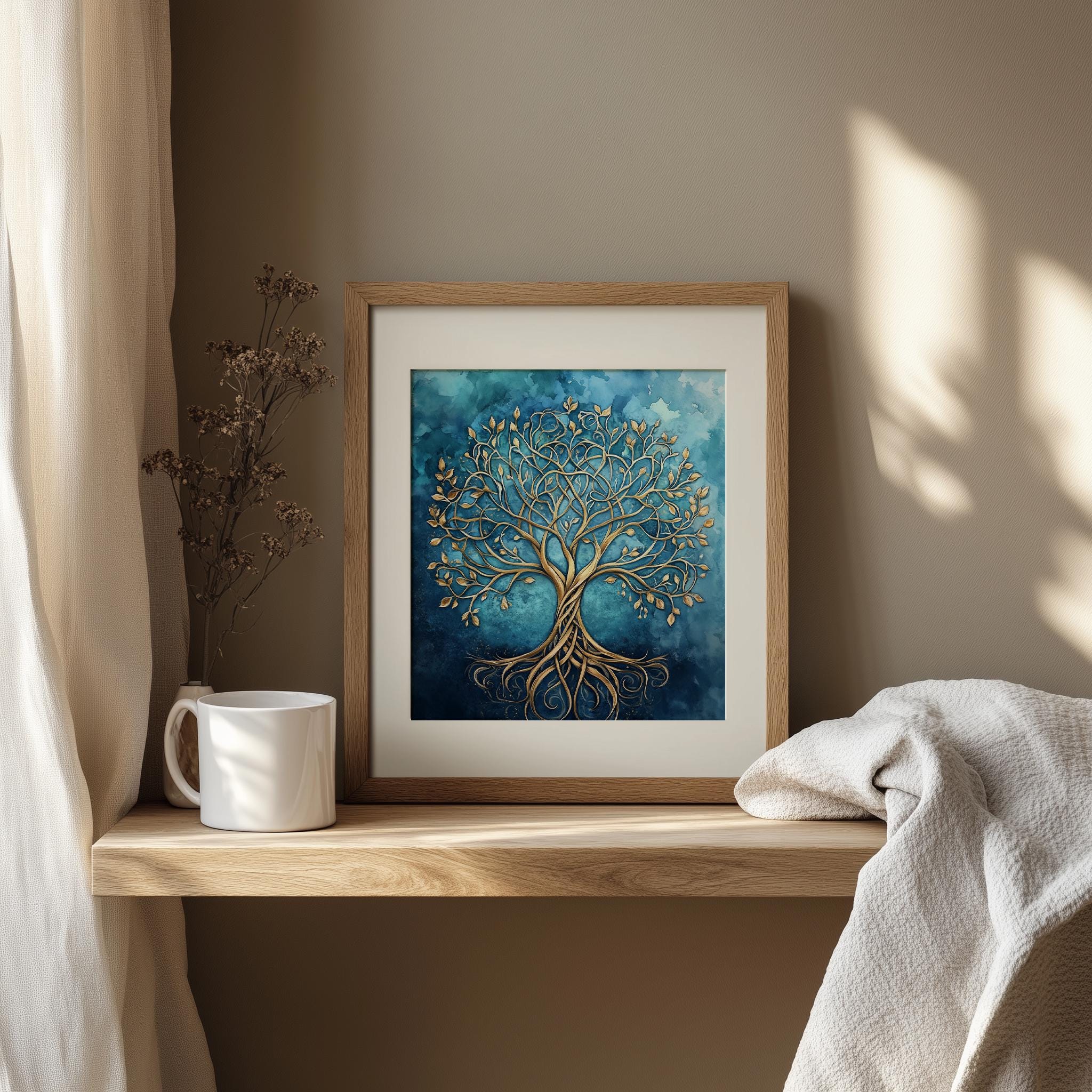 Symmetrical Tree of Life Printable - Moody Blue Wall Art This intricately designed digital artwork showcases a mirrored branch pattern, embodying the serene beauty of nature. Perfect for adding a touch of modern elegance to your space, this printable piece captures the essence of earthy tones and moody decor, making it an ideal choice for any room in your home. Perfect for year-round display, bringing a calming vibe to your living space.