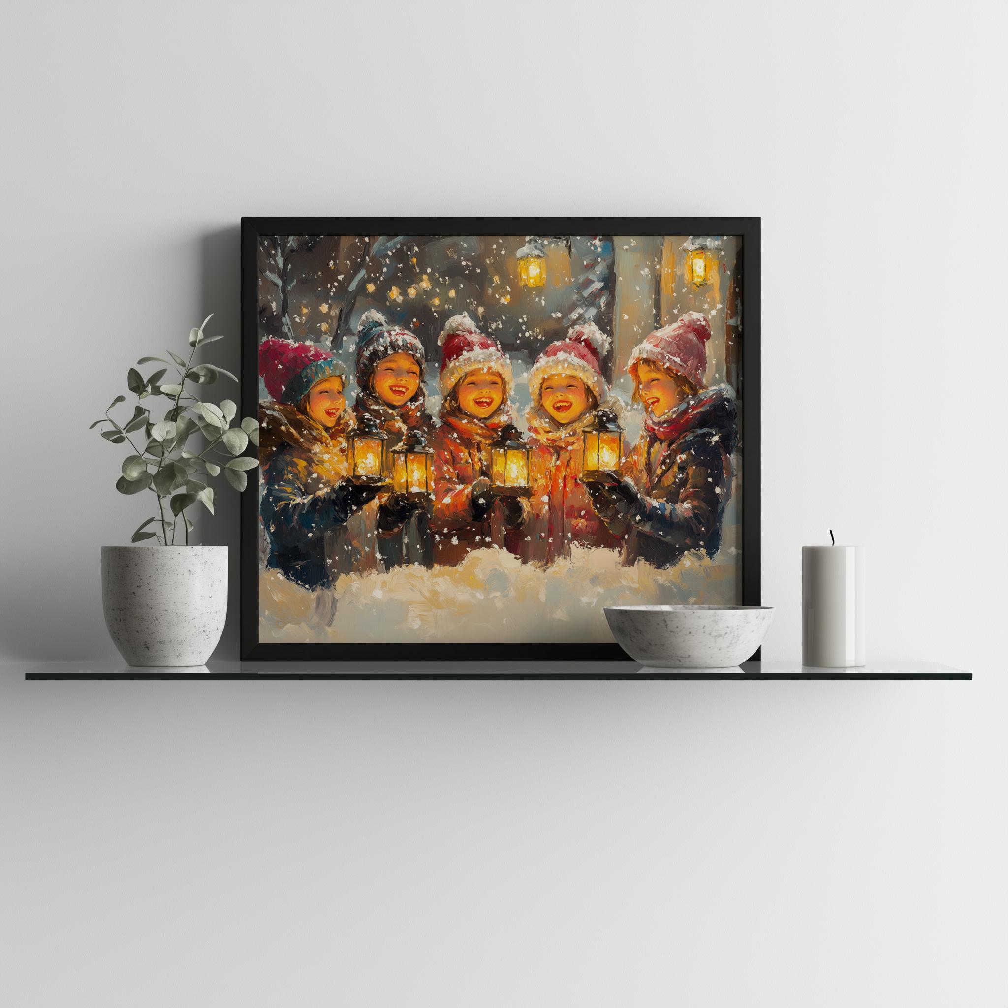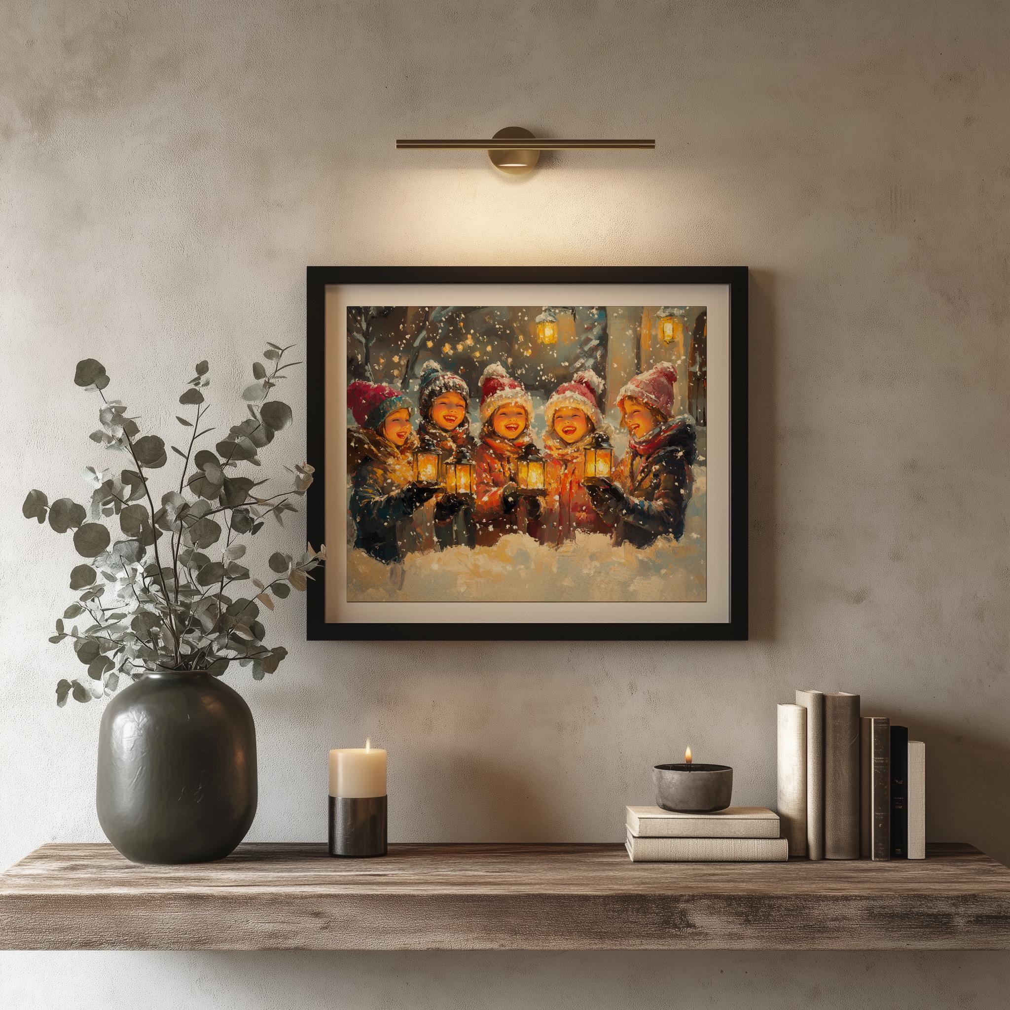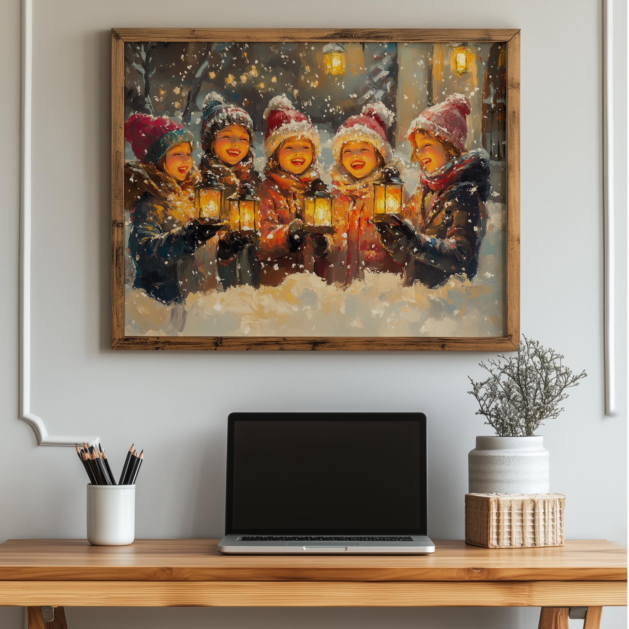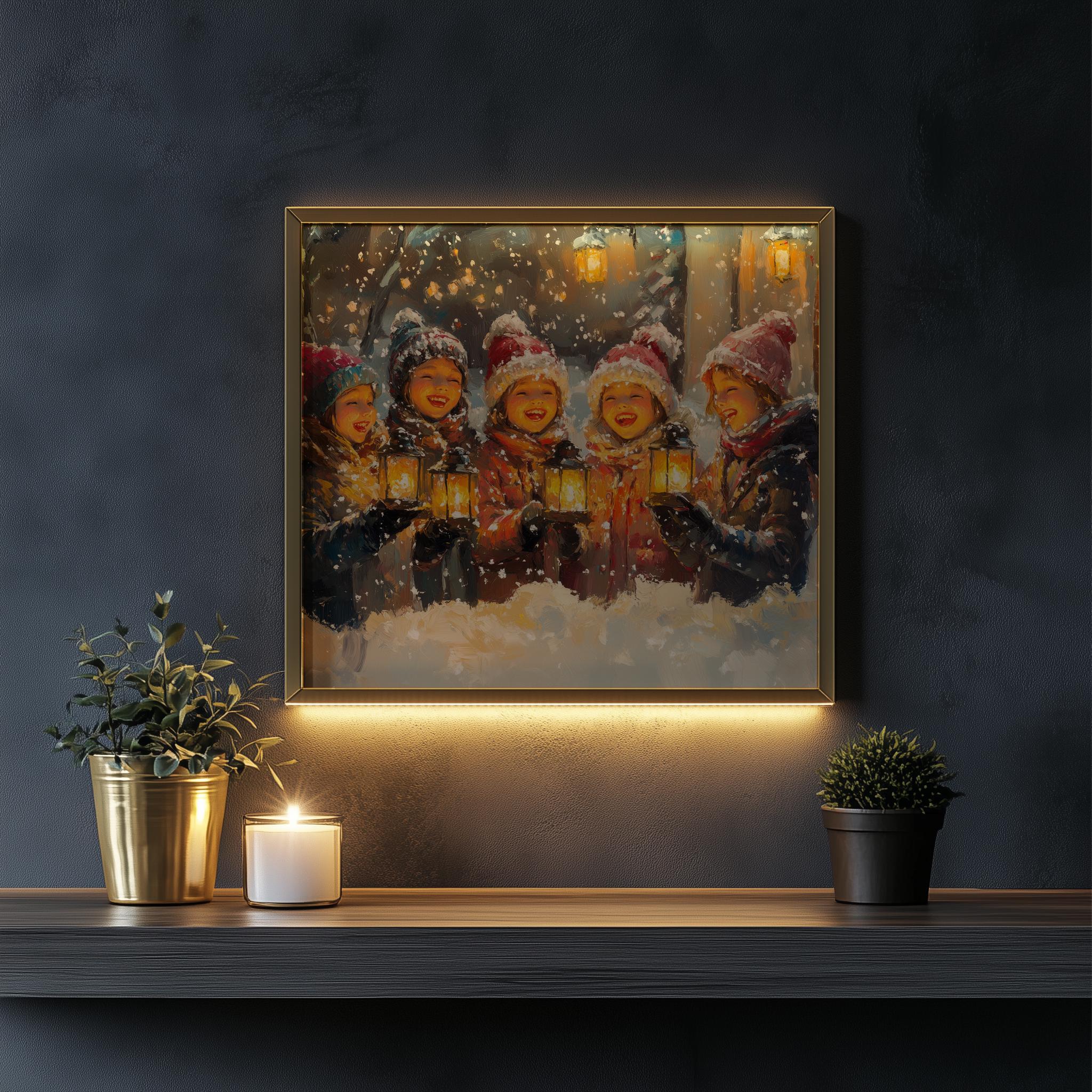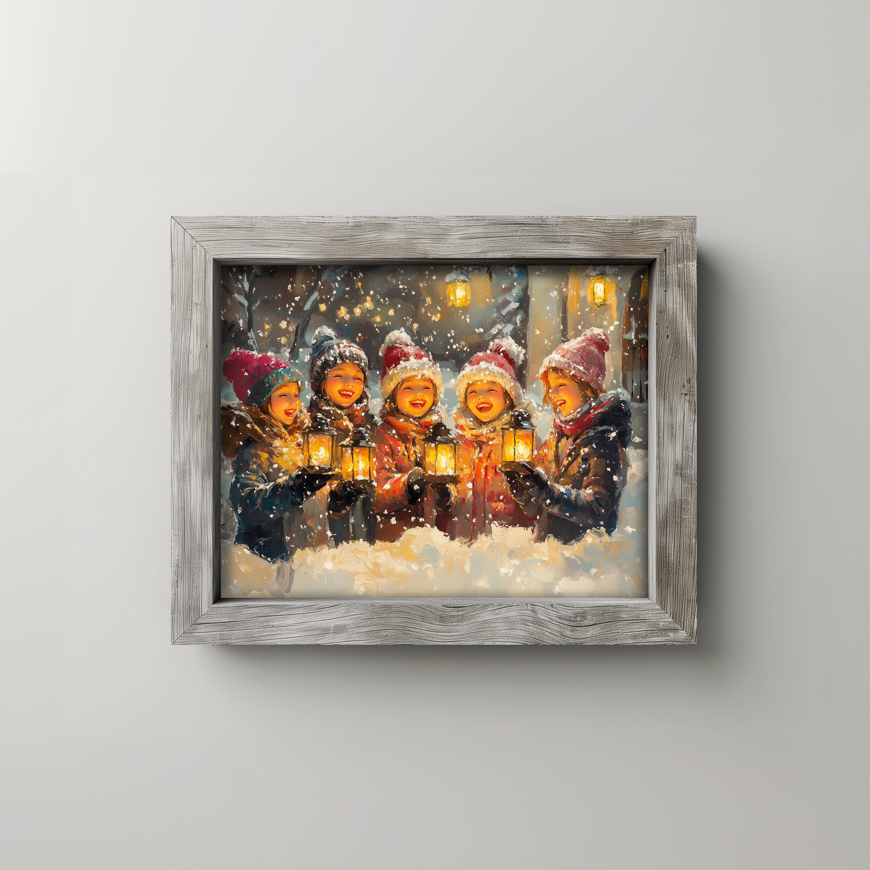 Festive Family Singing Carols - Cozy Winter Scene, Printable Christmas Decor Bring warmth and cheer to your home with this delightful vintage-inspired painting of a family joyfully singing carols in a cozy winter scene. Perfect for holiday gatherings, this printable Christmas decor captures the essence of rustic charm and festive spirit, making it an ideal addition to your holiday wall art collection. Celebrate the magic of winter and the joy of the holiday season.