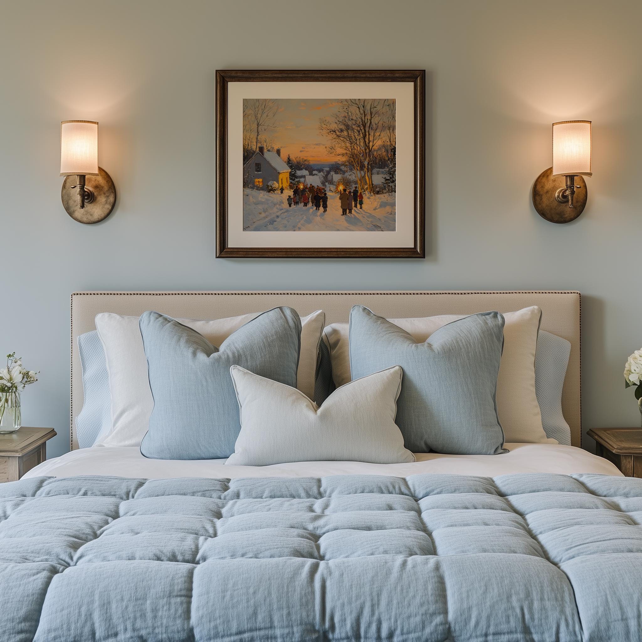 Vintage Winter Village Scene: Rustic Christmas Cottage Art (Printable Wall Art)