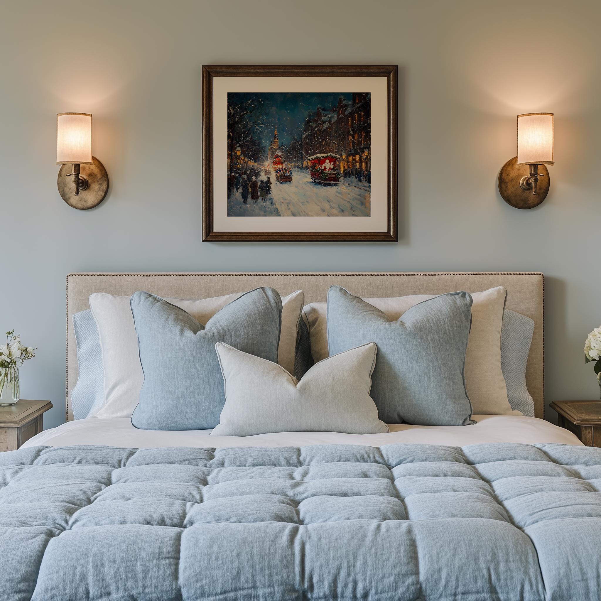 Christmas Parade Oil Painting Print: Vintage Winter Street Scene (Digital Download)