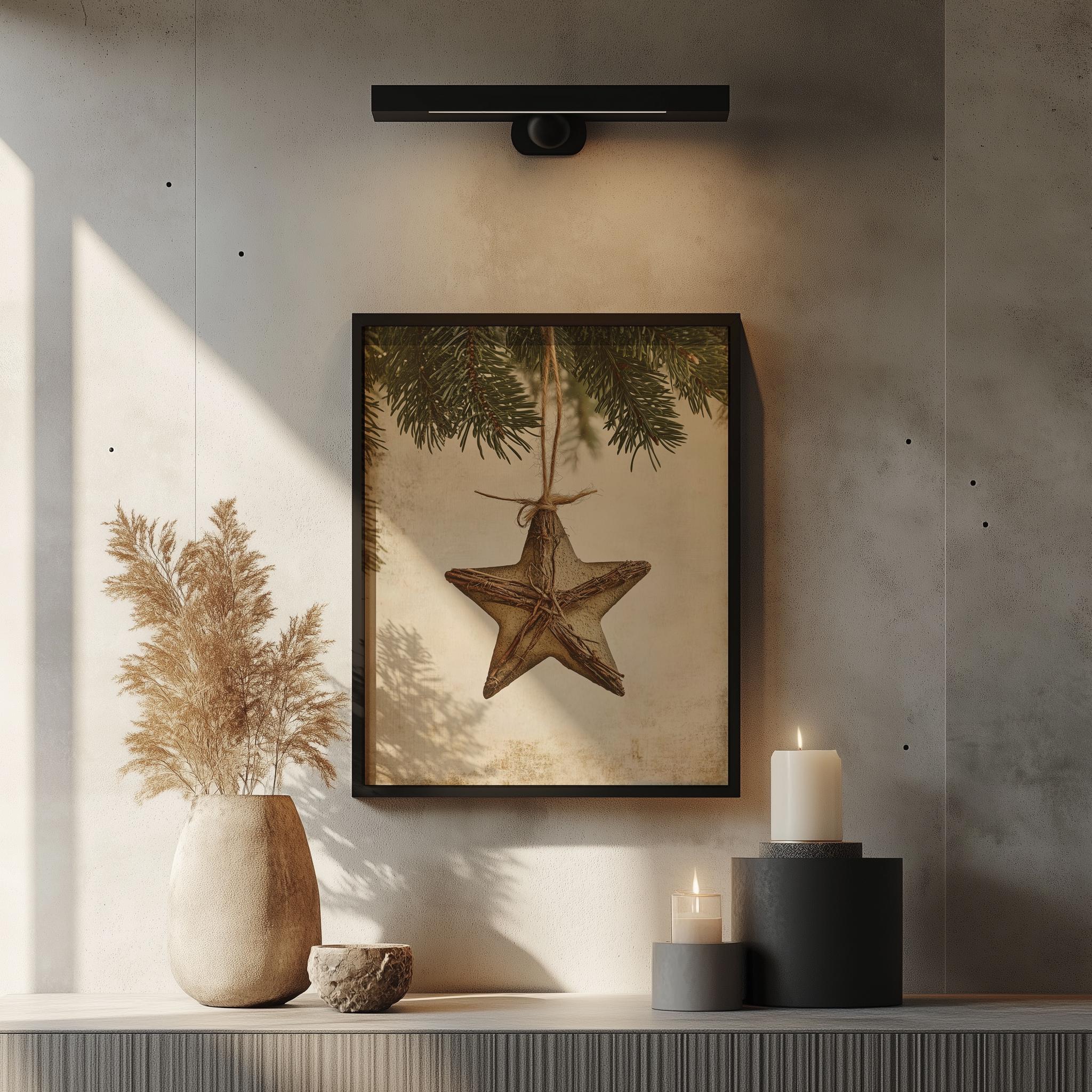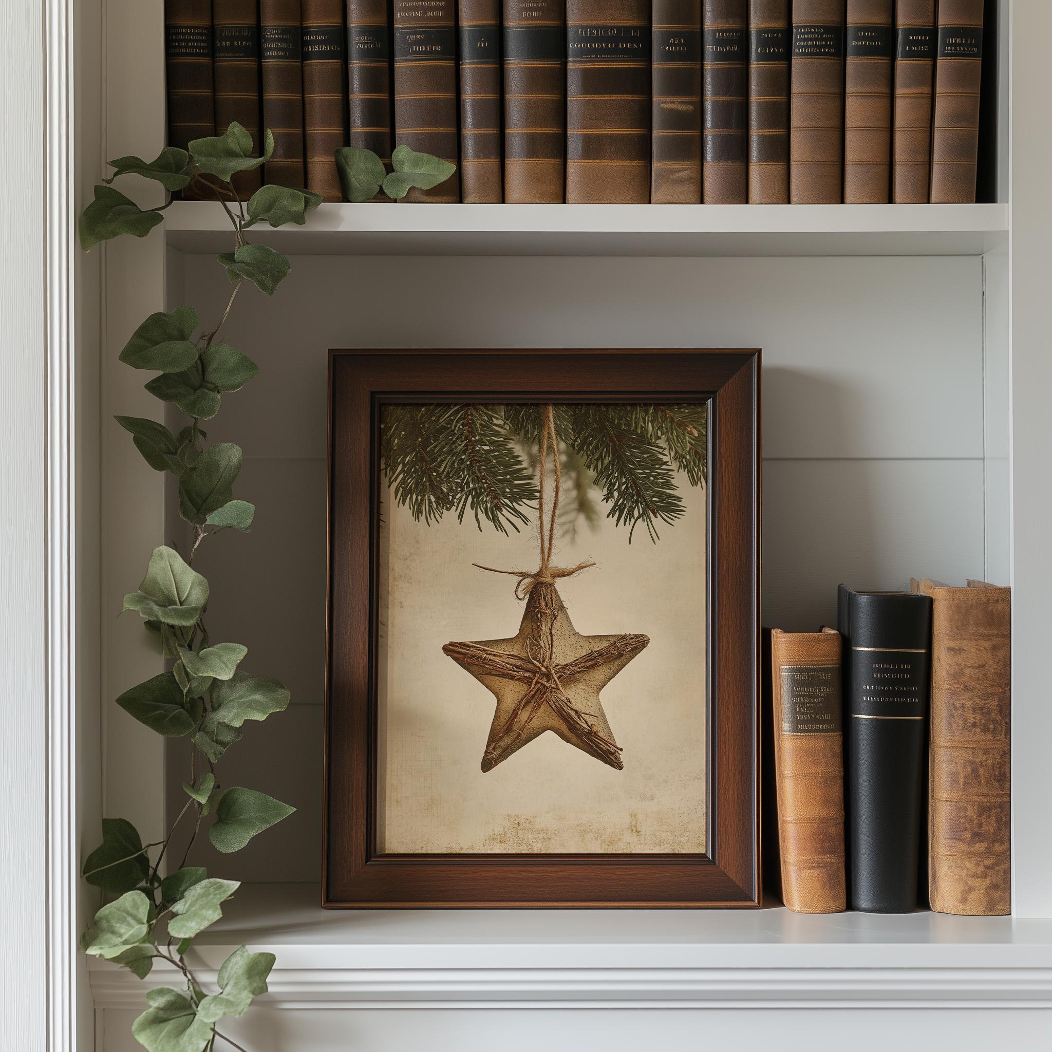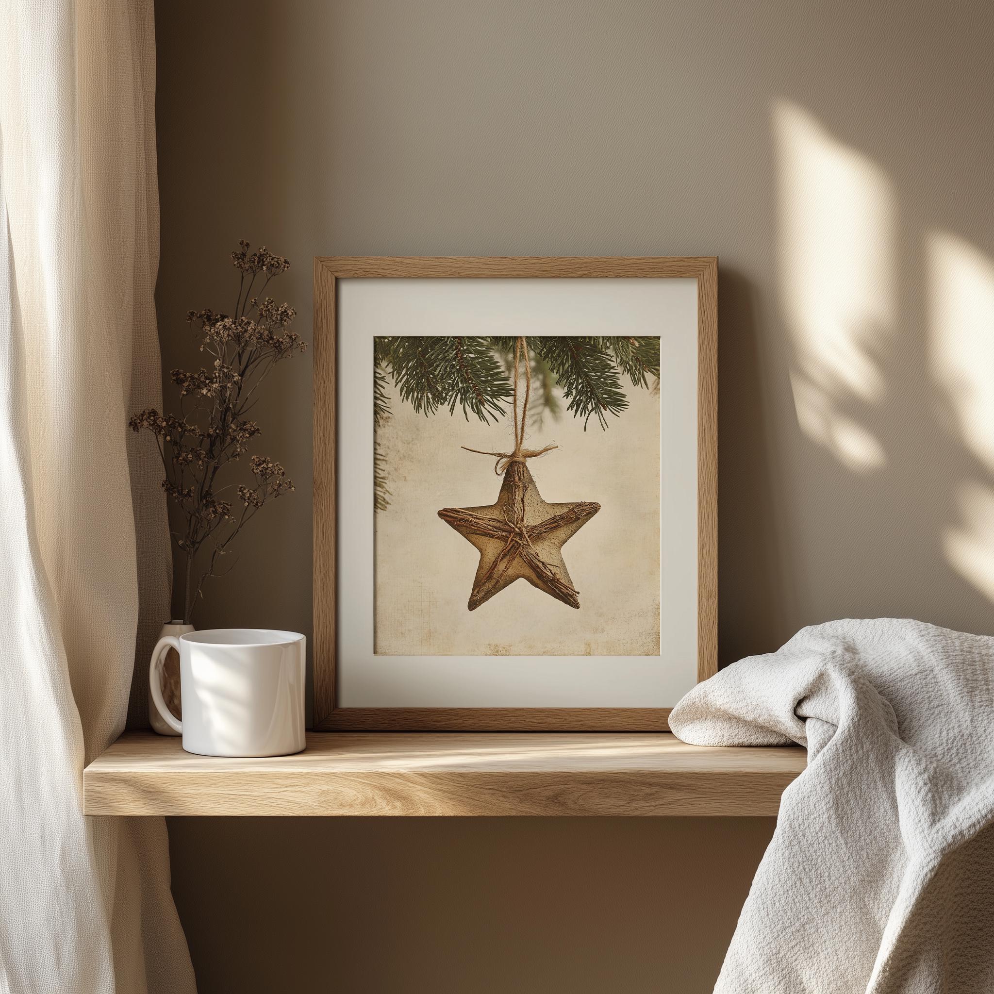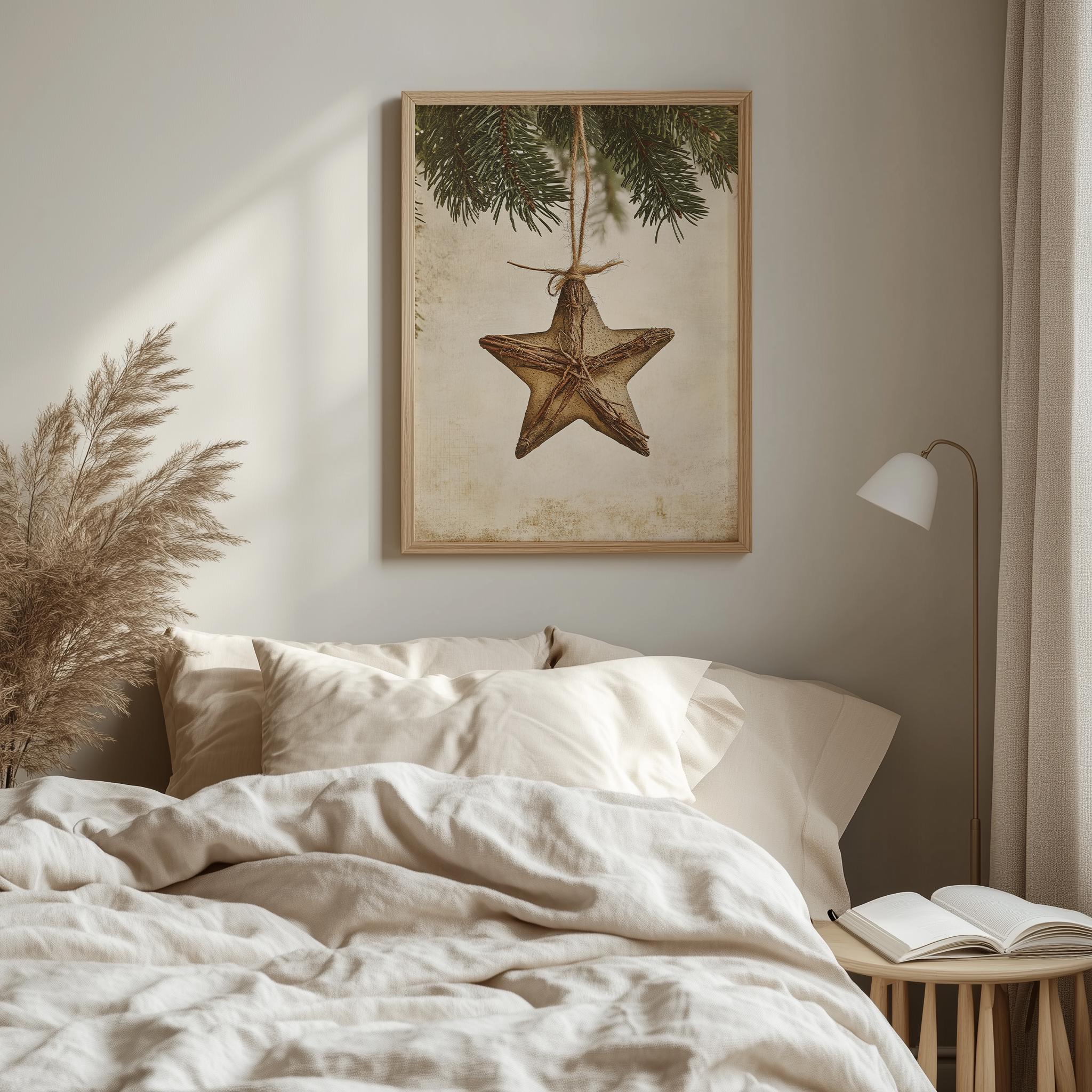 Vintage Star Ornament Painting - Rustic Holiday Wall Art This charming artwork features a beautifully crafted vintage star ornament, perfect for adding a touch of rustic elegance to your holiday decor. The soft colors and intricate details make it an ideal printable piece for cozy cottagecore aesthetics, bringing warmth and festive cheer to any wall. Ideal for creating a serene winter ambiance in your home. Winter Holidays