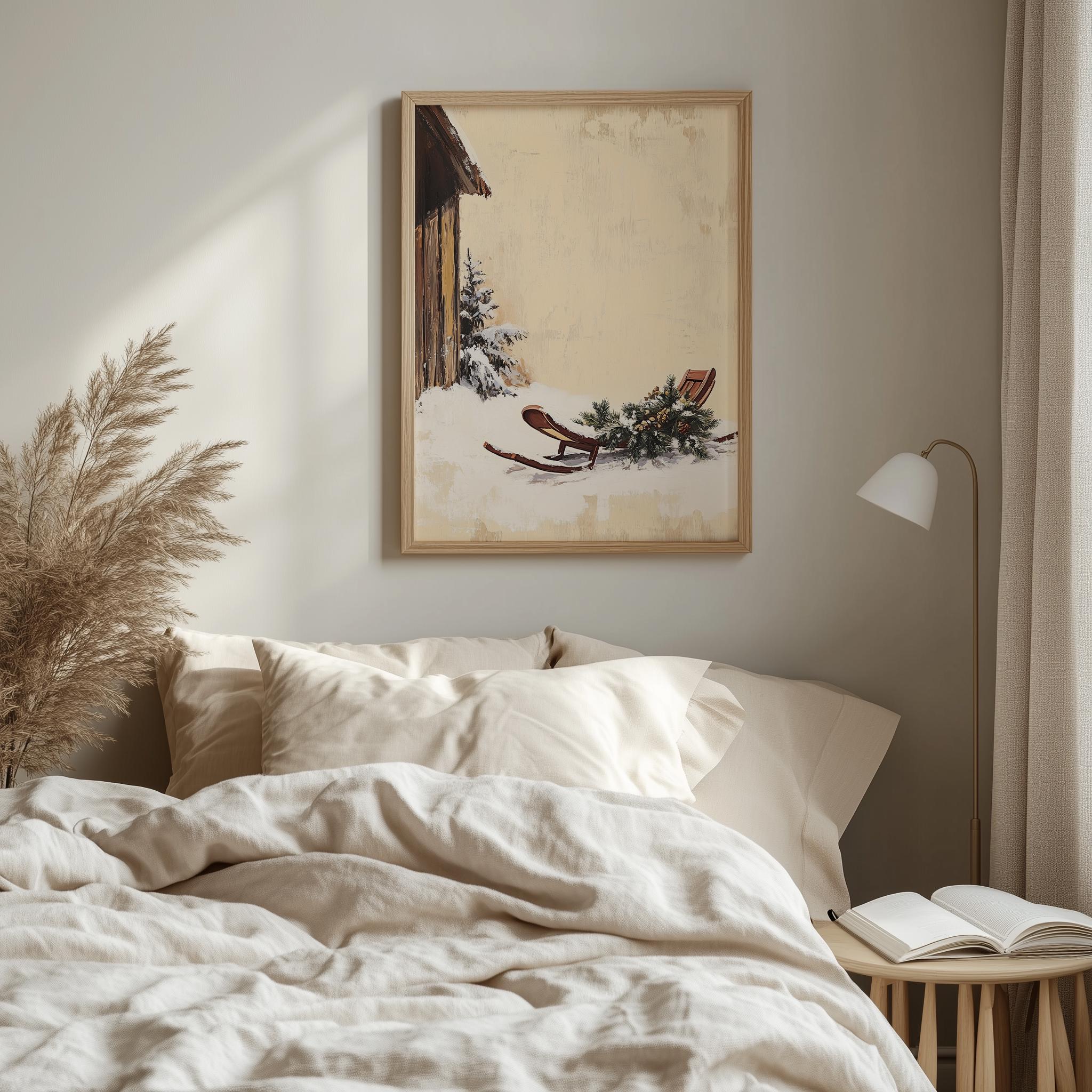 Printable Vintage Winter Sled Scene - Rustic Snowy Cottage Art, Cozy Winter Decor Immerse yourself in the charm of winter with this enchanting printable vintage sled scene. This rustic snowy cottage art captures the essence of cozy winter days, featuring a delightful digital painting that evokes warmth and nostalgia. Perfect for enhancing your home decor, this piece embodies the cottagecore aesthetic and brings a serene touch to any wall. Ideal for creating a welcoming atmosphere during the cold months, it serves as a reminder of peaceful snowy landscapes and joyful winter activities. Winter