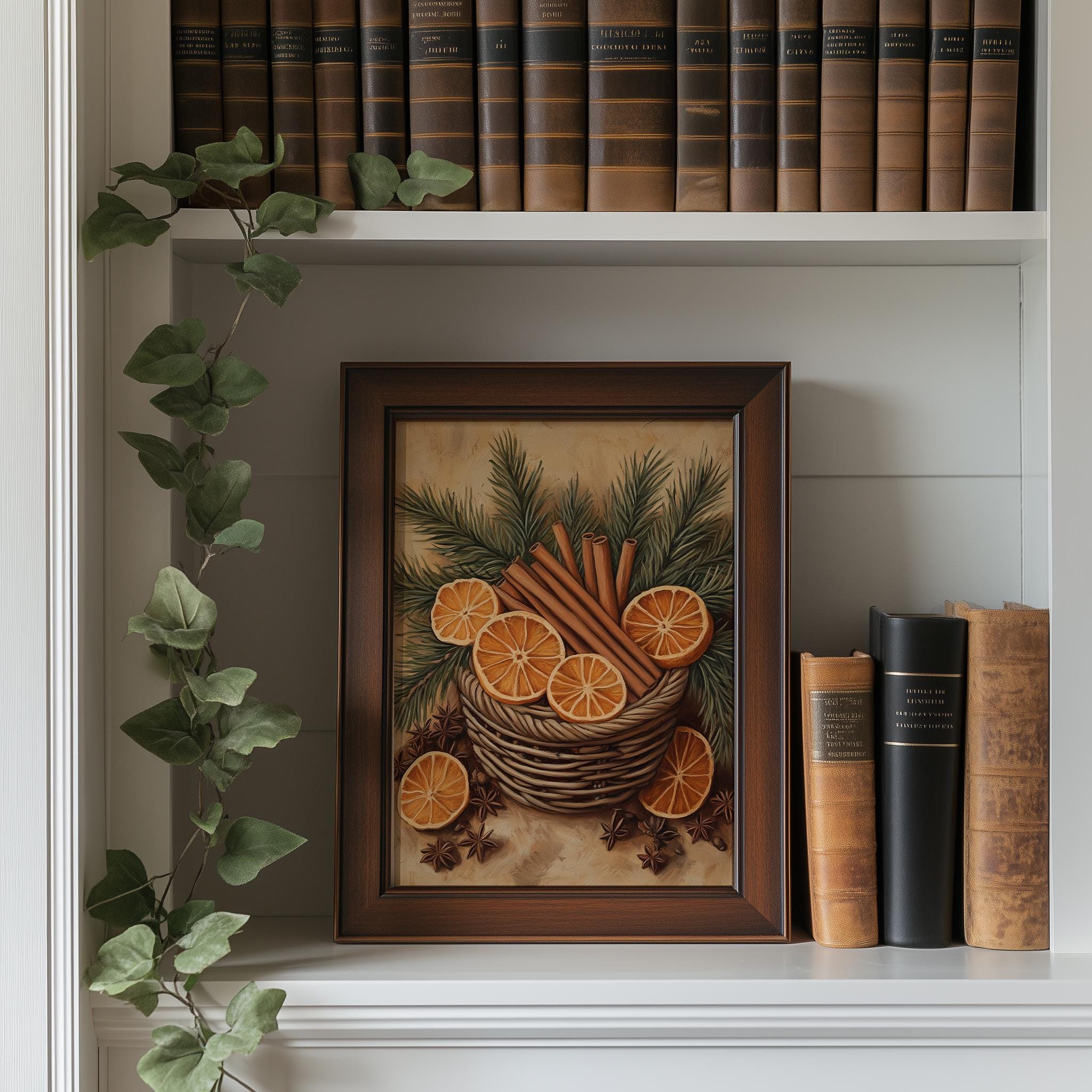 Cinnamon Sticks Basket Print: Vintage Winter Botanical Art (Digital Download)