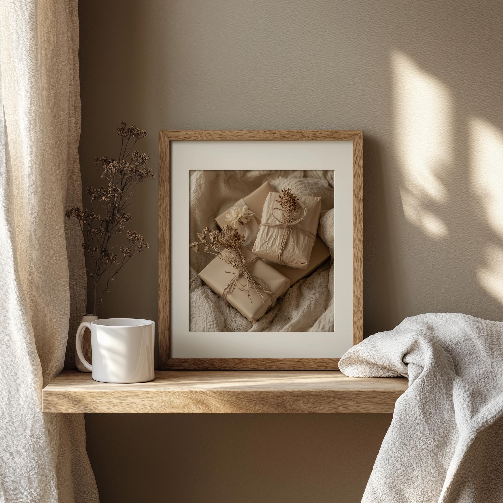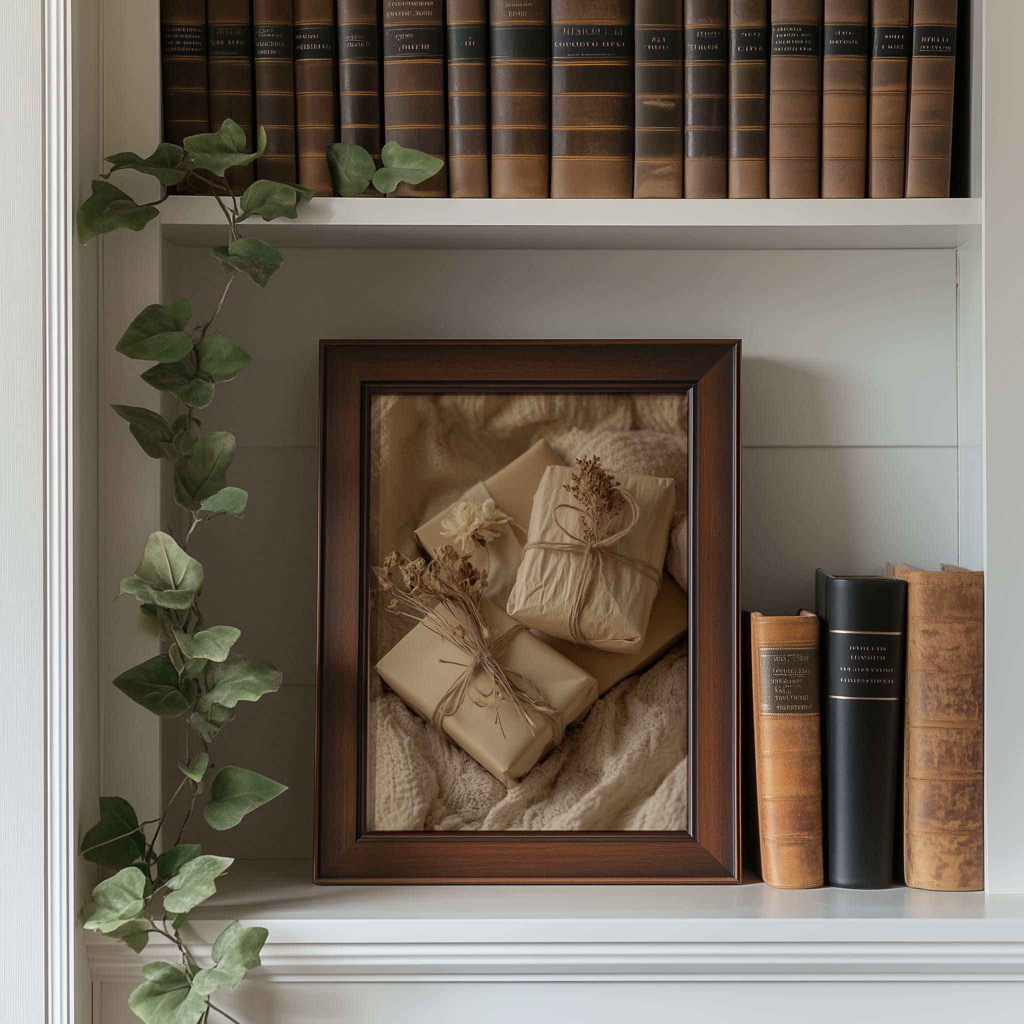 Rustic Gift Wrapped in Twine - A Cozy Holiday Artwork Capture the essence of the season with this Rustic Gift Wrapped in Twine Print, perfect for adding a touch of earthy charm to your home. Featuring a warm, vintage aesthetic, this printable wall art embodies the spirit of Cottagecore decor, making it an ideal choice for your festive celebrations. Each detail reflects timeless elegance, transforming your space into a cozy retreat filled with nostalgia and joy. This enchanting piece is perfect for the holiday season, bringing warmth and cheer to your festive decor.