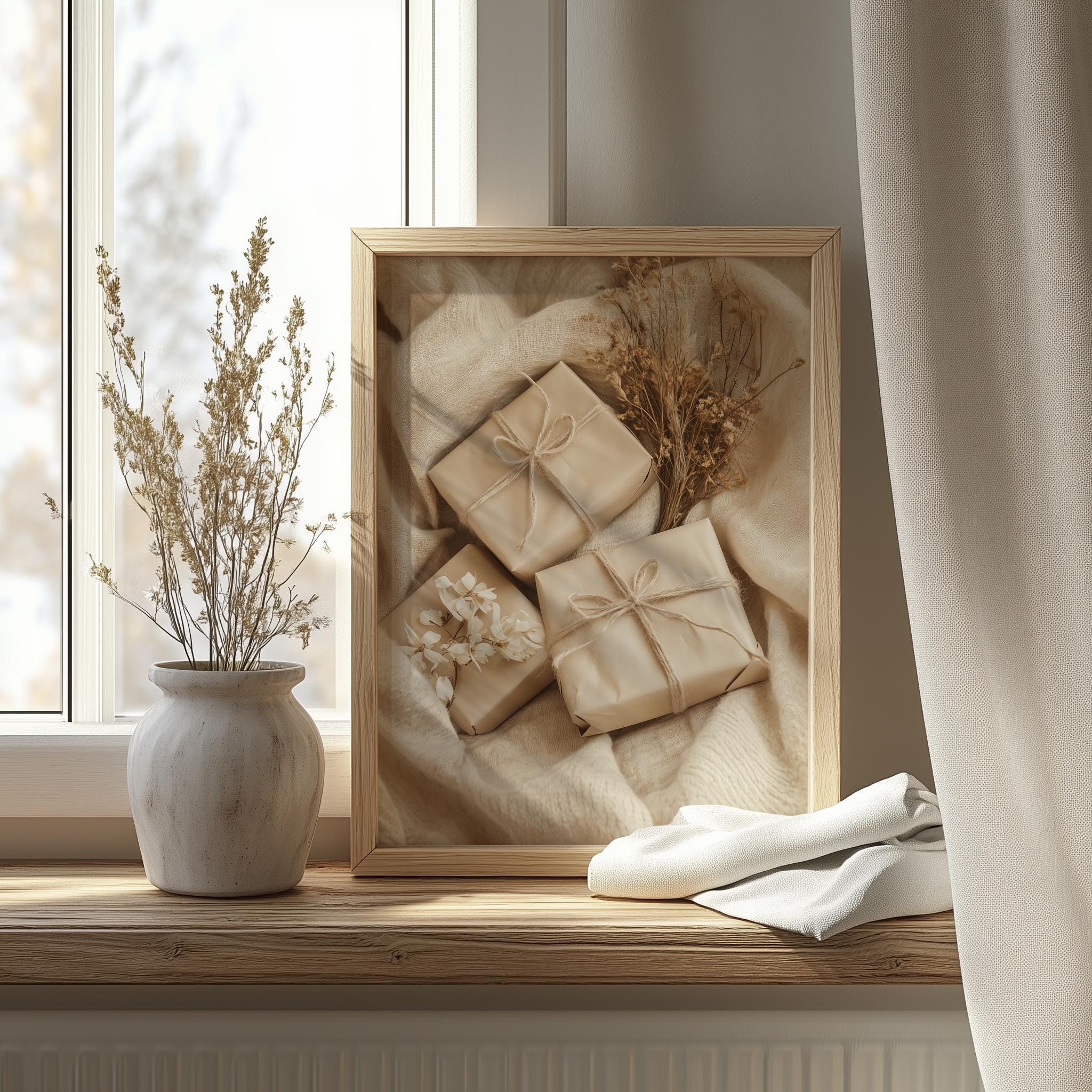 Vintage Gift Wrapping Art - Rustic Holiday Decor, Faded Botanical Prints This exquisite piece captures the essence of cozy cottagecore aesthetics, featuring faded botanical prints that evoke a sense of nostalgia and warmth. Perfect for adding a rustic touch to your holiday decor, this artwork seamlessly blends with your winter celebrations, making it ideal for those who appreciate the beauty of nature and vintage charm. Winter Holidays