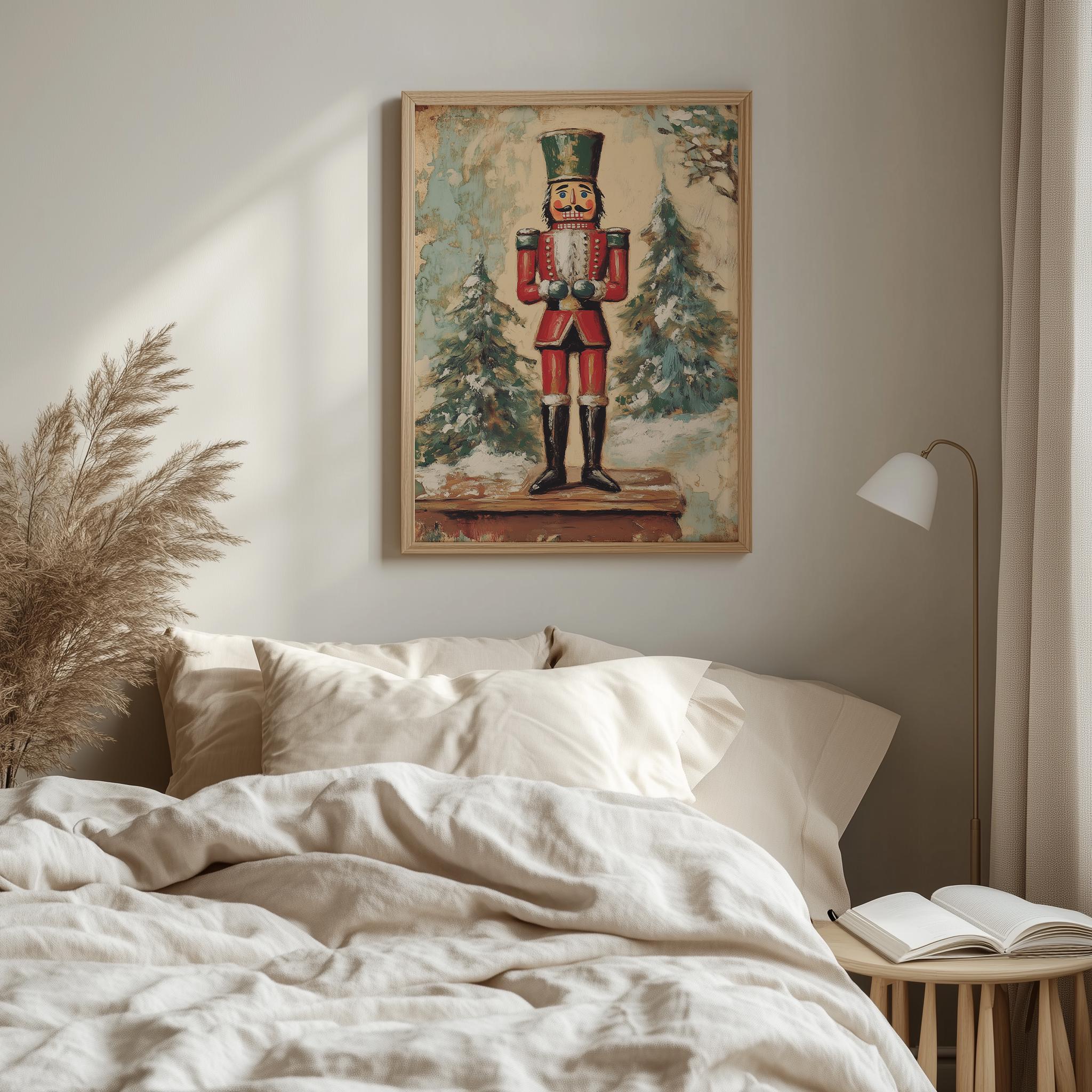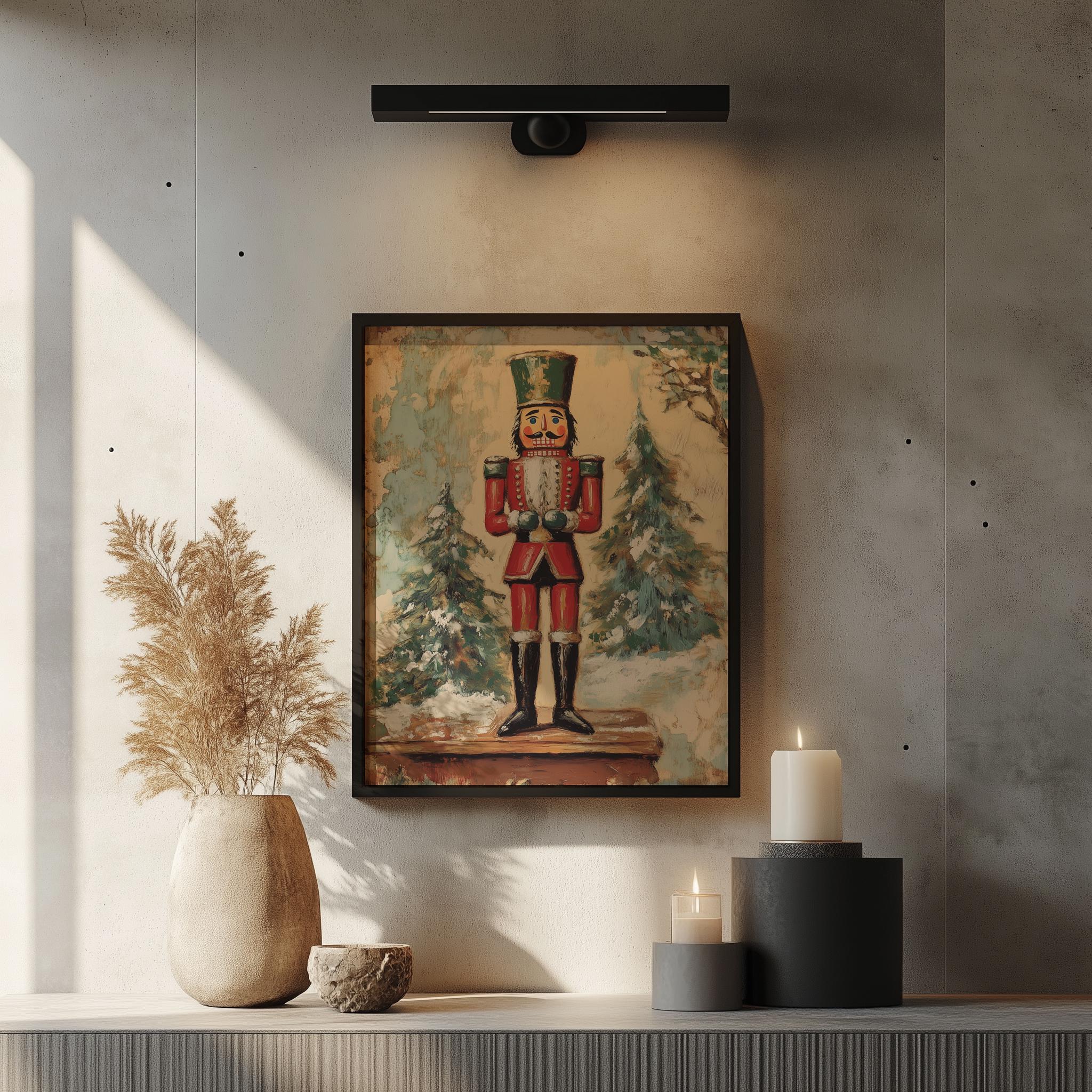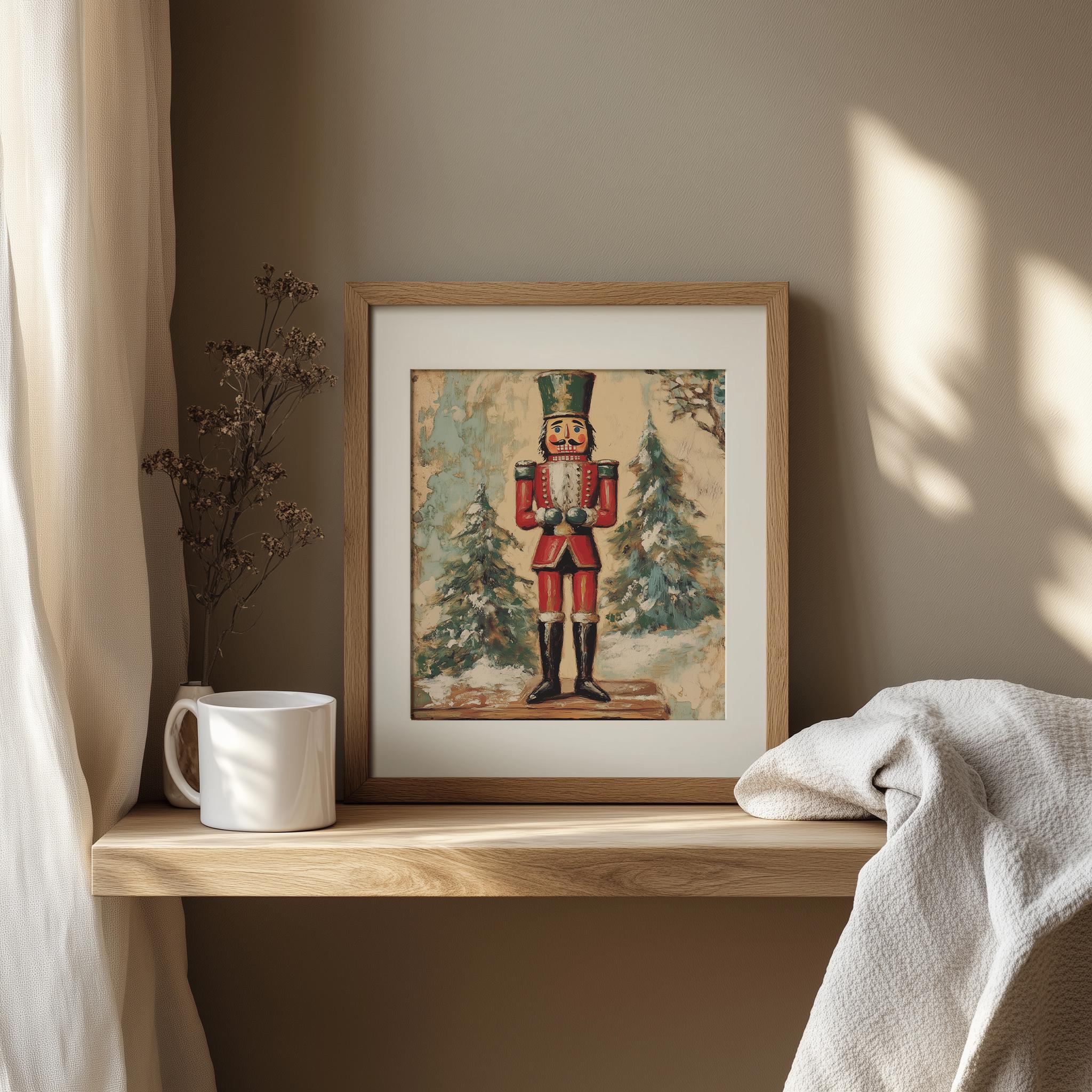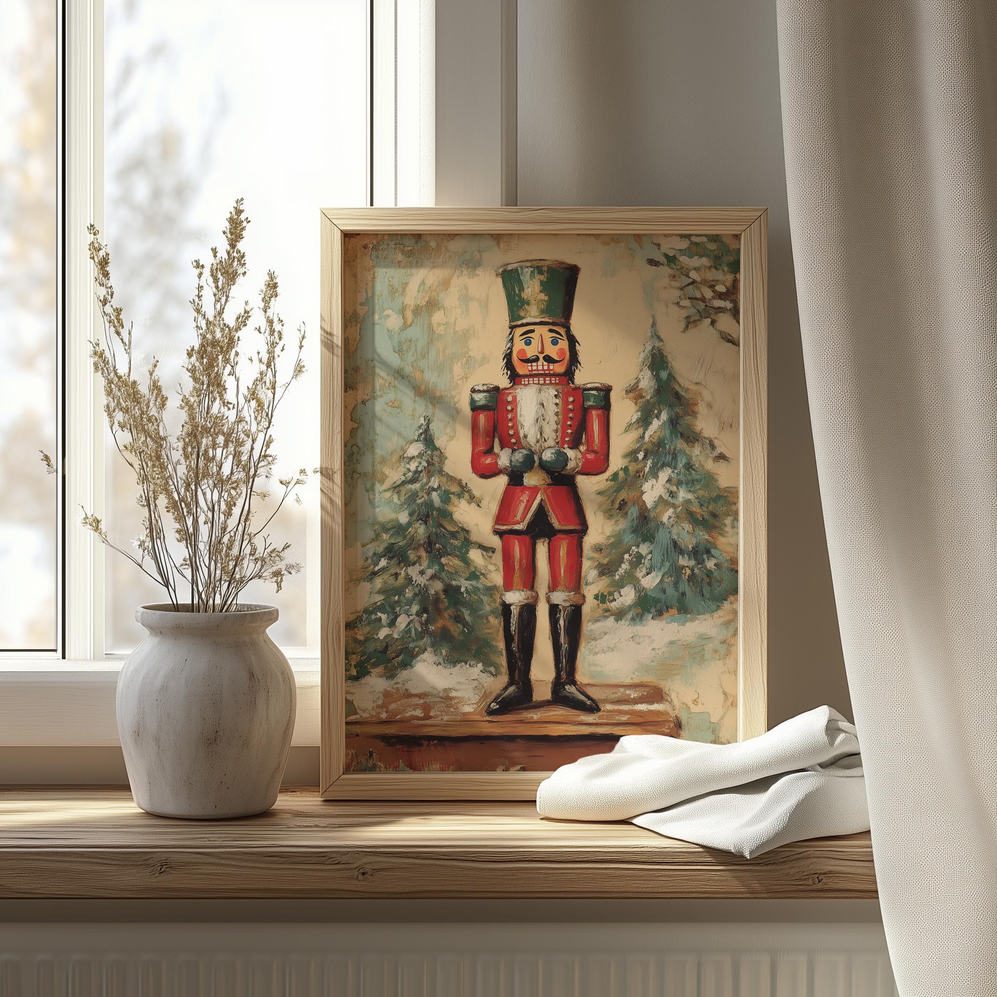 Antique Nutcracker Soldier Print - Vintage Christmas Wall Art This exquisite Antique Nutcracker Soldier Print captures the enchanting spirit of the holiday season. With its rustic winter scene and vintage charm, this digital art piece is perfect for adding a touch of festive elegance to your home decor. Ideal for holiday gatherings or as a delightful gift, this printable artwork brings warmth and joy to any space. Holiday Season