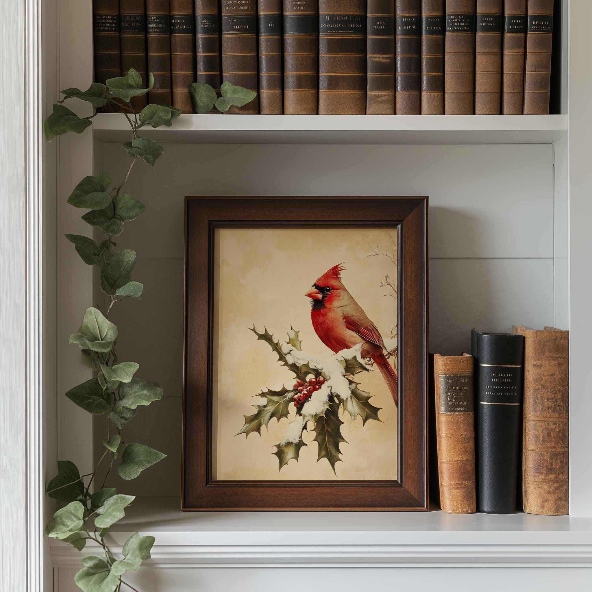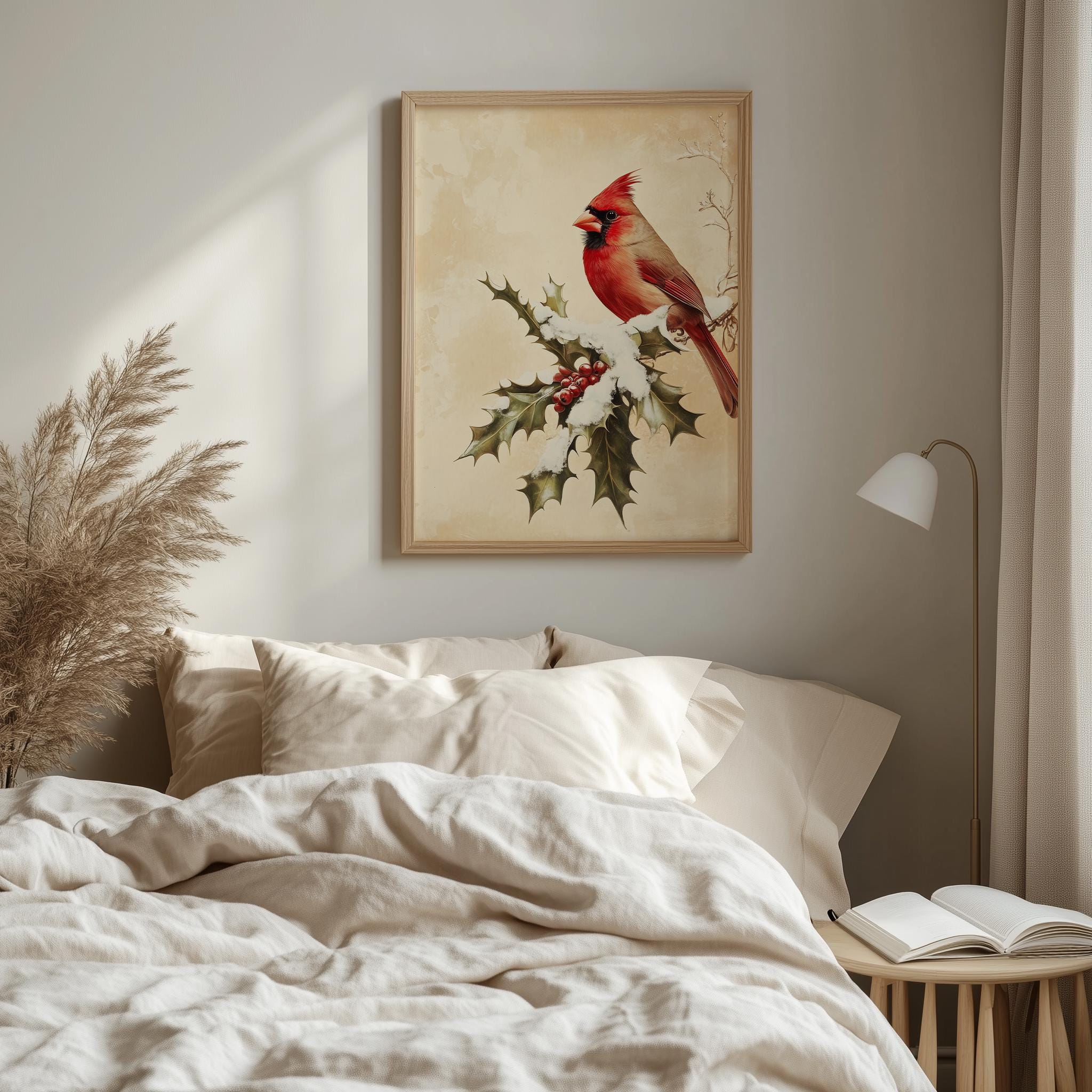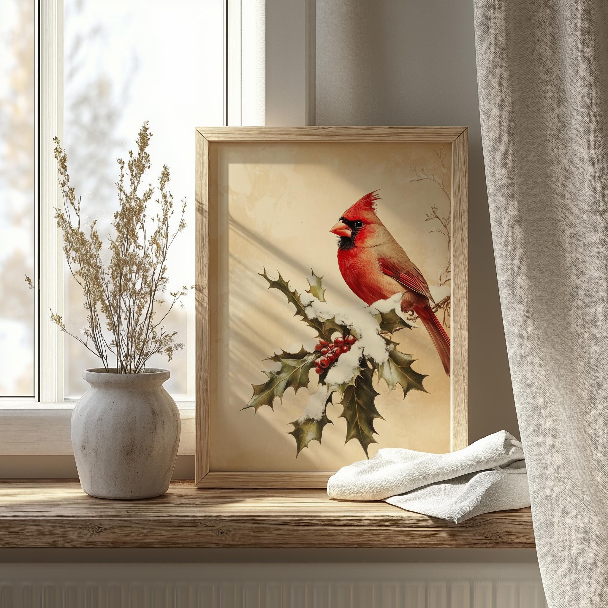 Vintage Cardinal Bird Illustration - A Touch of Rustic Charm for Your Space This enchanting Vintage Cardinal Bird Illustration captures the beauty of nature with its vibrant red hues and detailed depiction of a cardinal perched gracefully on a branch. Perfect for adding a rustic touch to your winter decor, this printable wall art brings warmth and charm to any room. Ideal for bird lovers and those who appreciate cottagecore aesthetics, this digital download offers a unique way to celebrate the beauty of the season. Winter