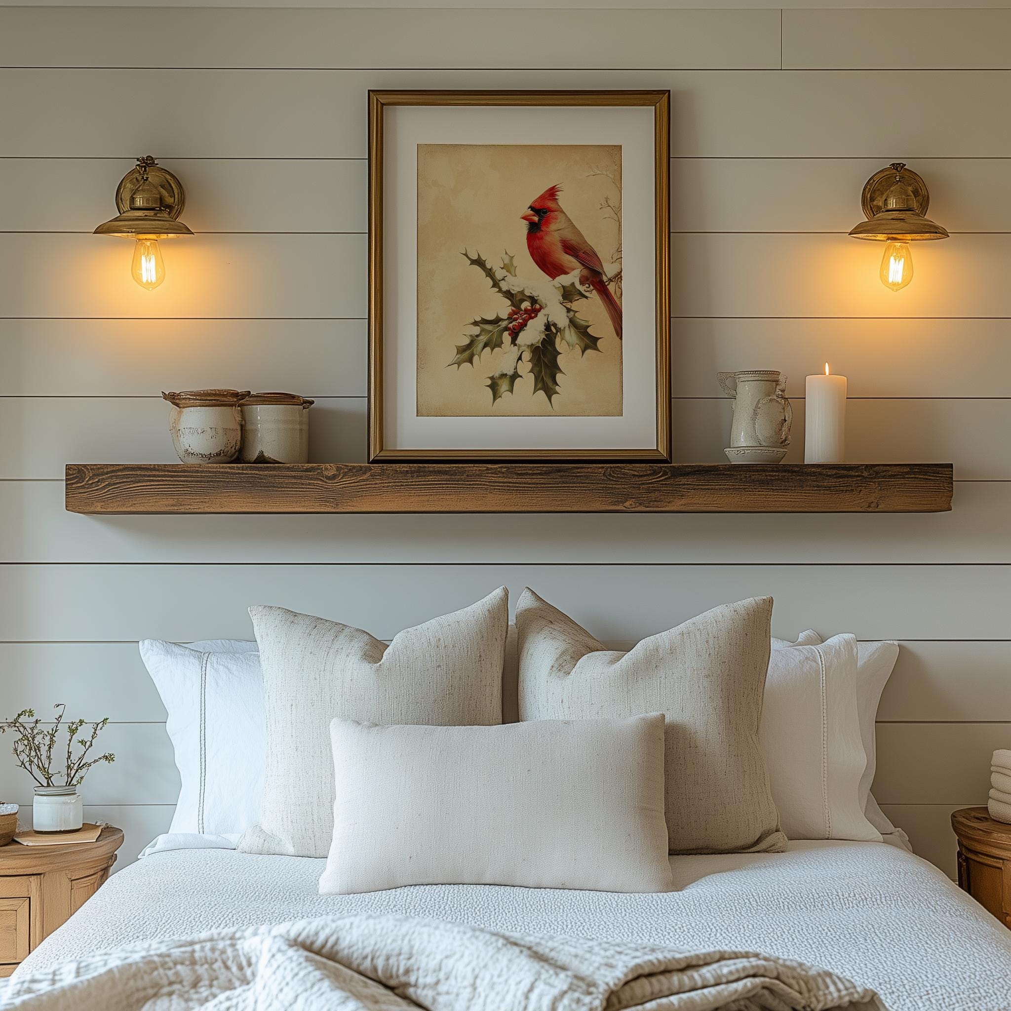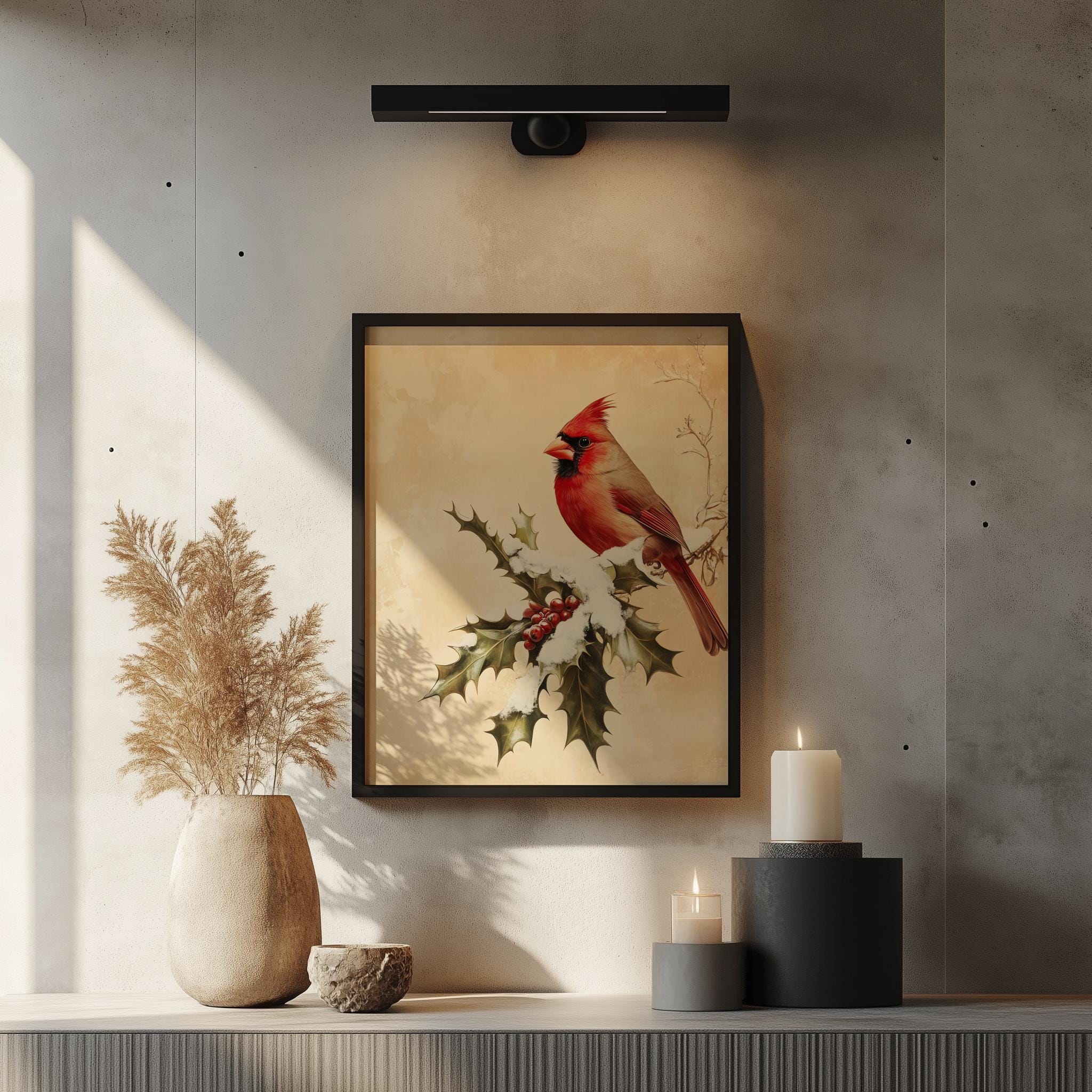 Vintage Cardinal Bird Illustration: Rustic Winter Wall Art (Digital Download)