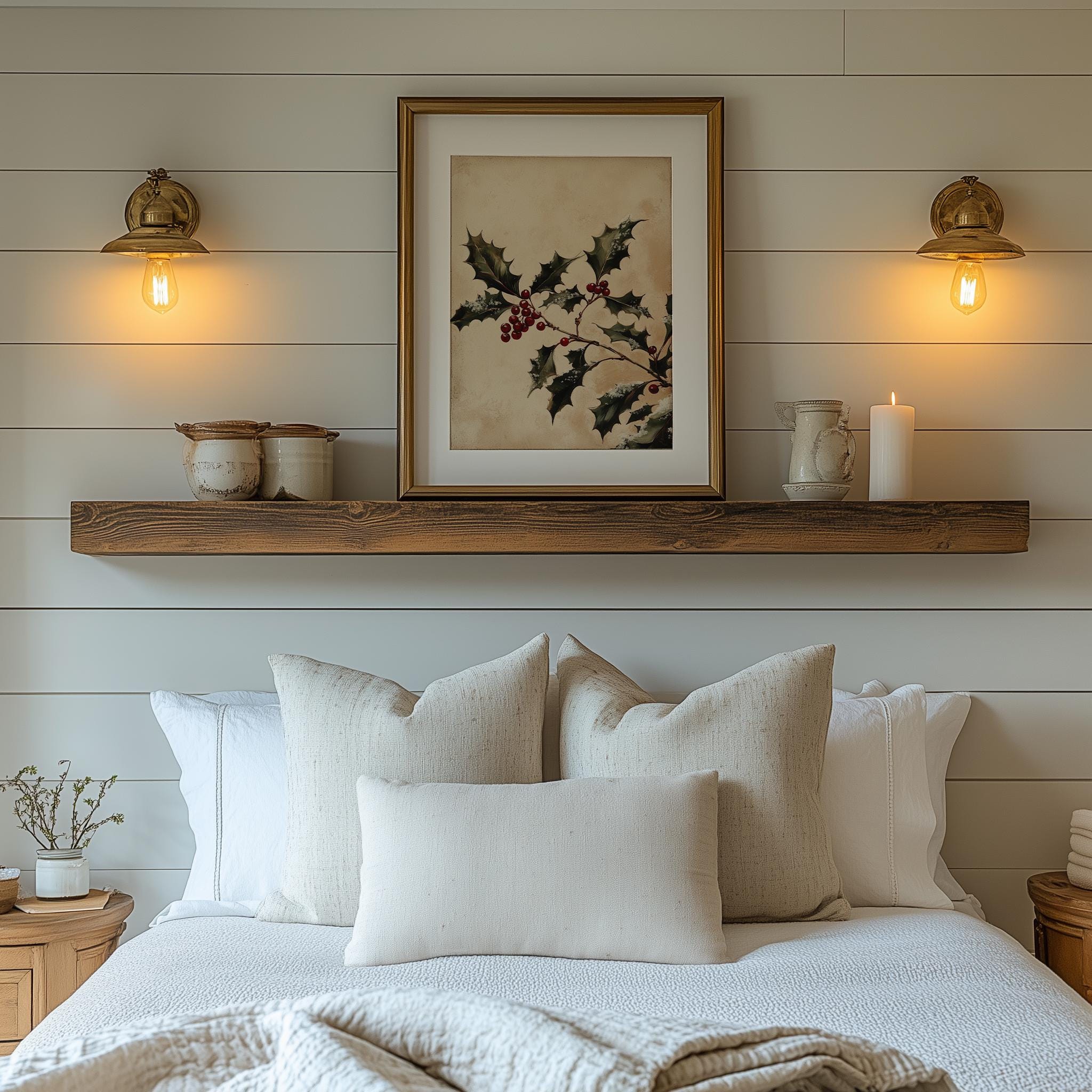 Vintage Holly Sprig Christmas Print: Rustic Cottagecore Winter Decor (Digital Download)